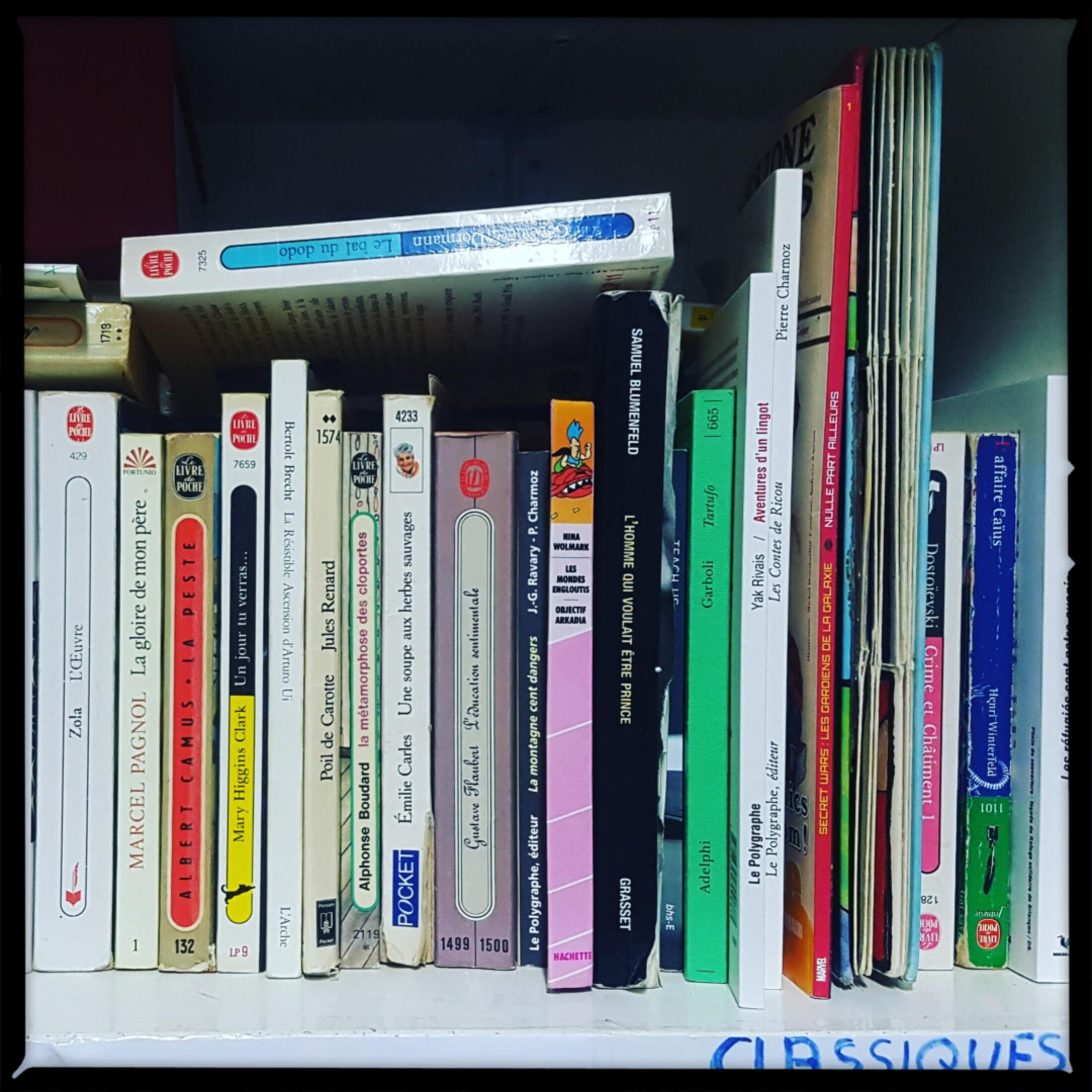 Le Refuge est une ancienne caserne de CRS devenu mi refuge mi foyer. Dans la bibliothèque mise à disposition par les bénévoles, on passe de Zola aux dangers de la montagne.Agrandissement : Illustration 10