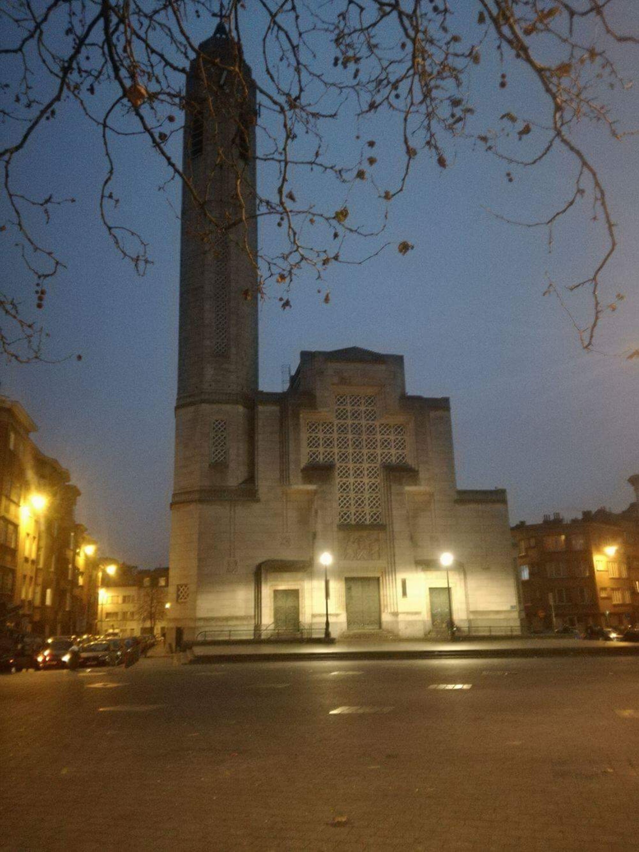 L'église de Molenbeek. Un cas intéressant parce qu'il s'agit d'une des rares églises en Belgique construite en béton et selon des plans résolument modernes (la quasi-totalité des églises bâties aux XIXe et XXe siècles sont de style néo-gothique, commanditées par des architectes et milieux réactionnaires).