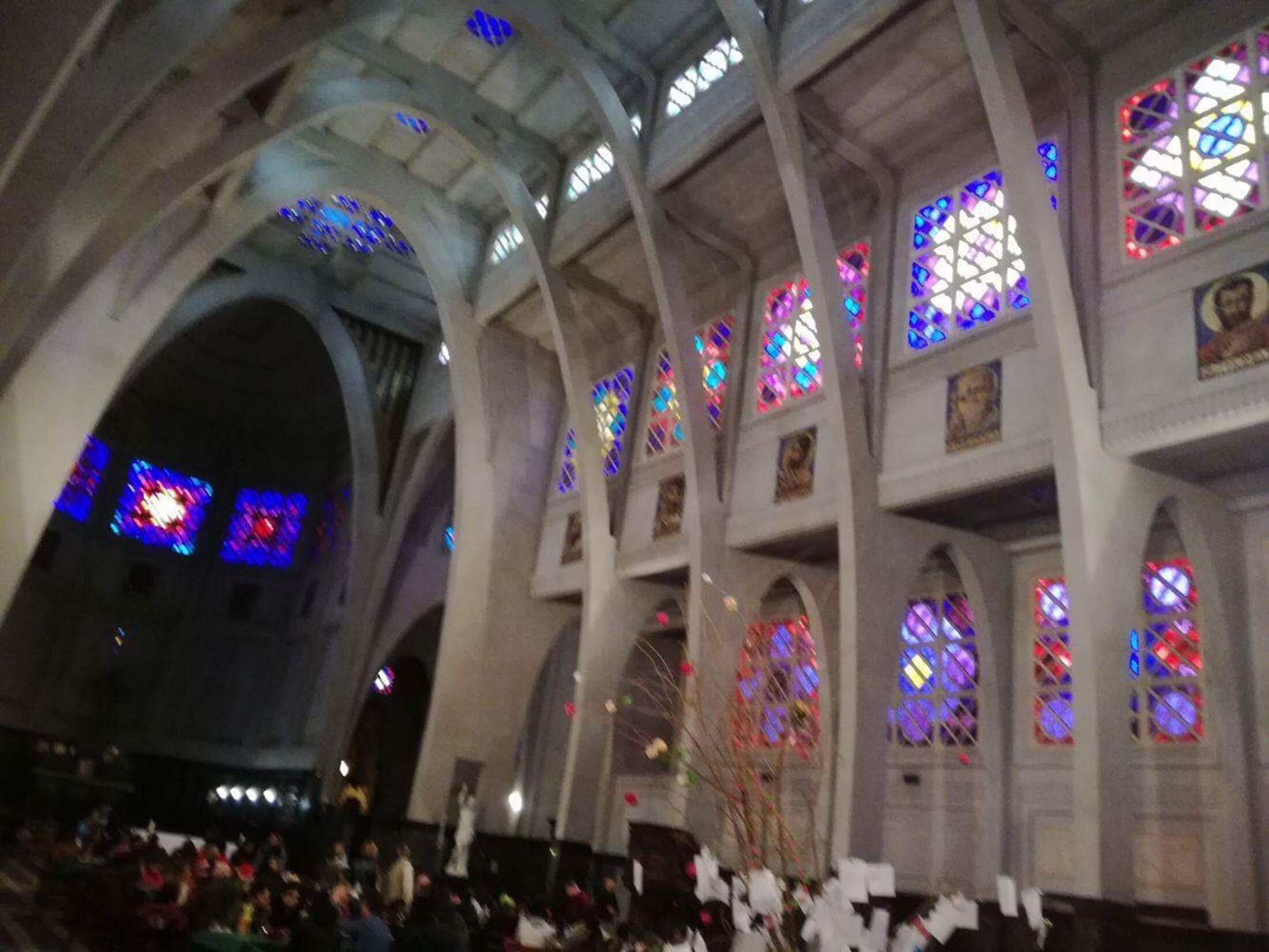 L'intérieur de l'église, repas de noël offert aux habitants du quartier.