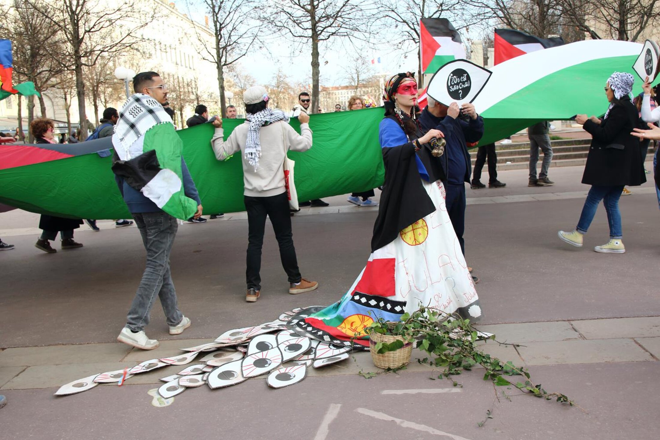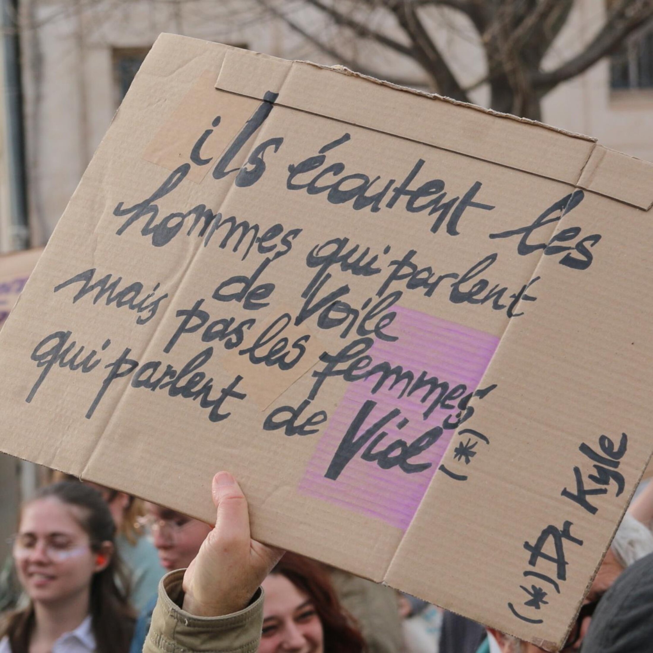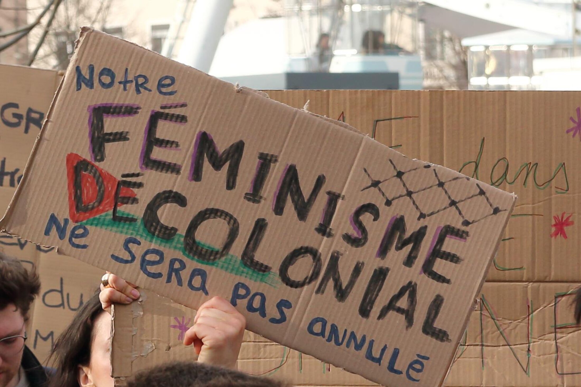 Comme déjà en novembre, il y a un cortège Palestine dans la manif, suite à un accord entre le collectif 69 pour les droits des femmes et le collectif 69 en soutien au peuple palestinien.