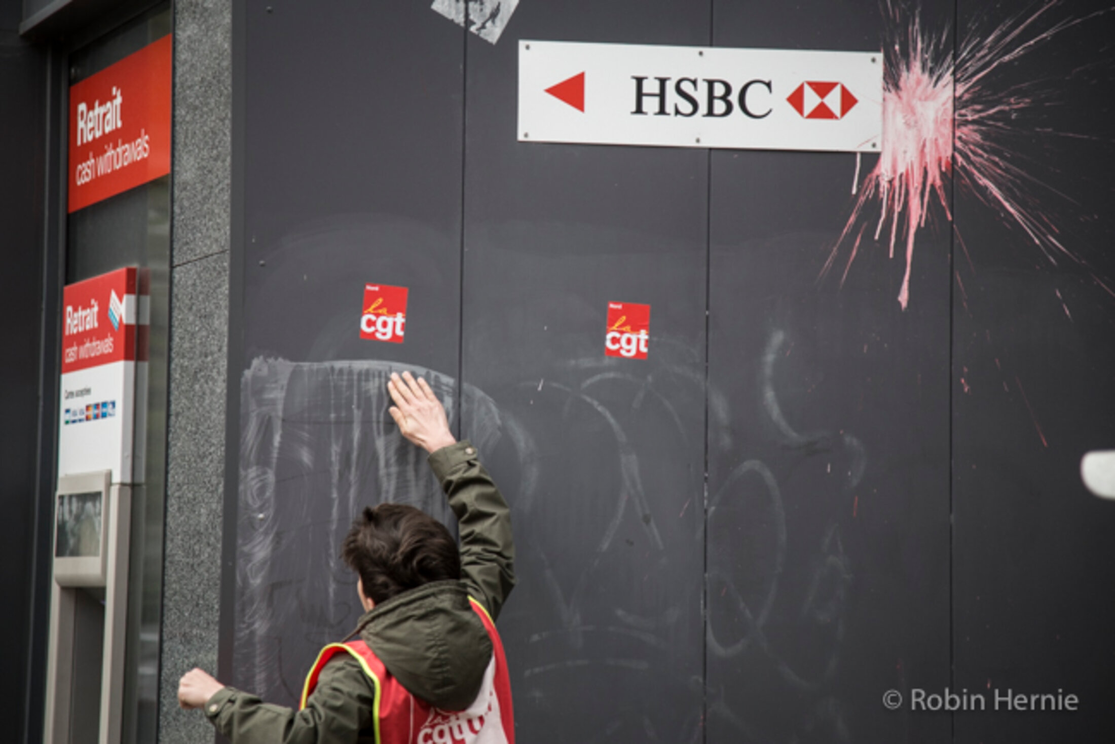 De nombreuses banques se trouvent sur la rue National de Lille. Les manifestants en ont profité pour y laisser un petit souvenir.