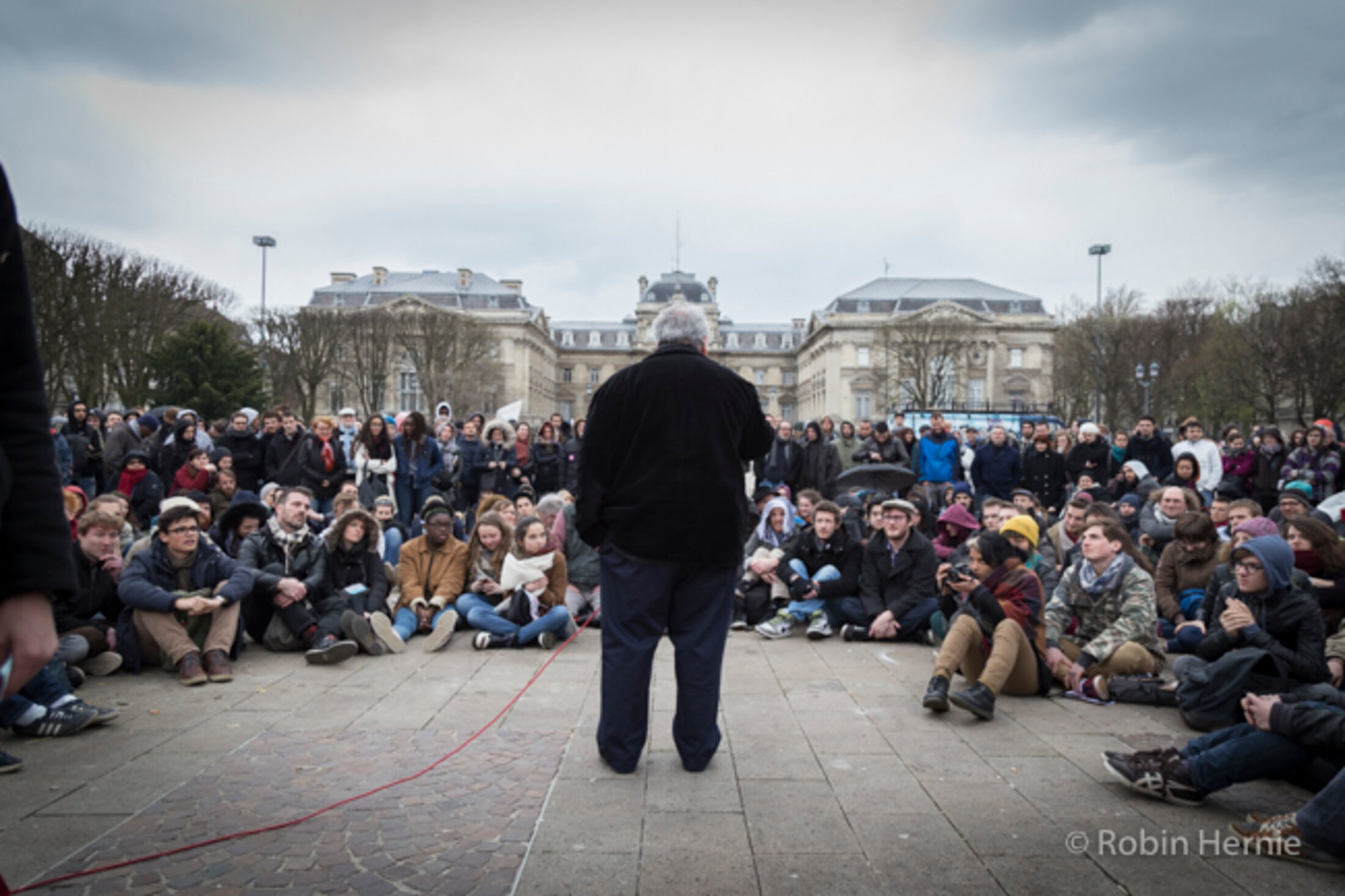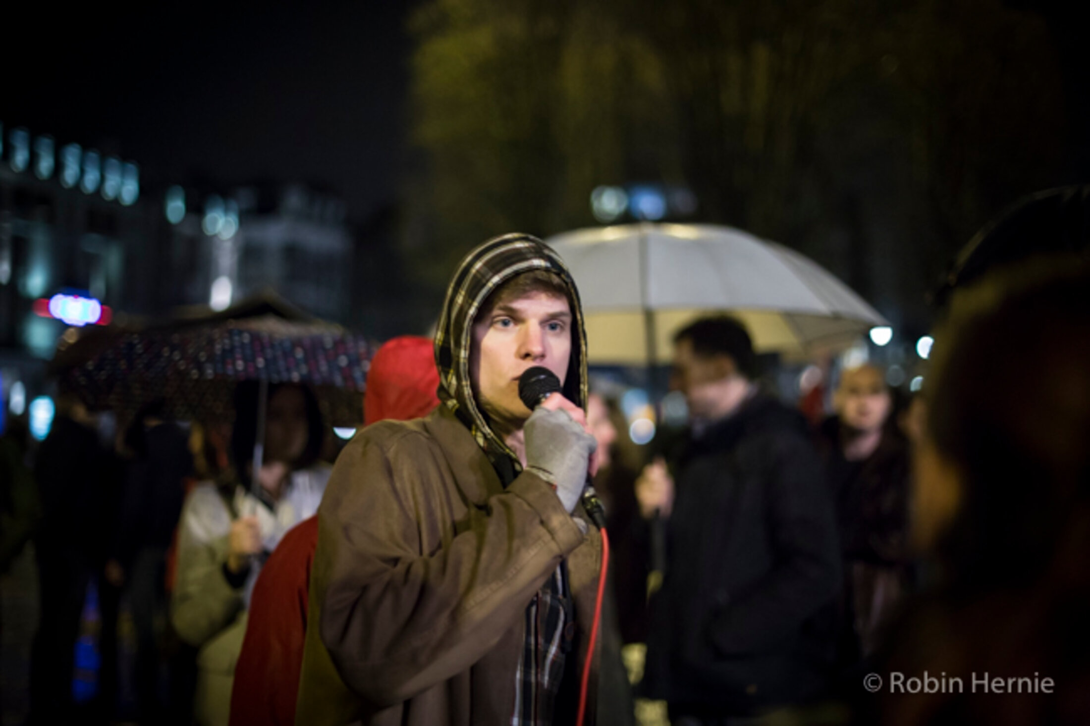 La pluie s'abat finalement sur la mobilisation. Un organisateur et étudiant s'écrie alors : "Si on tient la puie, on tiendra la nuit !"