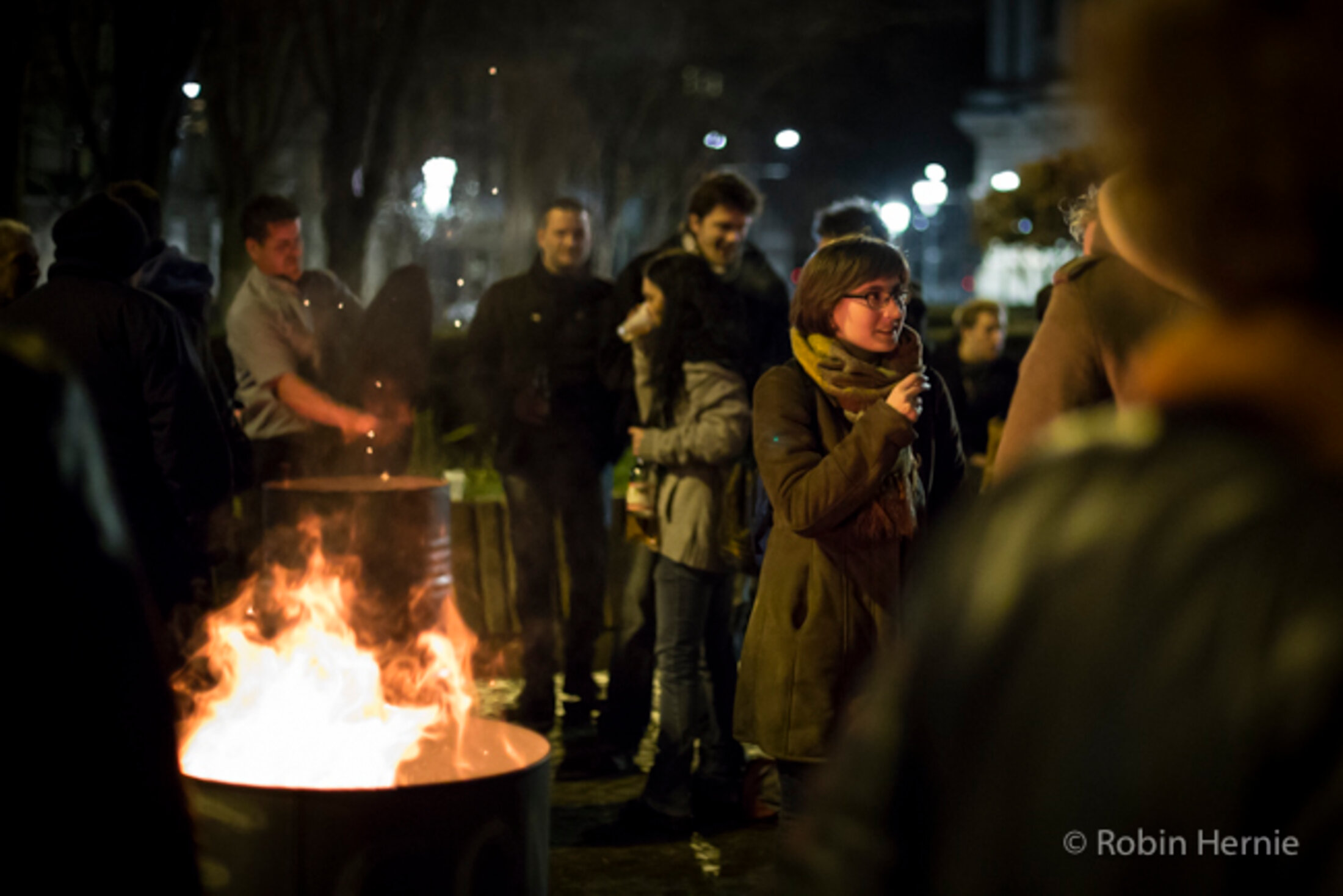 En marge du concert improvisé par la Brigade des tubes (petit extrait vidéo ICI), d'autres personnes se réchauffent autour d'un feu et discutent des suites possibles du mouvement.
