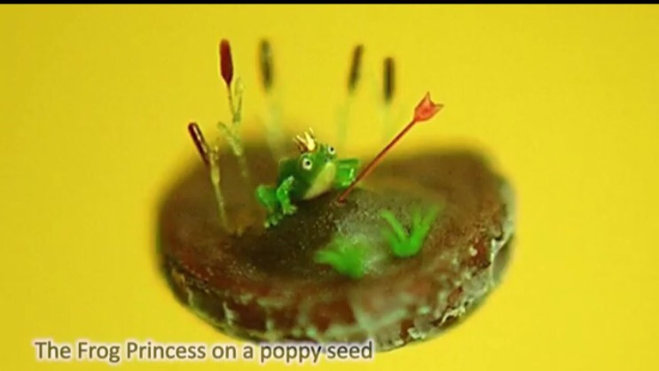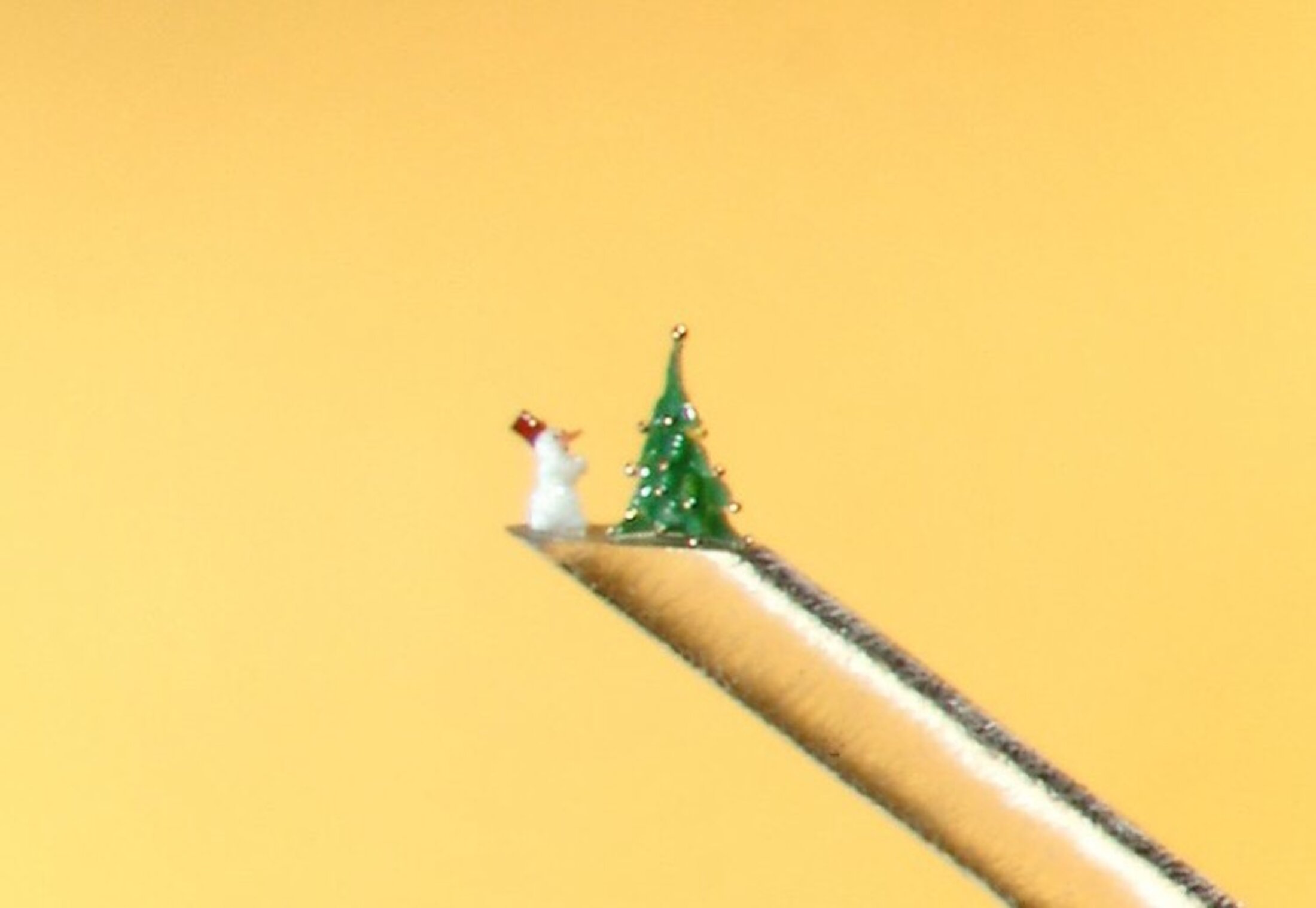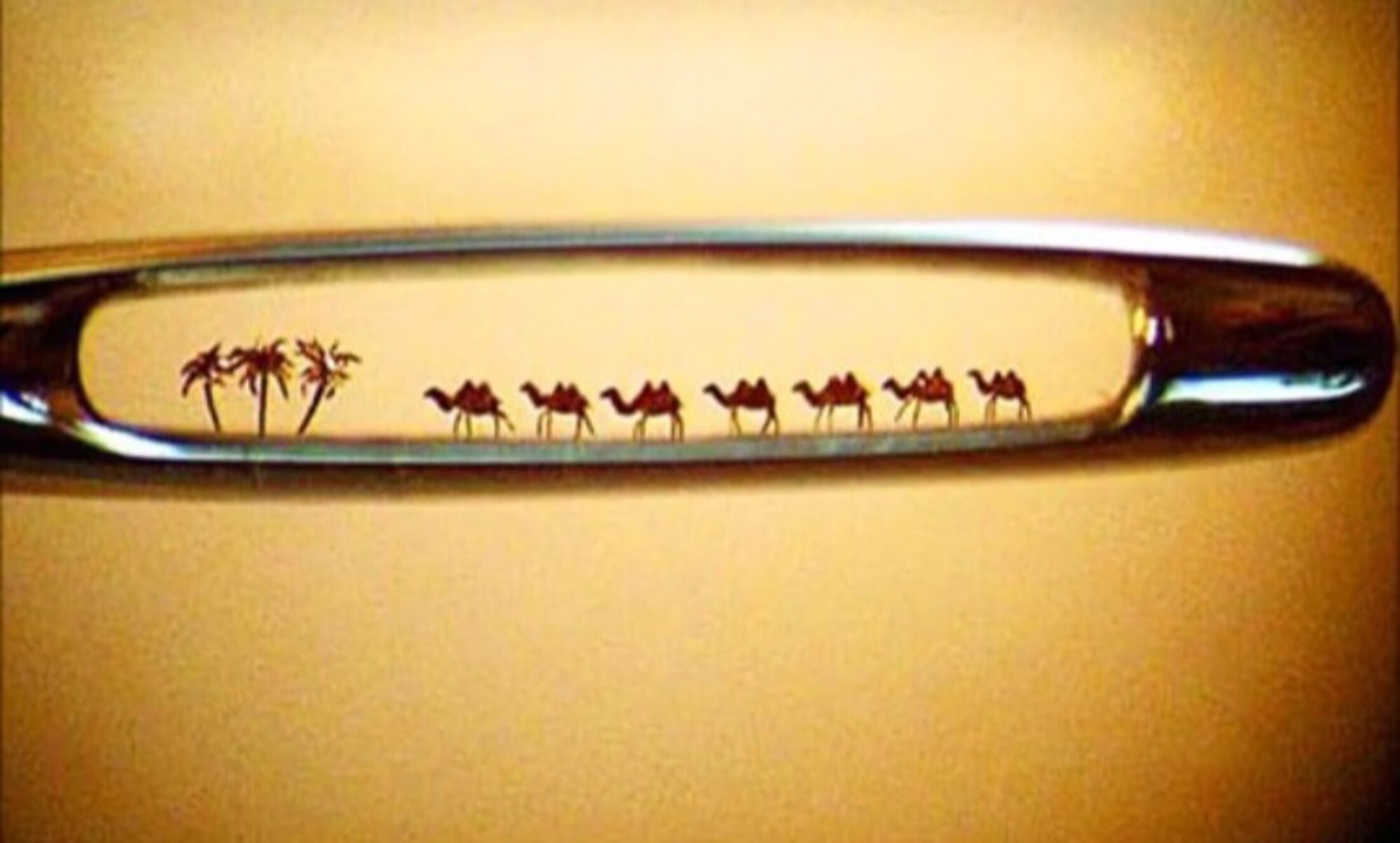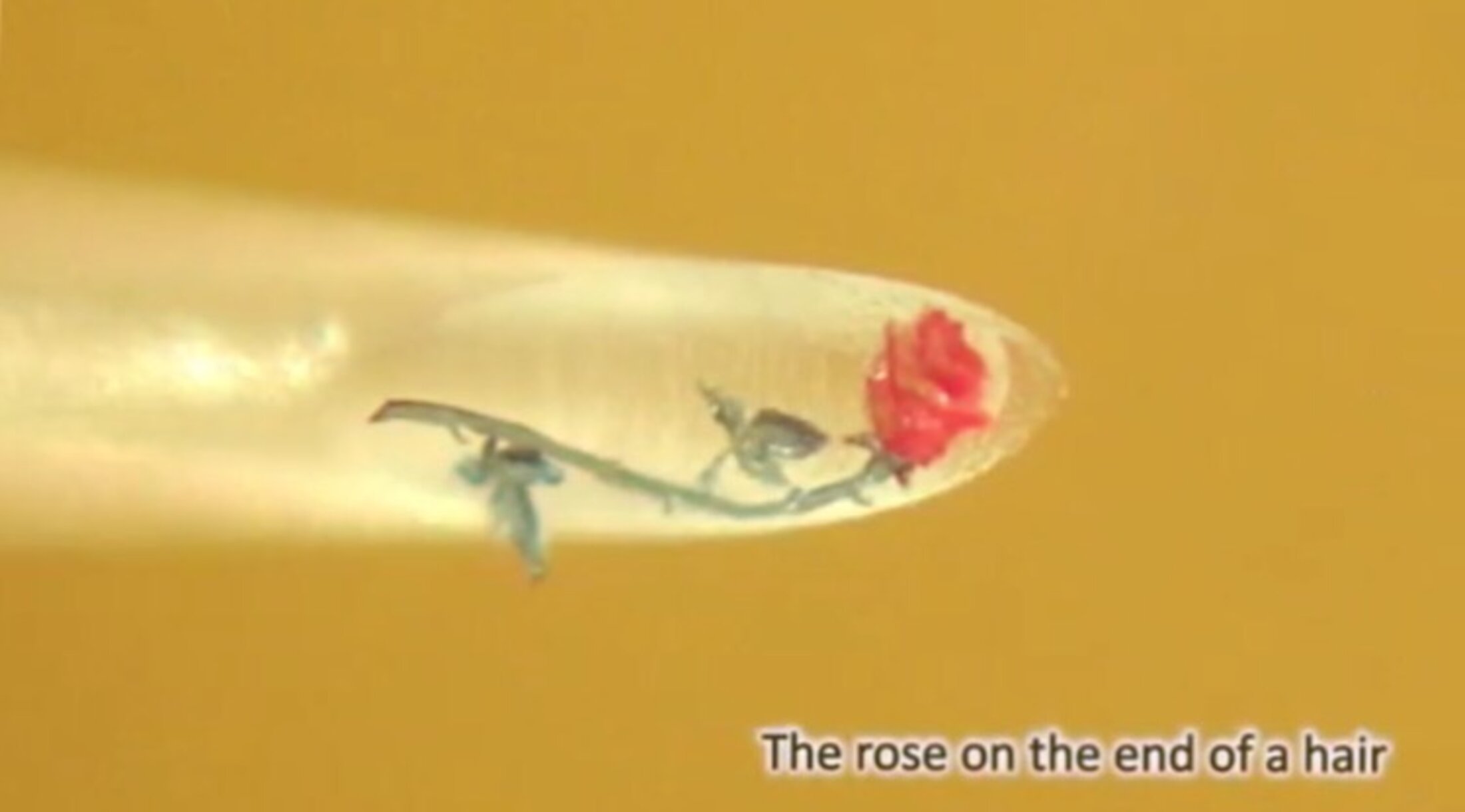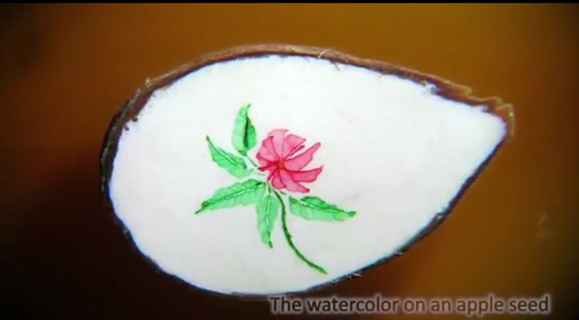 Vladimir Aniskin, jeune artiste sibérien, est l'un des seuls au monde à créer des œuvres d'art aussi petites, exquises minusculeries (de l'ordre d'un micron) qui tiennent sur une graine de pavot, un grain de riz, ou un pépin de raisin.