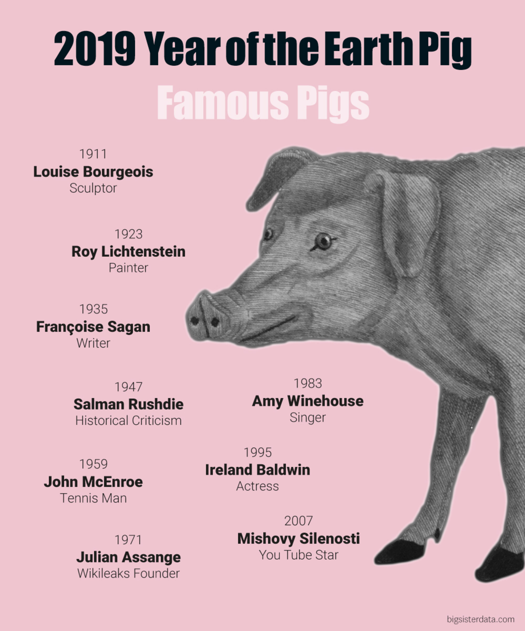 À l'occasion du nouvel an asiatique, année du cochon de terre, voici une sélection de cochons et de cochonnes célèbres. Chuc mung nam moi (Bonne Année).