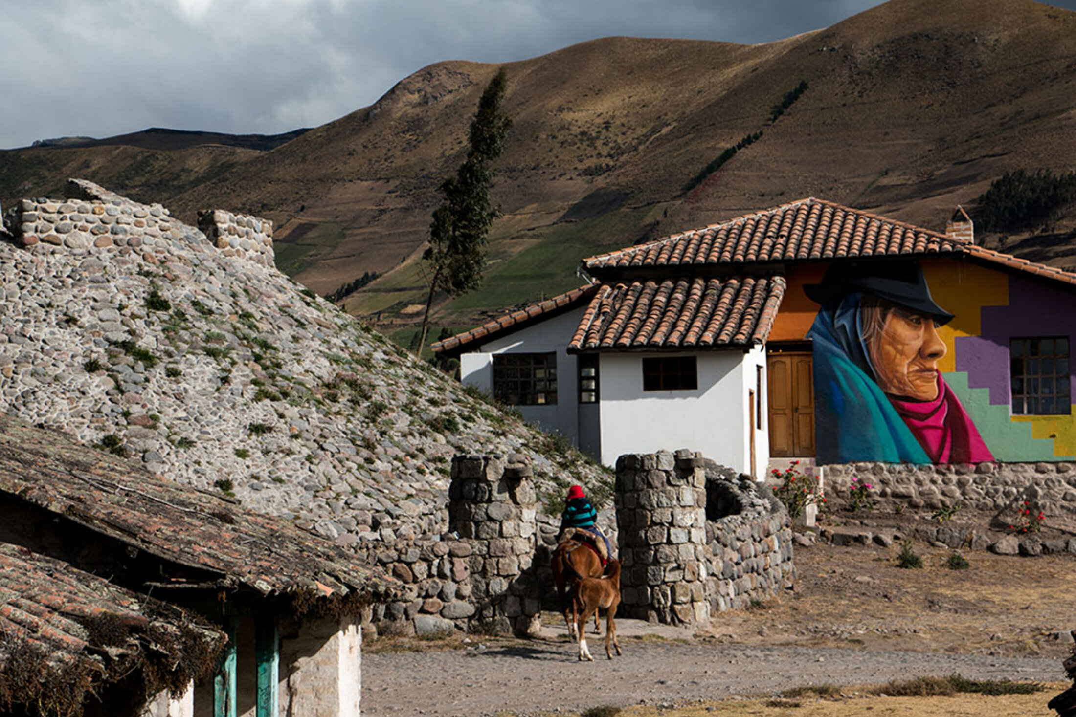 Plusieurs adolescents de La Chimba, dont Maiite et Pablo, ont réalisé des portraits des anciens de la communauté que l’on retrouve sur le mur du centre. Maura est à l’initiative de ces rencontres, prenant prétexte des photos pour renouer le lien entre des générations que l’essor économique et social de l’Équateur de ces dix dernières années éloignent peu à peu.
