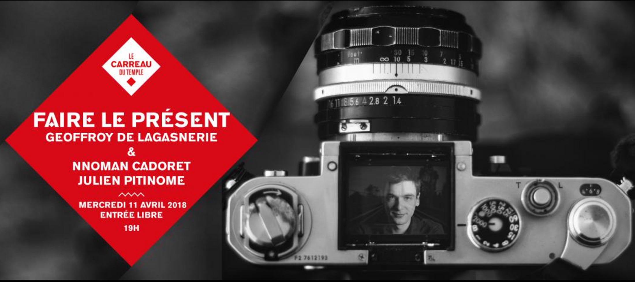 Dans le cadre du cycle de dialogue « Faire le présent » au Carreau du Temple pour l’année 2017-2018, dialogue de Geoffroy de Lagasnerie avec NoMan Cadoret et Julien Pitinome au Carreau du Temple le mercredi 11 avril à 19h.