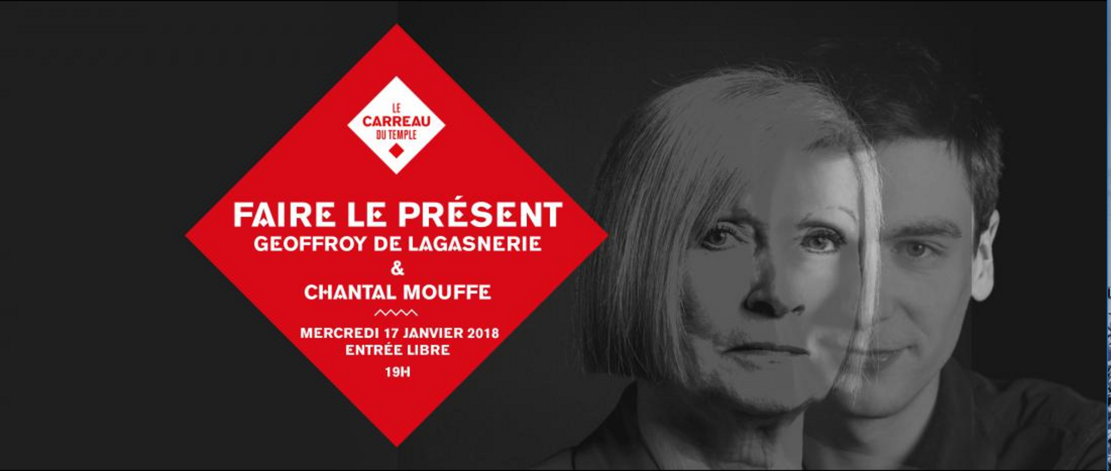 Dans le cadre du cycle "Faire le présent" organisé et produit par le Carreau du Temple, dialogue entre Chantal Mouffe / Geoffroy de Lagasnerie le mercredi 17 janvier 2018 à 19h.