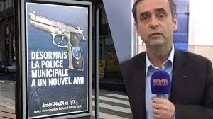 Rappelons entre autres la pub qui a fait scandale quand en février 2015, une campagne d’affichage sur laquelle on peut voir une arme accompagnée du slogan : « Désormais la police municipale a un nouvel ami ». Car, depuis du 1er février 2015, la police municipale patrouille armée dans les rues de la ville.