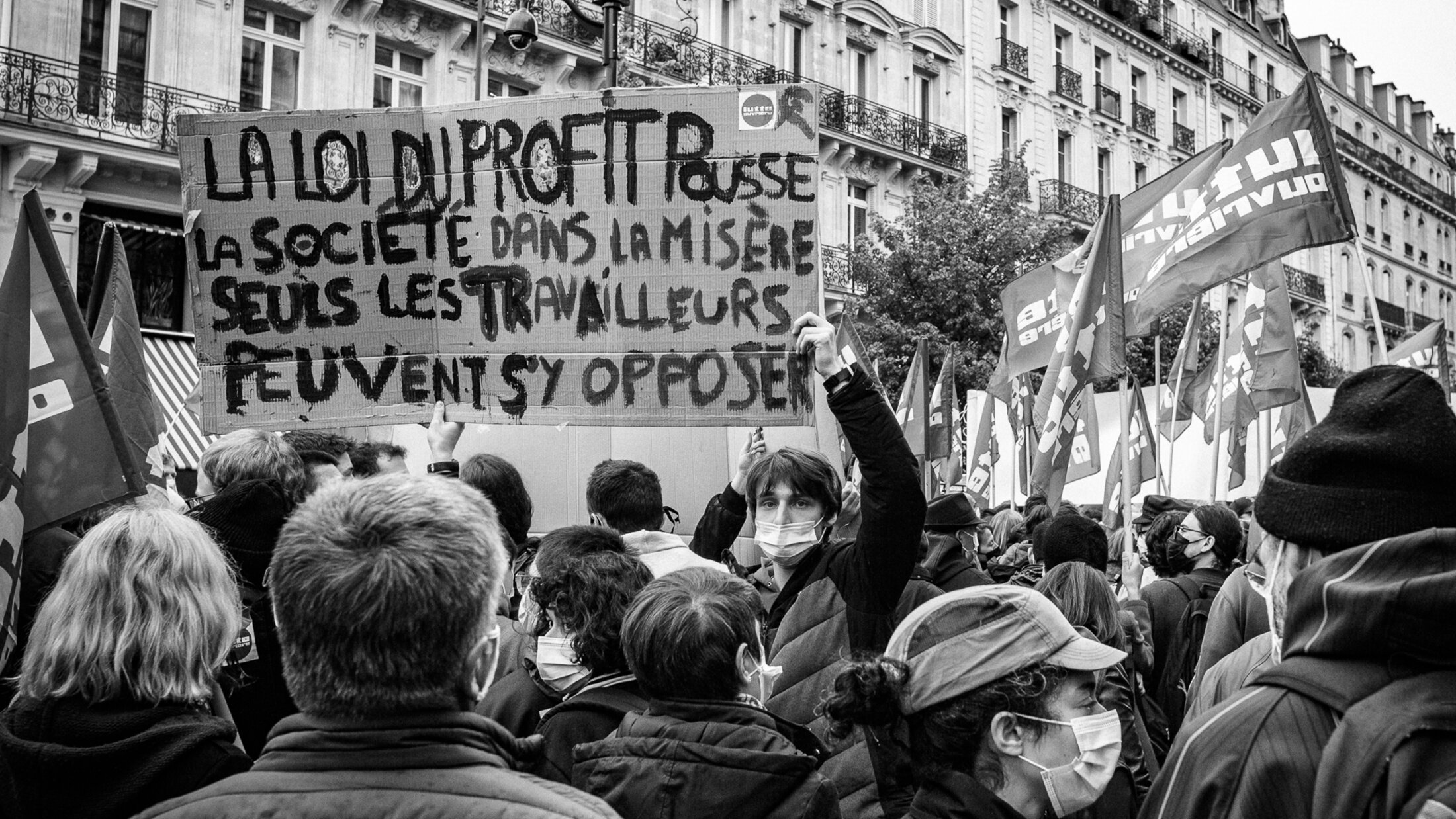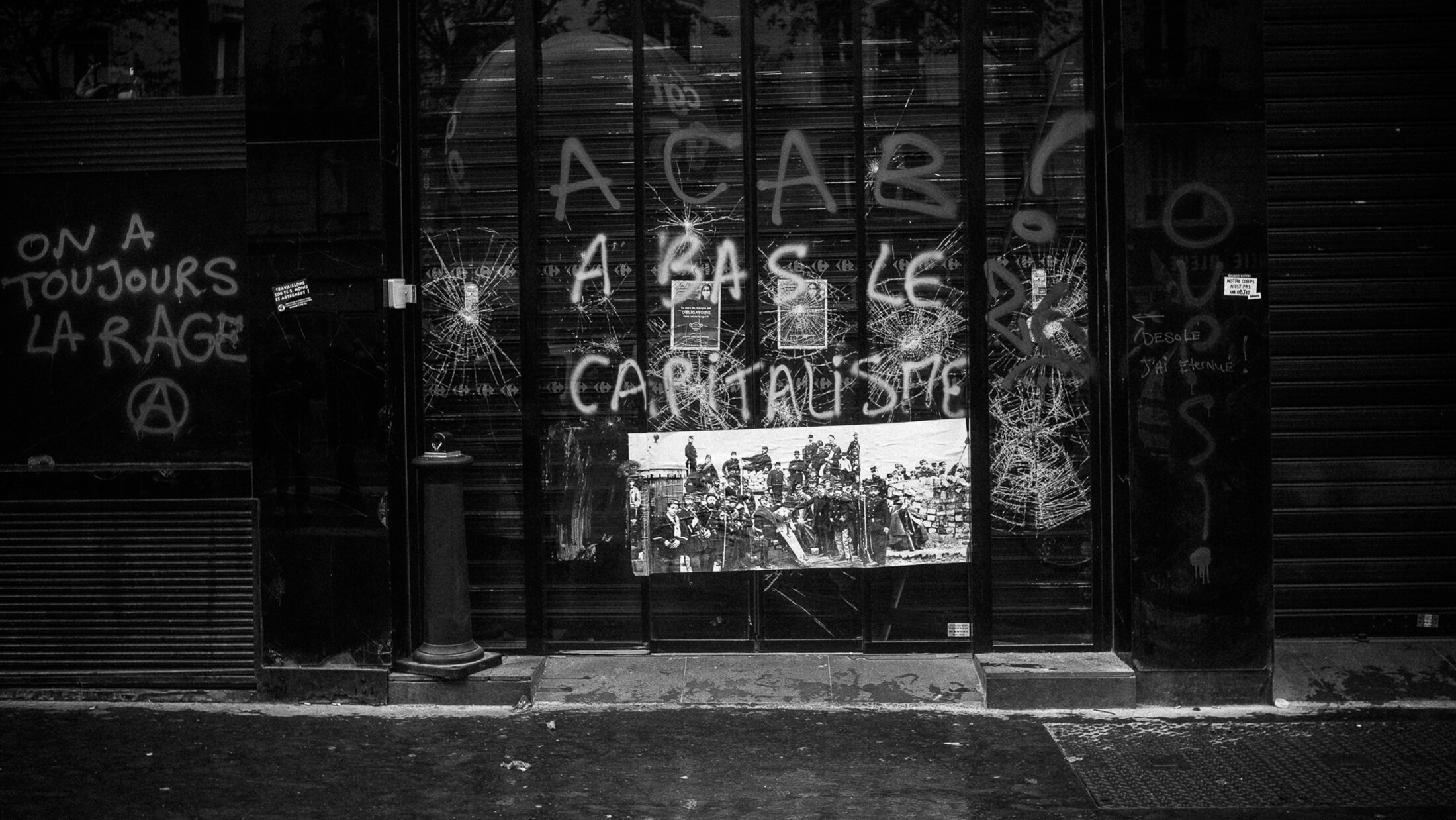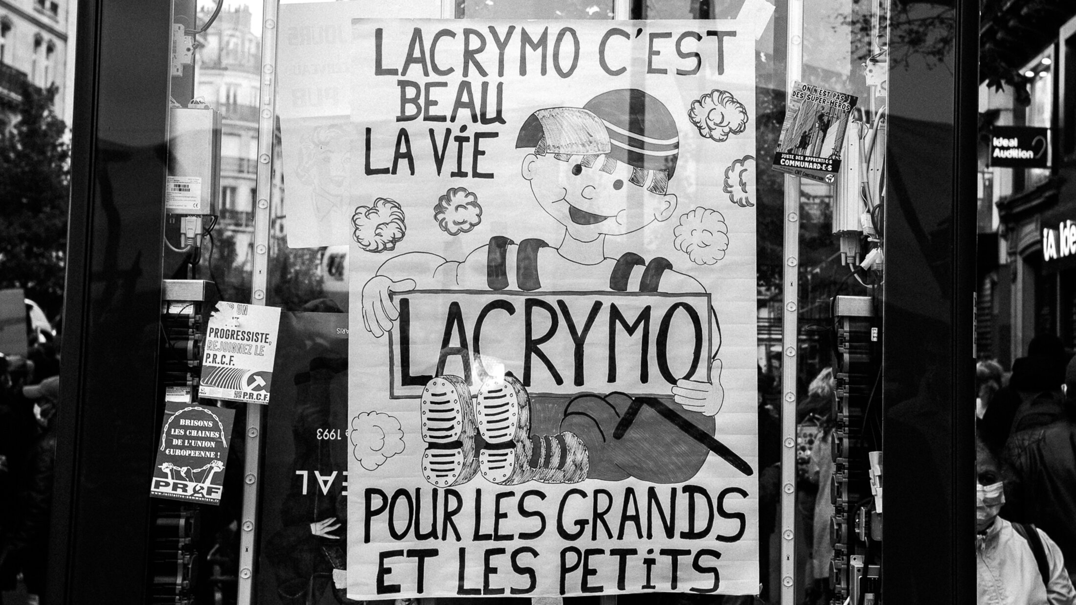 « L'Amour c'est regarder dans la même direction : BFMTV » / « Tant qu'il y aura des abattoirs, il y aura des champs de bataille » / « Lacrymo c'est beau la vie, pour les grands et les petits »... Un portfolio de Guillermo Gomez - 1er mai, fête des travailleurs et des travailleuses.
