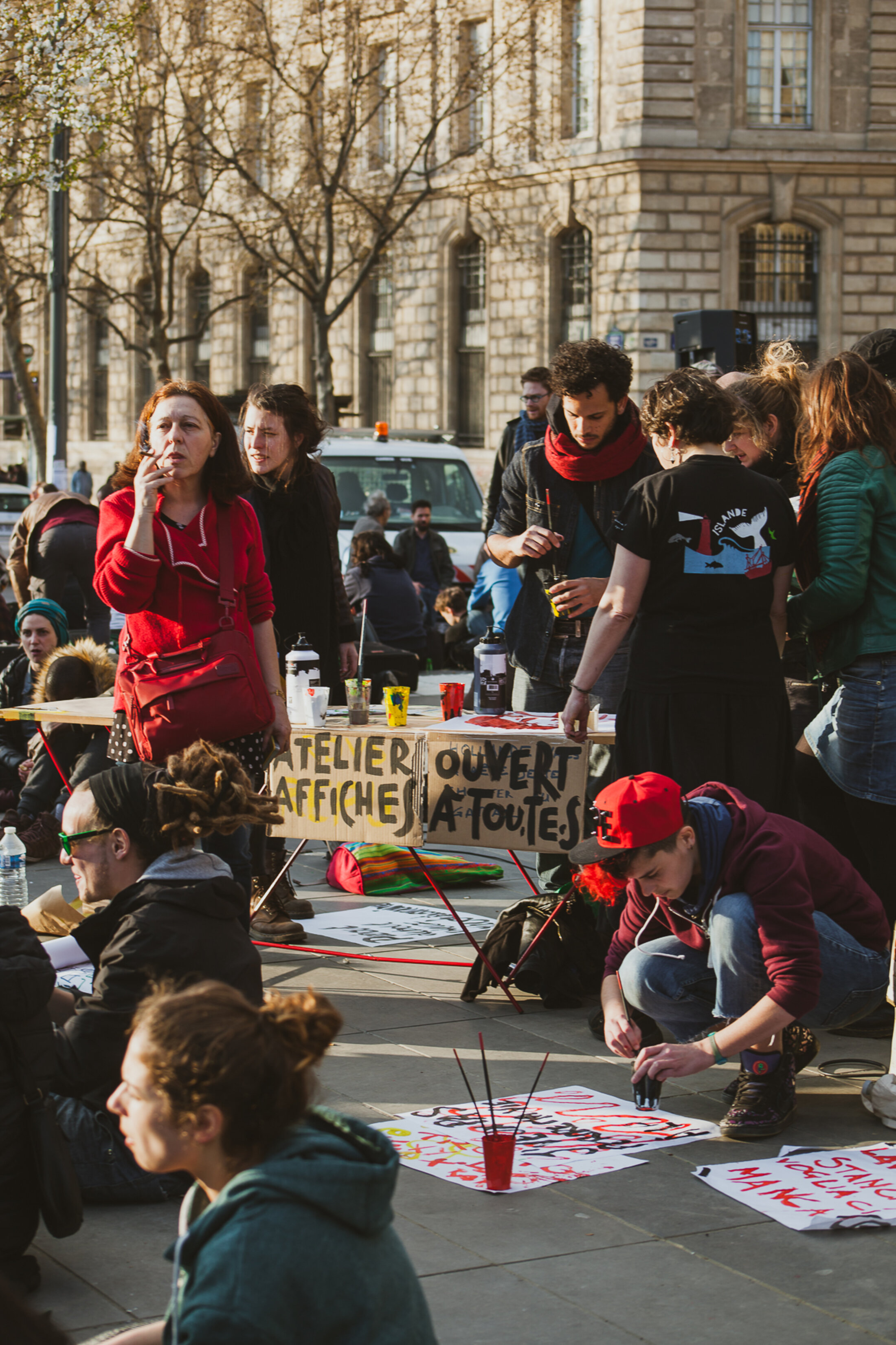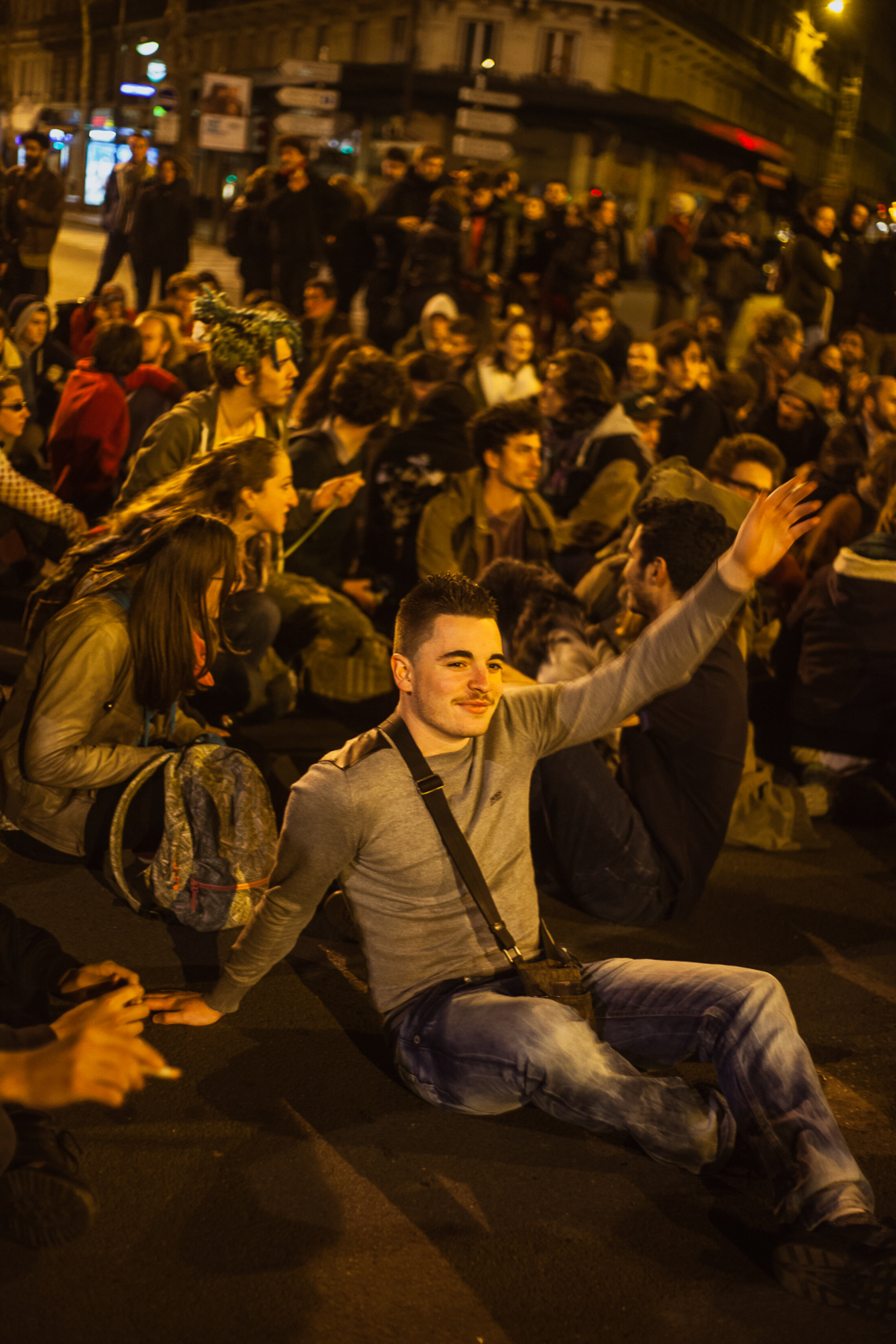 AG Place de la République & sitting pacifique Bvd St Germain, pour demander la libération des interpelés de la manifestation contre la loi El Khomri - Comissariat Maubert Mutualité