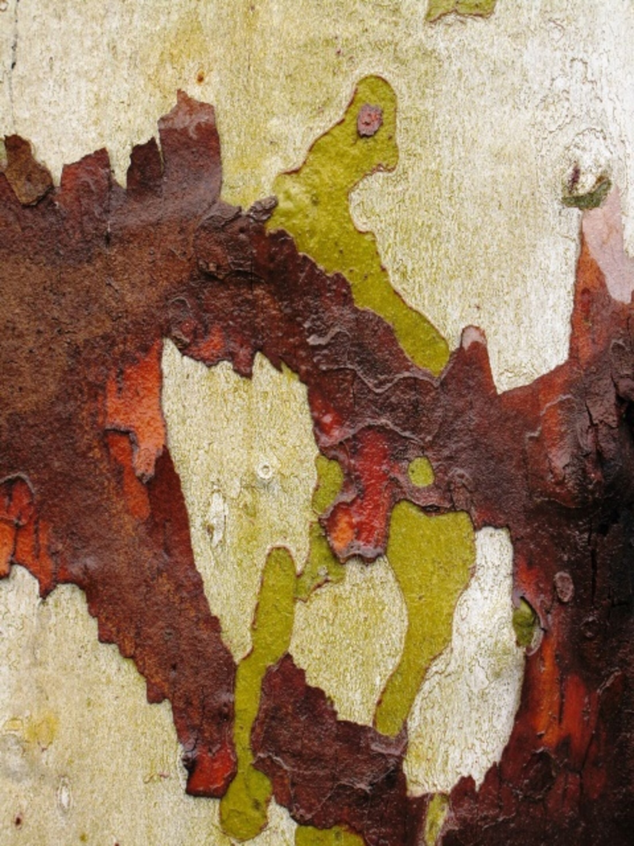 Au-delà de l’évidence de ce qui est représenté, des écorces d’arbres, le détail s’impose comme sujet à part entière : une forme, un mouvement, une petite symphonie de couleurs. Mas allá de lo evidente, cortezas de árboles, el detalle se impone como sujeto en sí mismo. Una forma, un movimiento, una pequeña sinfonía de colores.