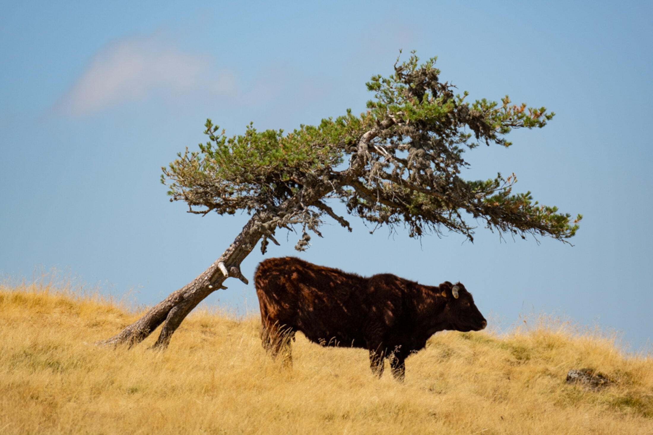 Forêt de Guéry, août 2022. Une vache cherche de l'ombre sur un Puy auvergnat, dans une prairie désespérément sèche à plus de 1 300 mètres d'altitude. Une des images d'un été encore plus marqué que les précédents par le dérèglement climatique.