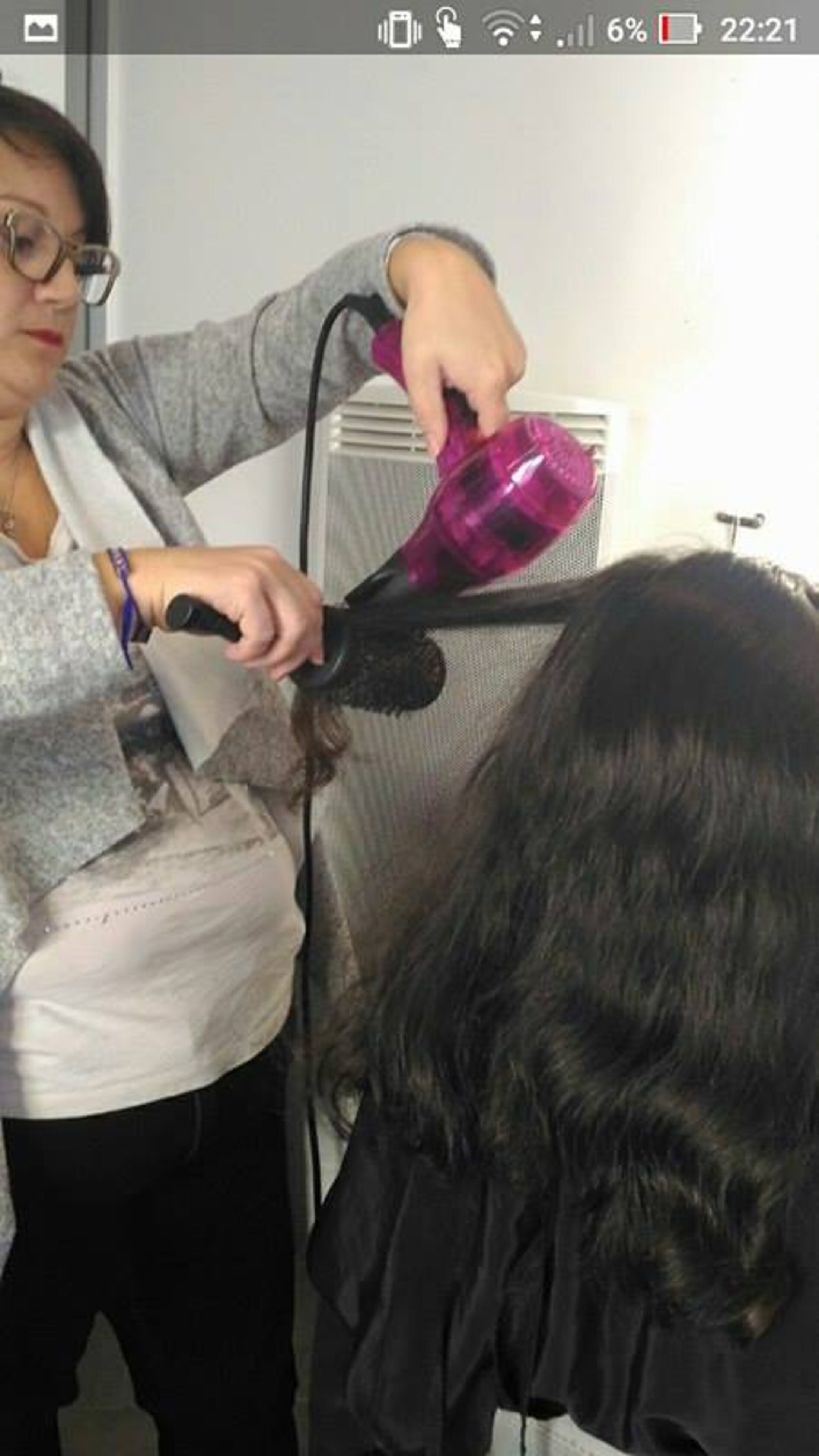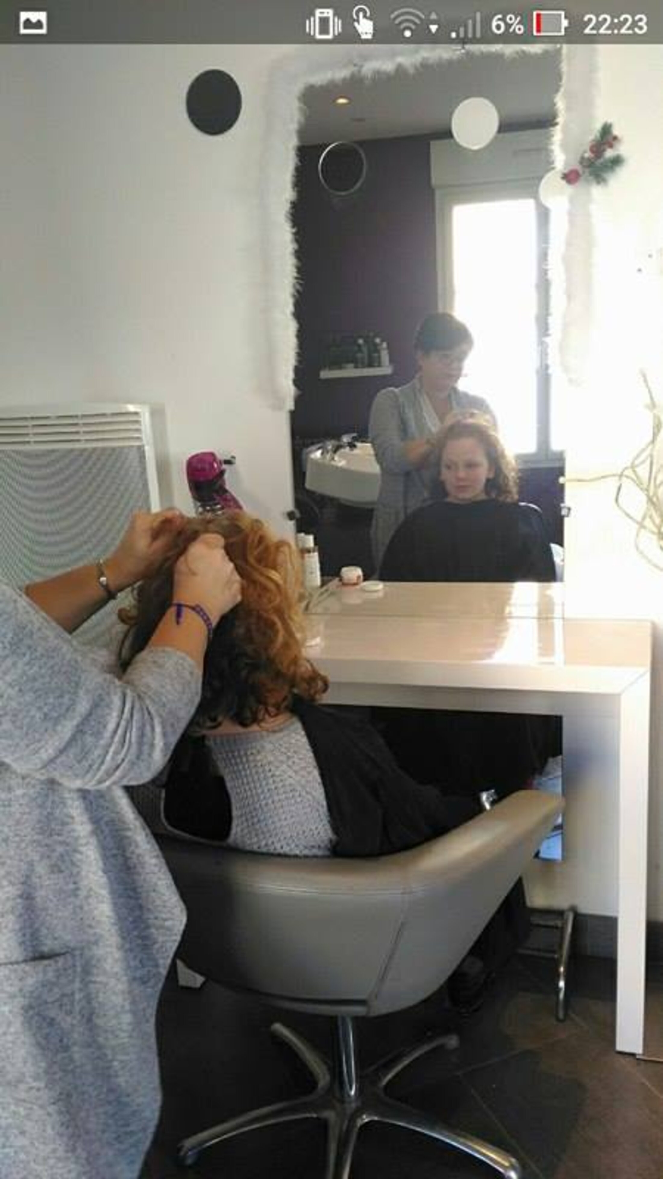 Pour finir la séance, la coiffeuse tresse la chevelure de la cliente, à sa demande.