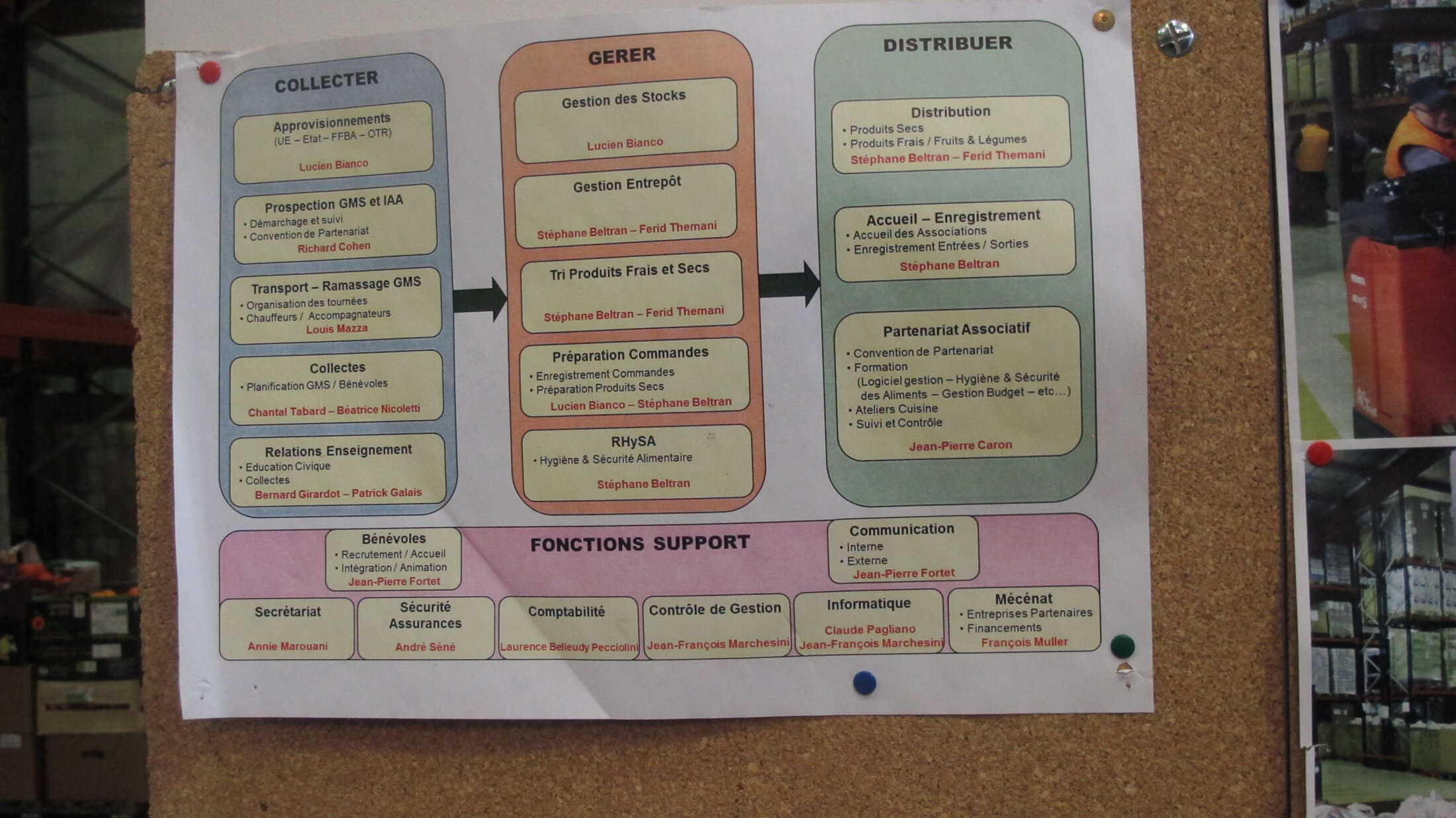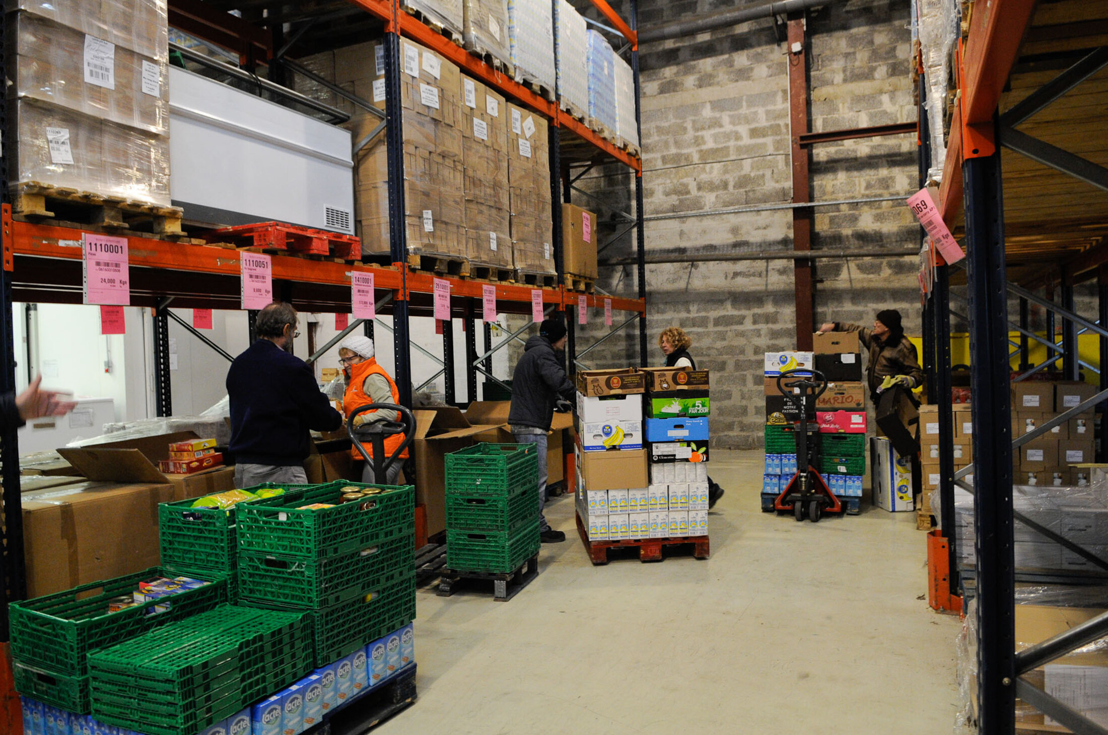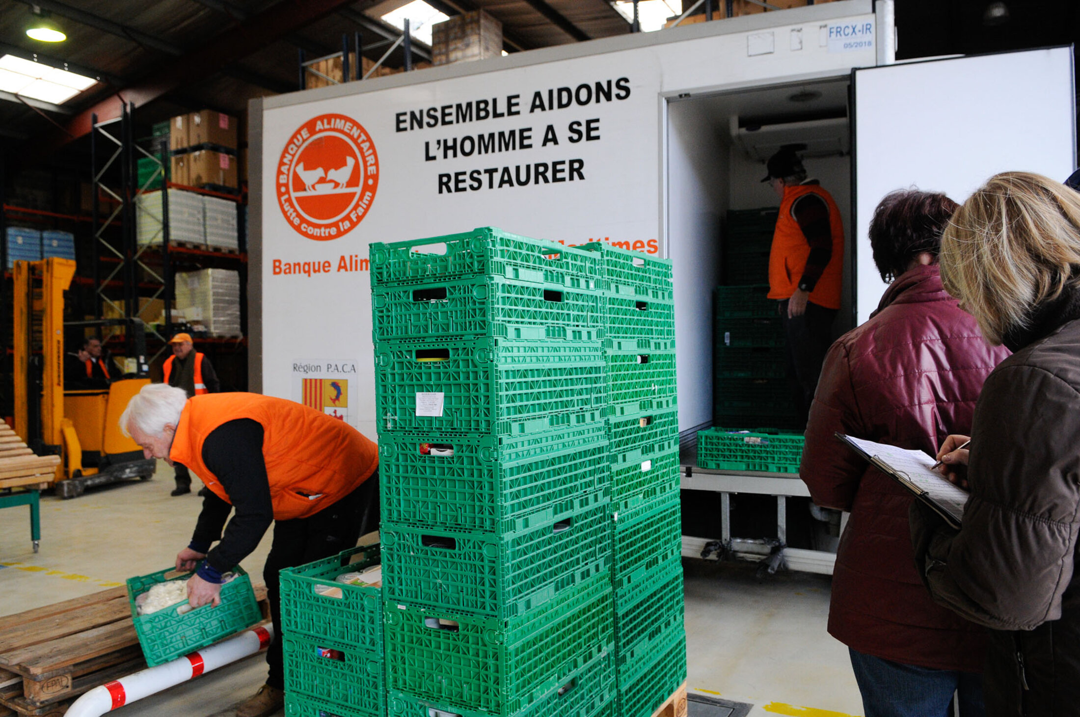 La journée commence tôt pour les bénévoles. Les camions viennent décharger les premières collectes en début de matinée à l'entrepôt. Tout est répertorié, pesé.