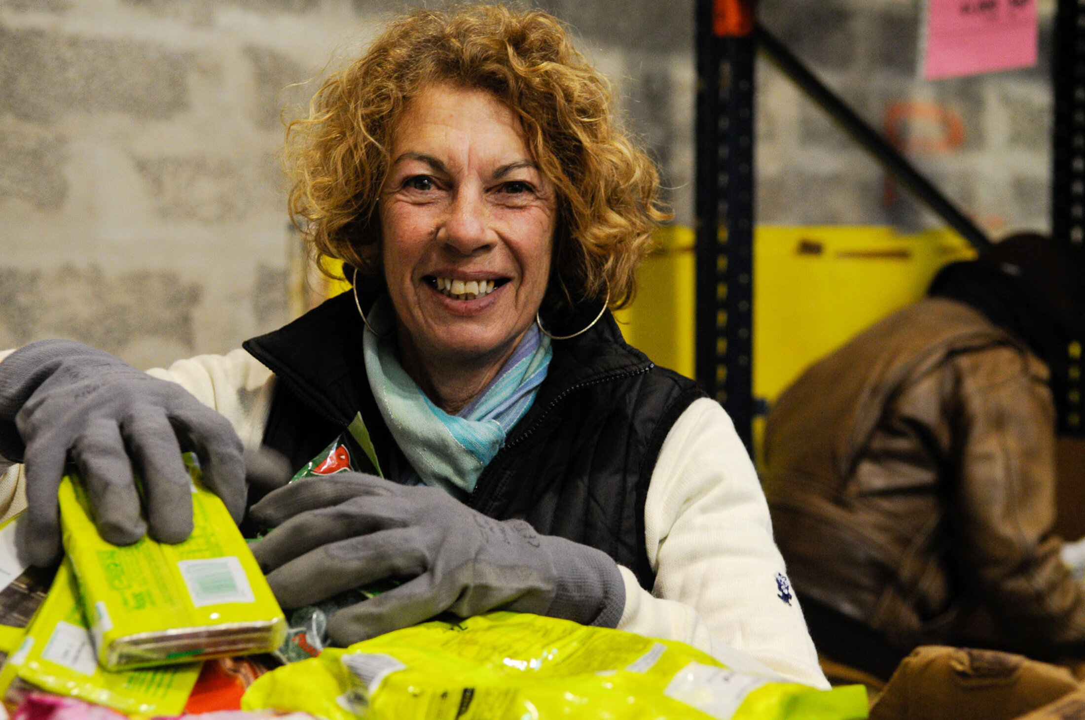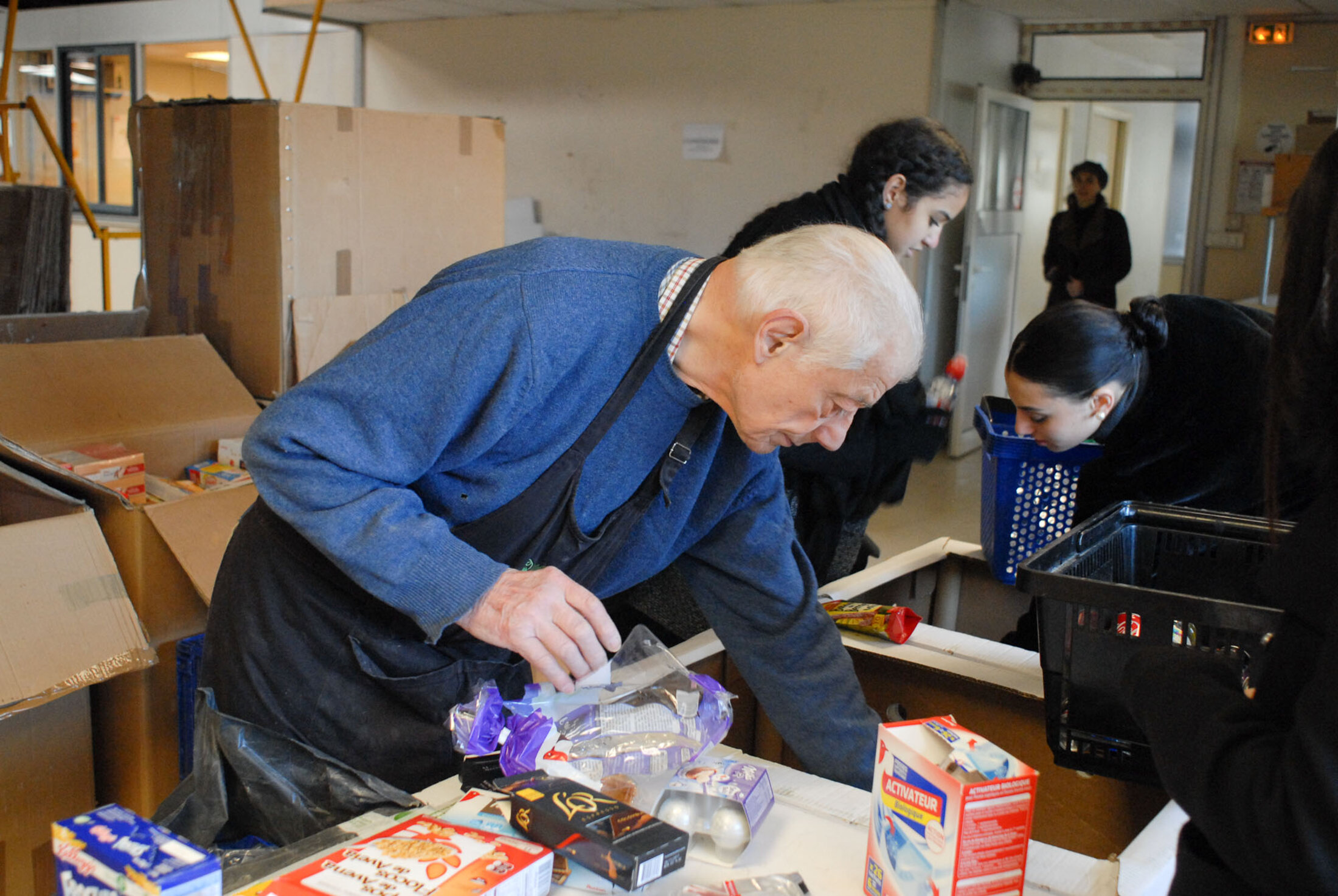 Plusieurs bénévoles trient le fruit des collectes.