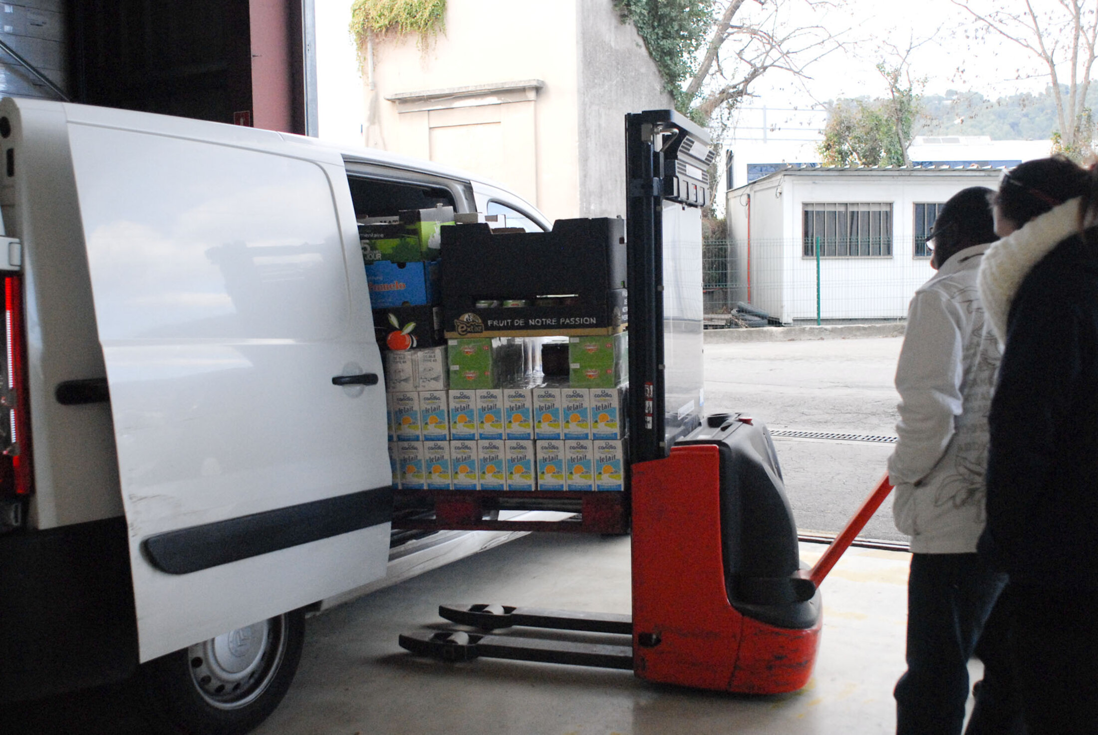 Des denrées sont chargées: en route vers des centres de distribution comme les épiceries sociales.