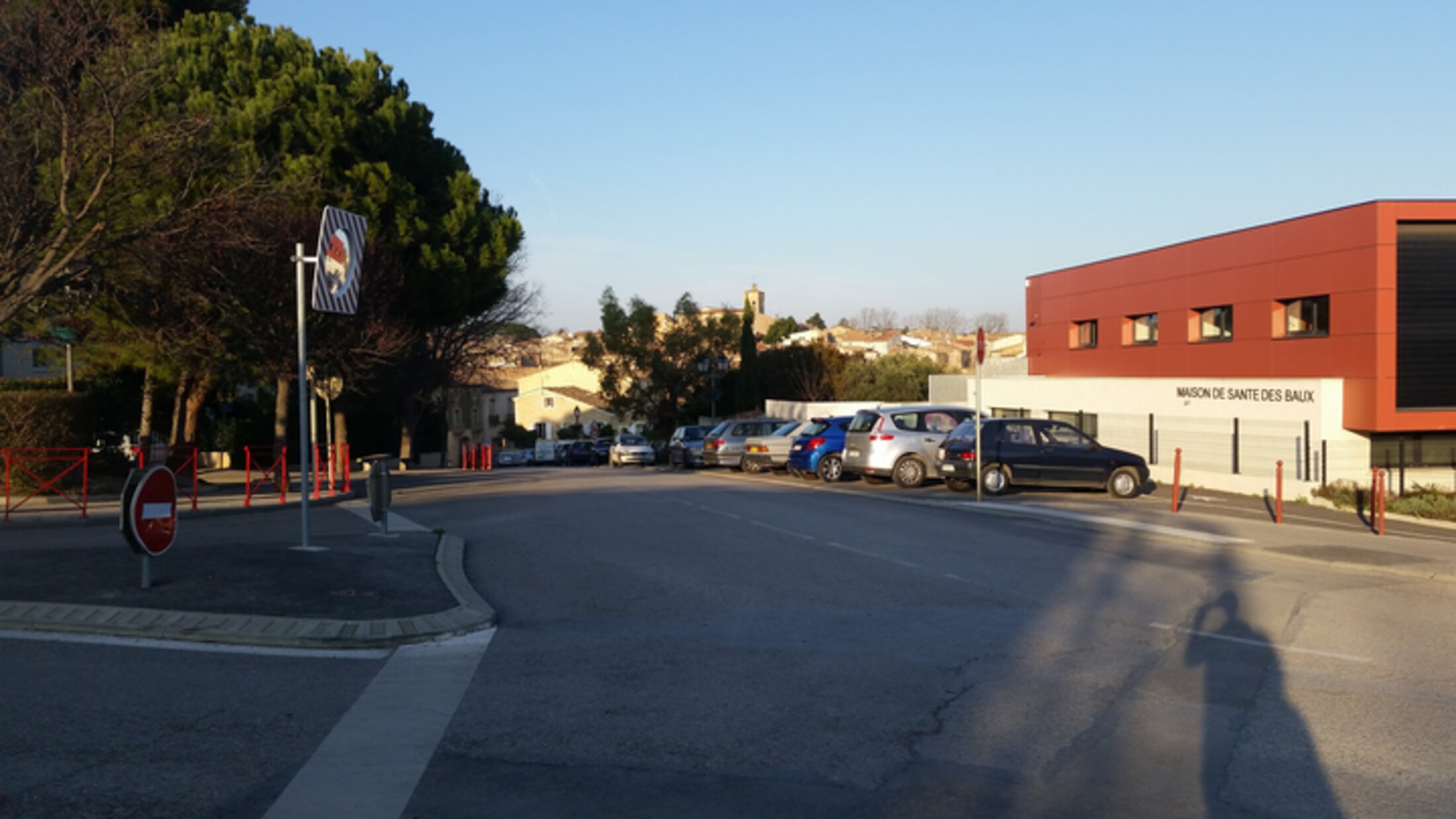 Parking devant la poste. Habituellement, il est nécessaire de se garer dans la rue tellement le parking est bondé. En ce dimanche, ce n'est pas la place qui manque.