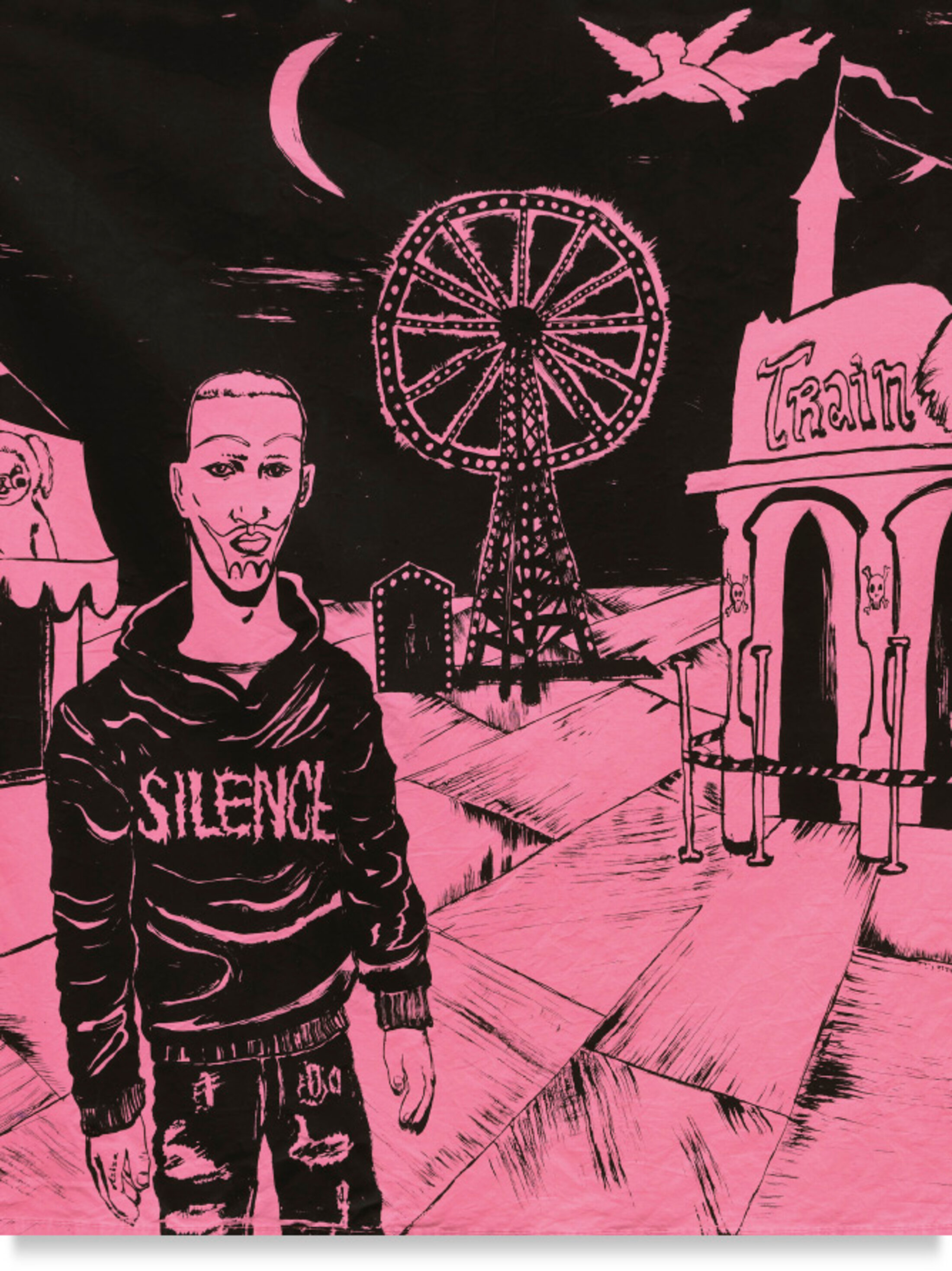 « Repos à nos magiques » est la première monographie de l’artiste Neila Czermak Ichti (née en 1996 à Paris, vit et travaille à Marseille), publiée à l’occasion de son exposition personnelle à la galerie Anne Barrault à Paris à l’automne 2021. L’ouvrage reproduit près de quatre-vingts dessins reflétant l’univers de l’artiste dans lequel des figures issues de la sphère intime, famille ou amis, évoluent entre culture populaire et tradition immémoriale. Le regard tourné vers le hors-champ, l’esprit vagabondant, la plupart sont présentes sans vraiment l’être, flottant vers un ailleurs, parfois créatures hybrides, animaux fantastiques, oiseaux à tête d’homme. Elle rappelle que son prénom à l’envers s’écrit et se prononce Alien. La créature de Ridley Scott est le personnage central d’un bel essai intitulé « Hommage et paix à Bolaji Badejo » dans lequel elle évoque l’invisibilité imposée à la différence, affirme sa volonté de ne laisser personne disparaitre. « Notre histoire est incroyable, et qu’on a trop longtemps voulu nous effacer, encore aujourd’hui » écrit-t-elle.