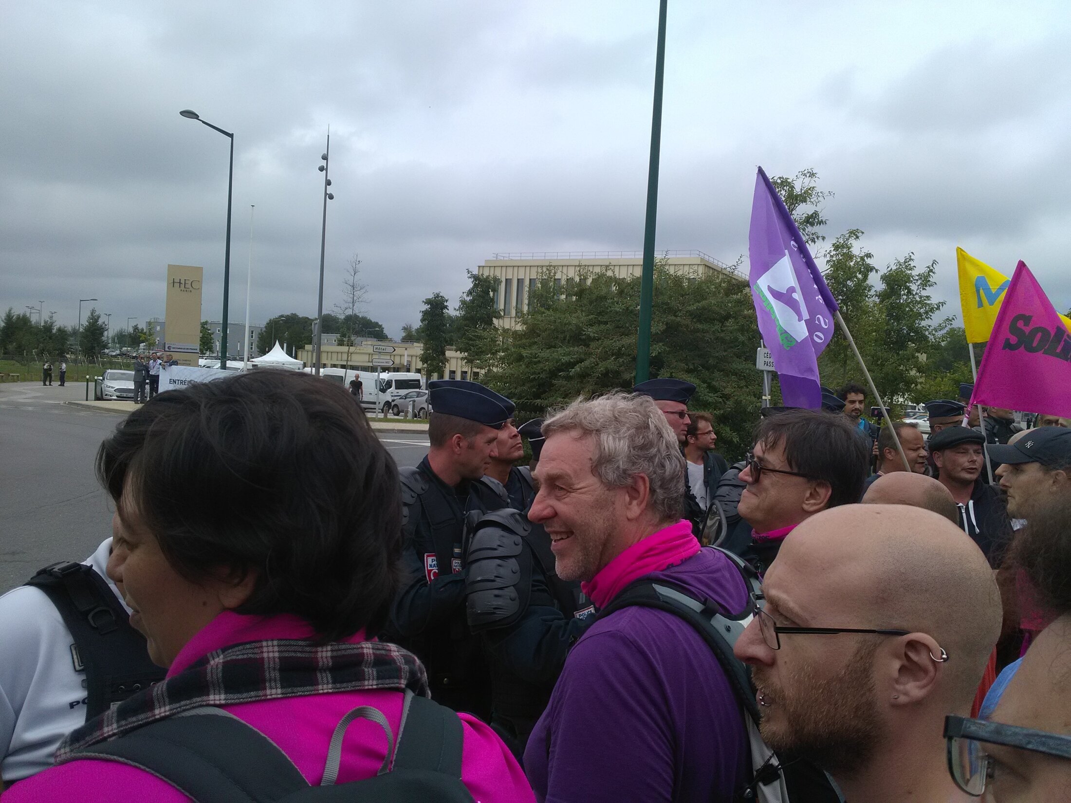 Il n’est plus de manifestation sans cadenassage policier. Les forces « de l’ordre » (mais lequel ?) étaient bien présentes pour empêcher l’accès au campus et à l’université d’été du Medef. L’occasion de scander un « état d’urgence, État policier, on ne nous empêchera pas de manifester ! »… et de rappeler l’appel unitaire à la mobilisation contre « l’état d’urgence permanent » du 10 septembre prochain.