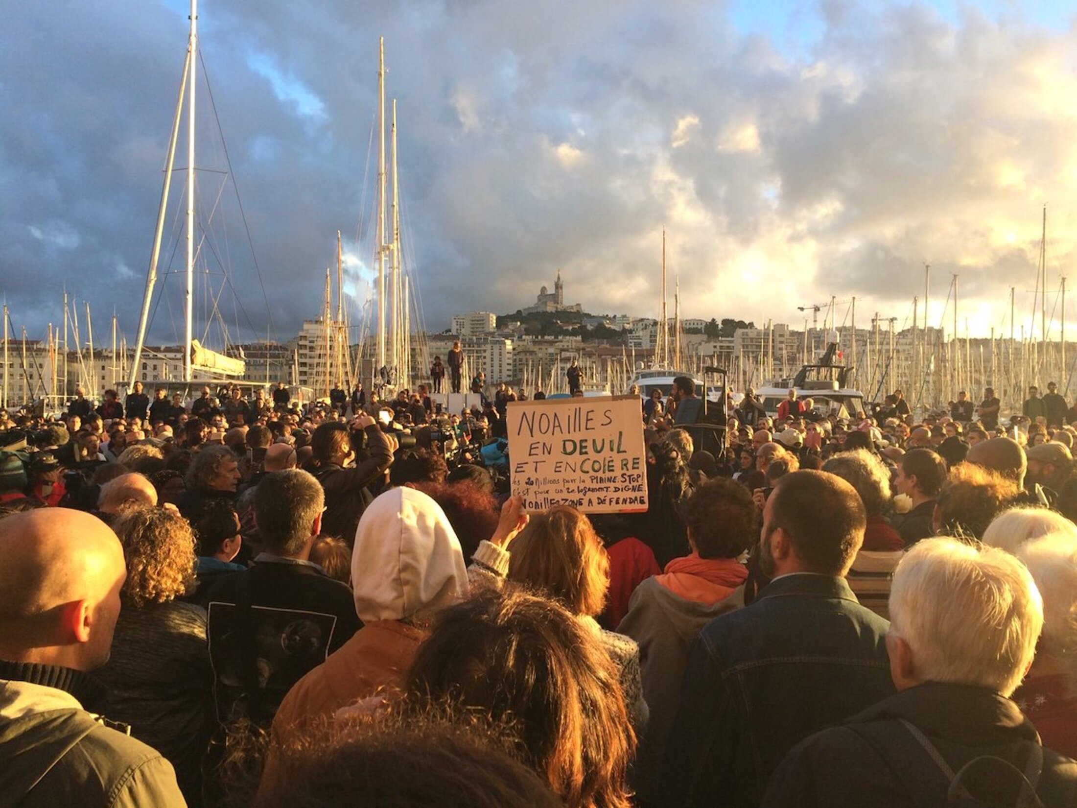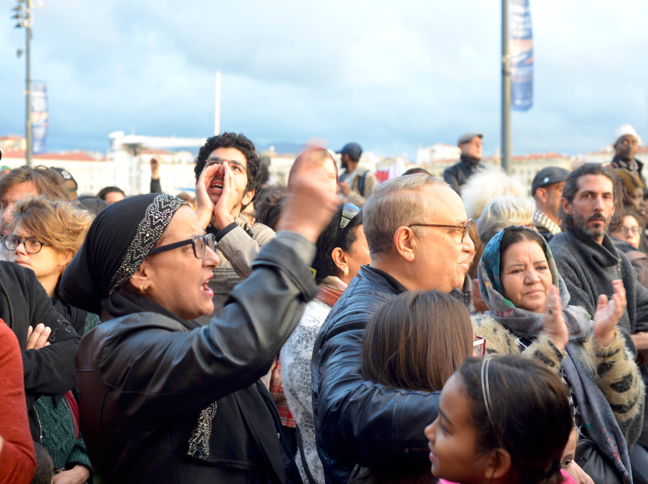 Sur le Vieux-Port, les claquements de main, qui parcourent la foule comme une vague, se propagent aux immeubles adjacents.