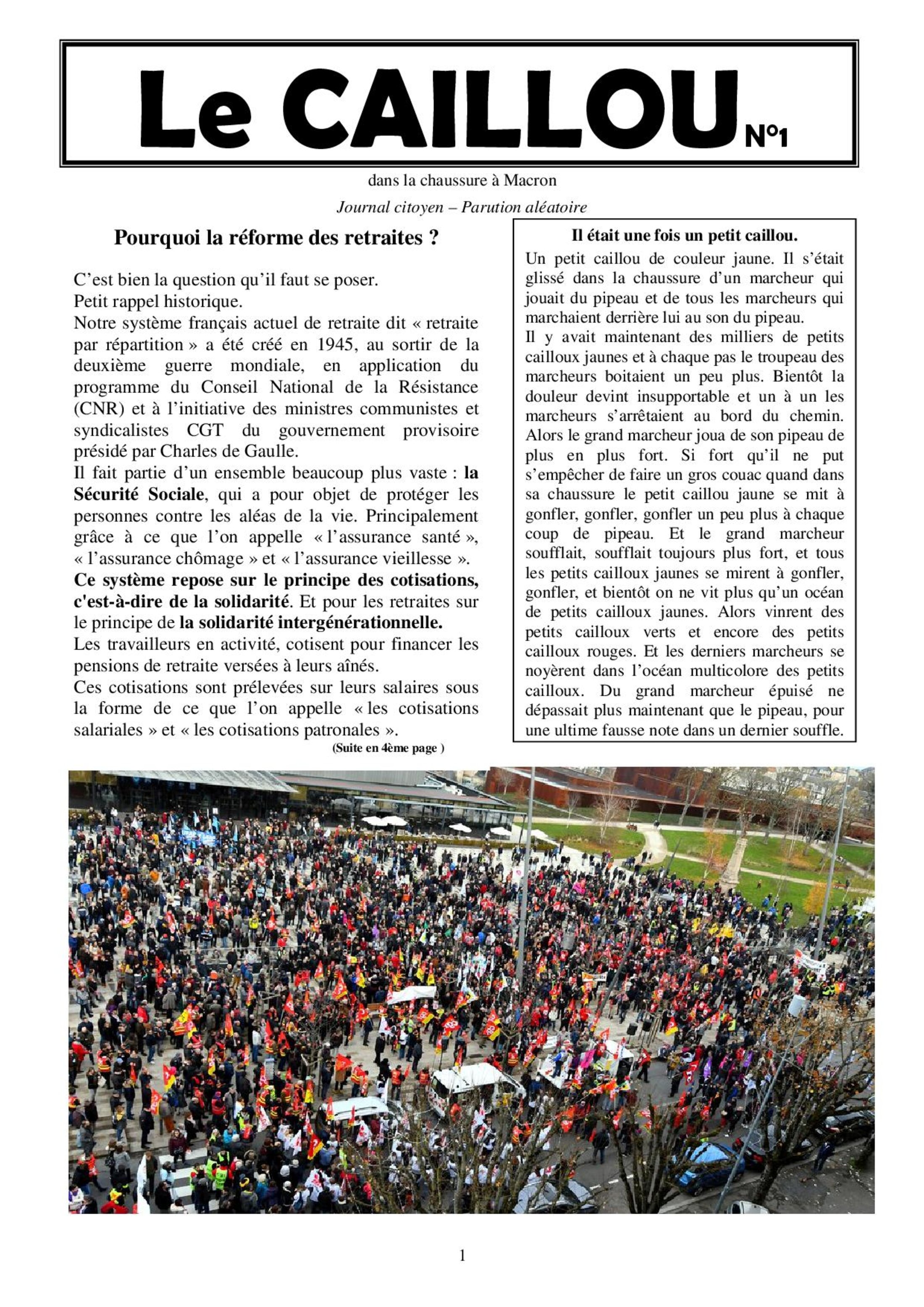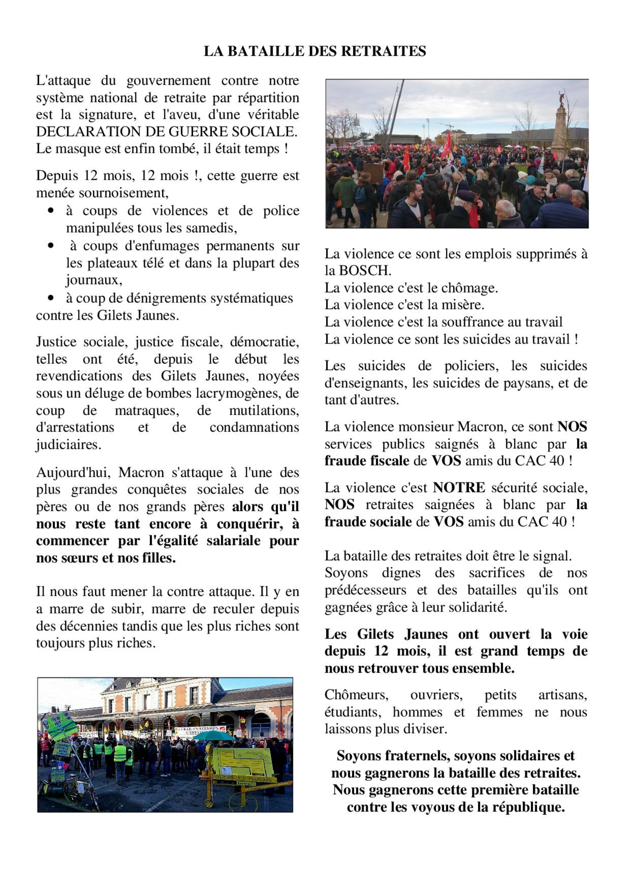 C'est une feuille de chou distribuée par les Gilets Jaunes de Rodez à l'occasion des manifs contre la réforme macronienne des retraites.