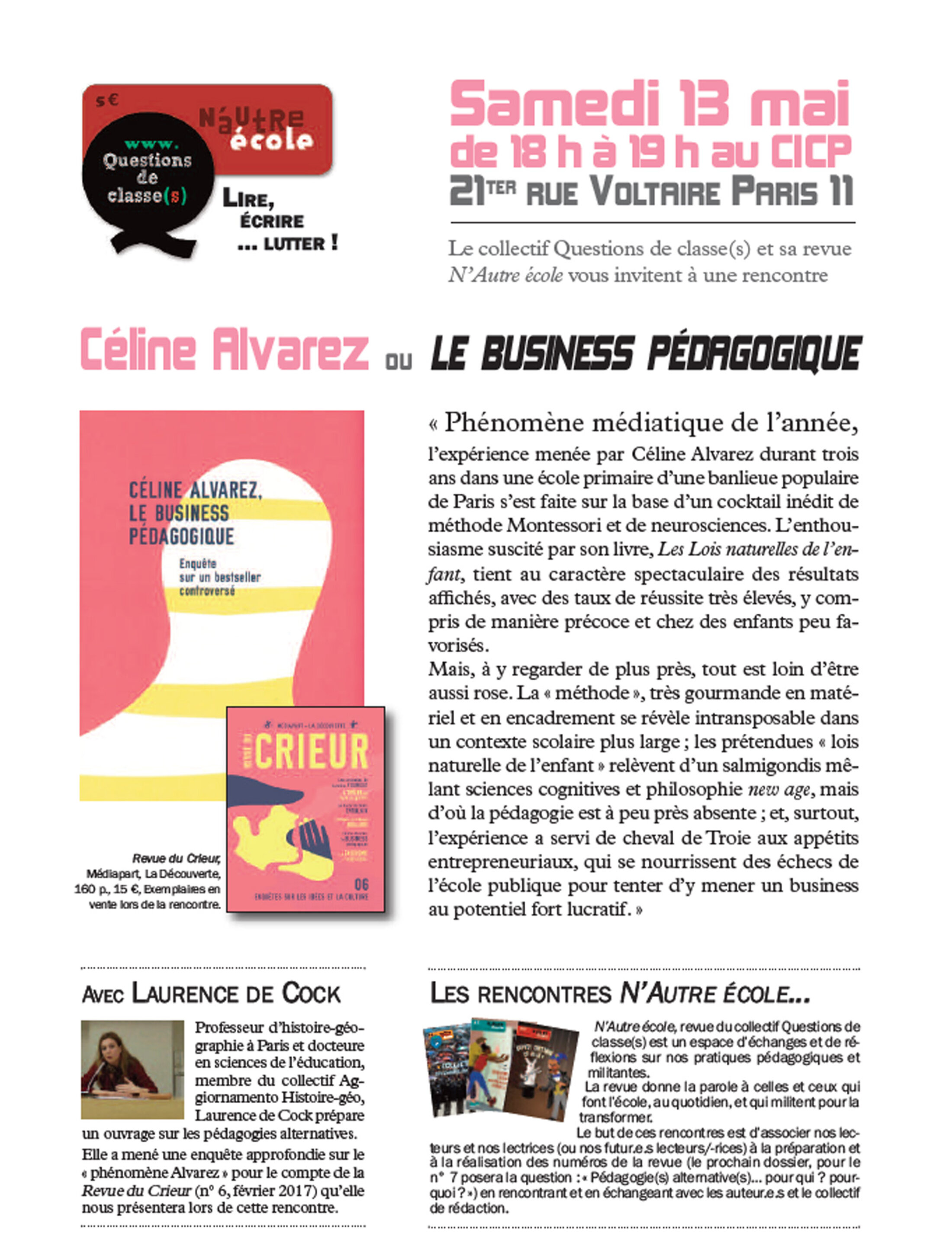 N’Autre école, revue du collectif Questions de classe(s) est un espace d’échanges et de réflexions sur nos pratiques pédagogiques et militantes.