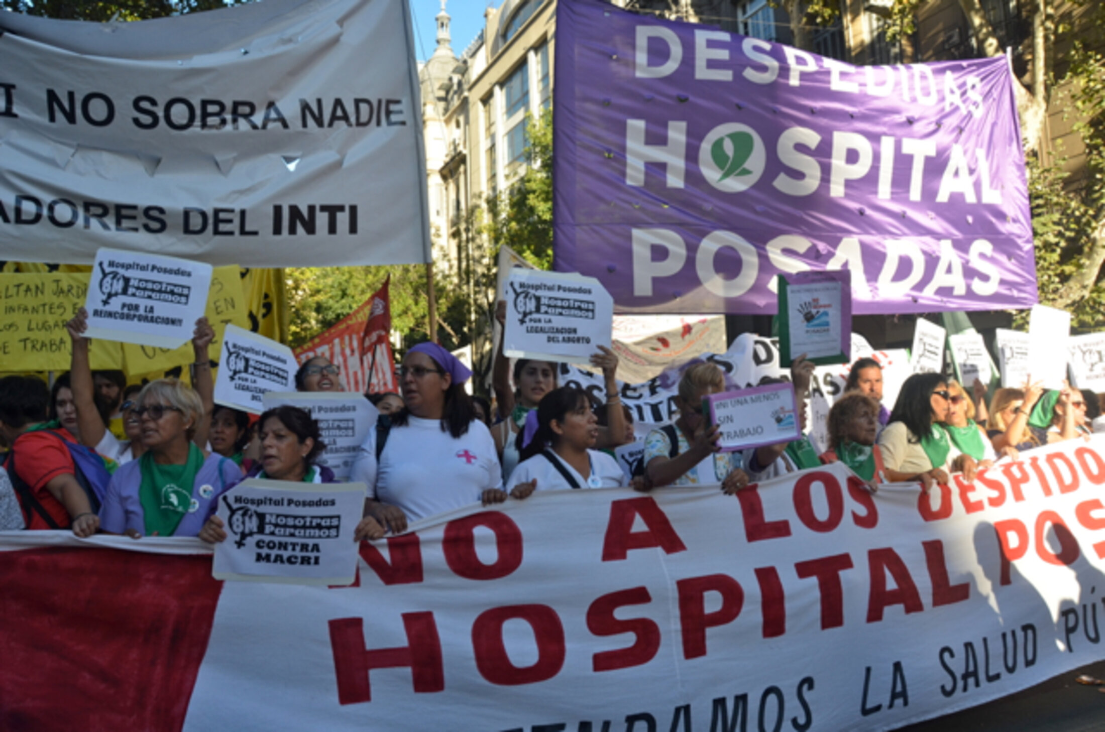 Sur cette photo des salariées licenciées de l'Hôpital Posadas et de l'INTI (Institut National de Technologie Industrielle).