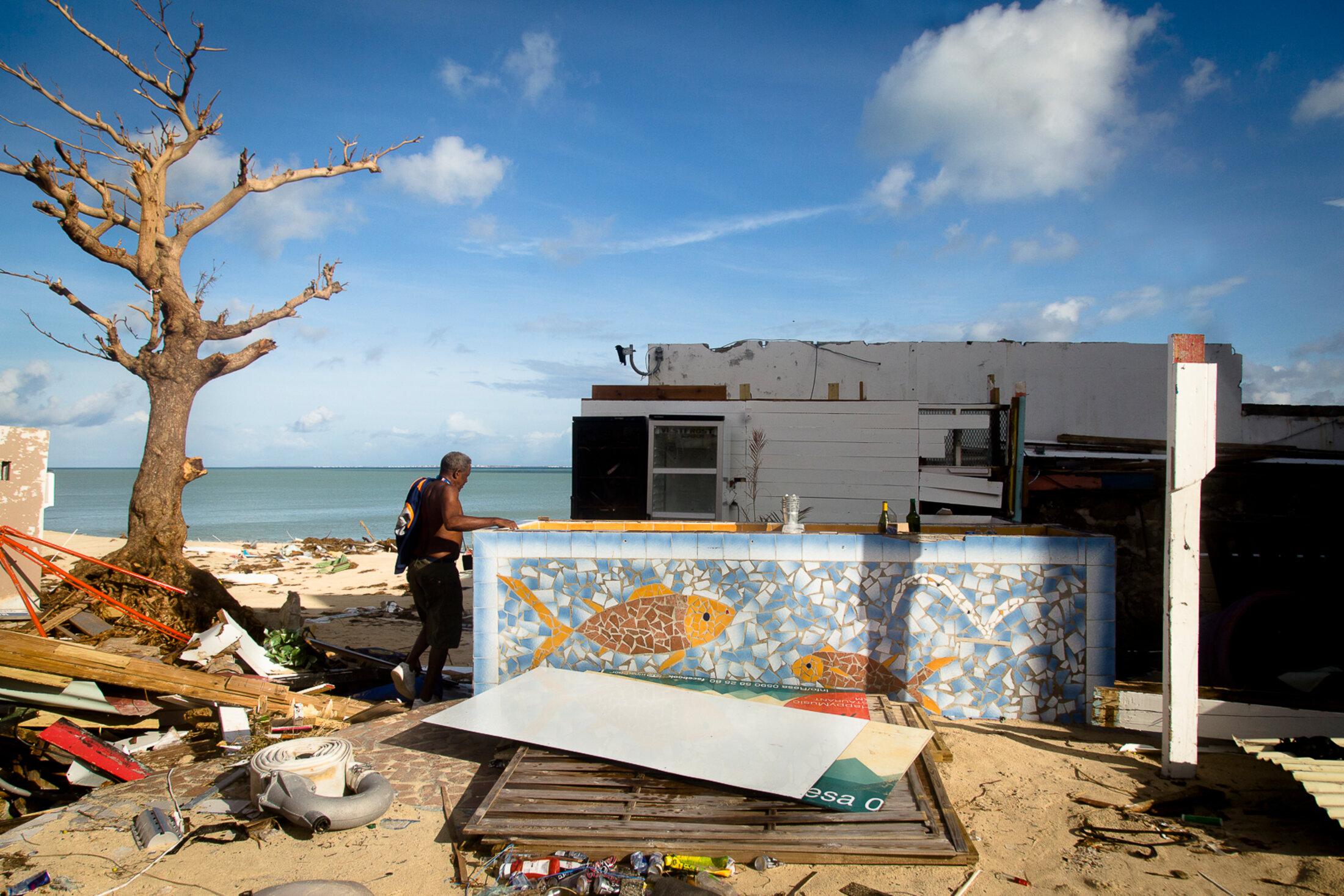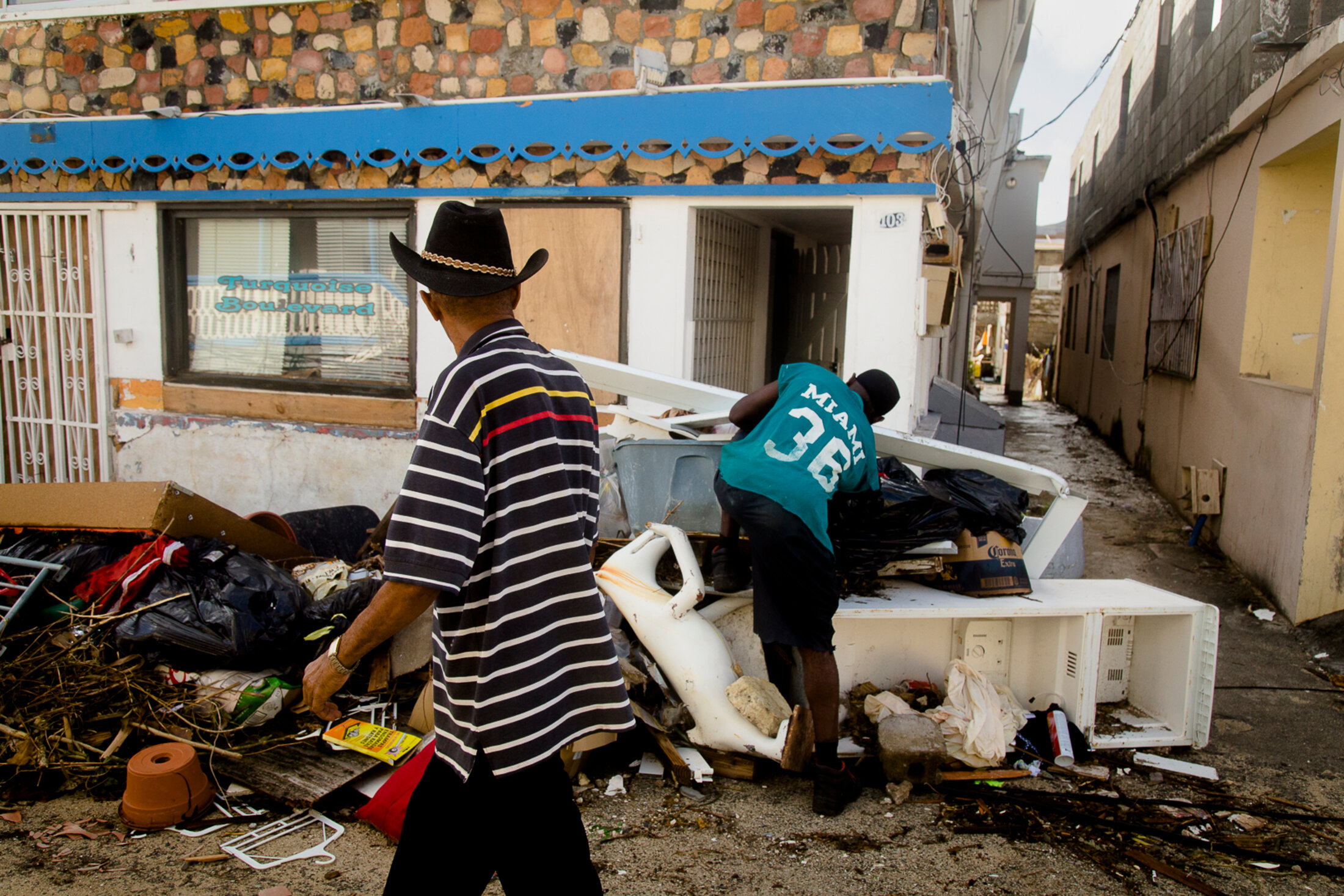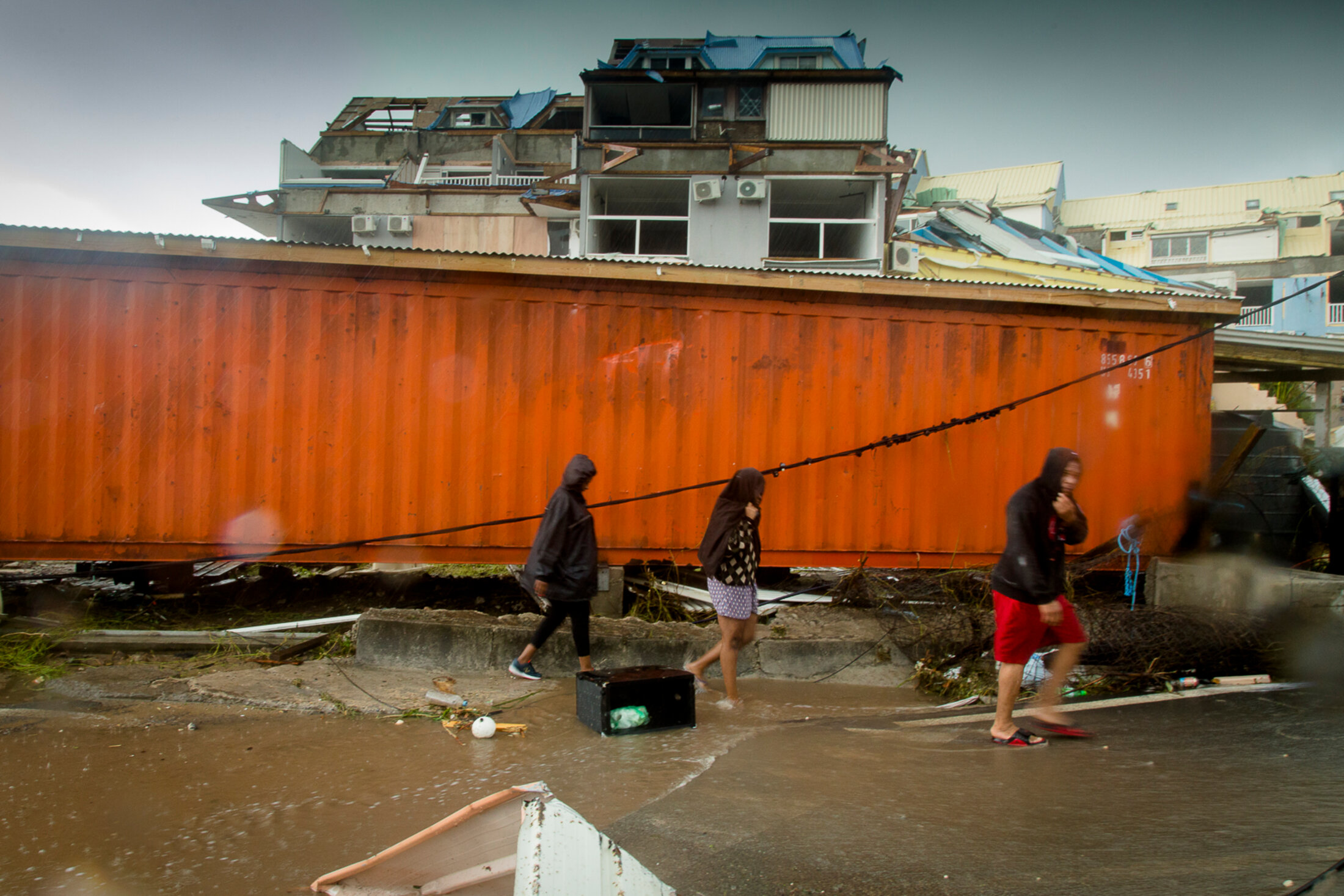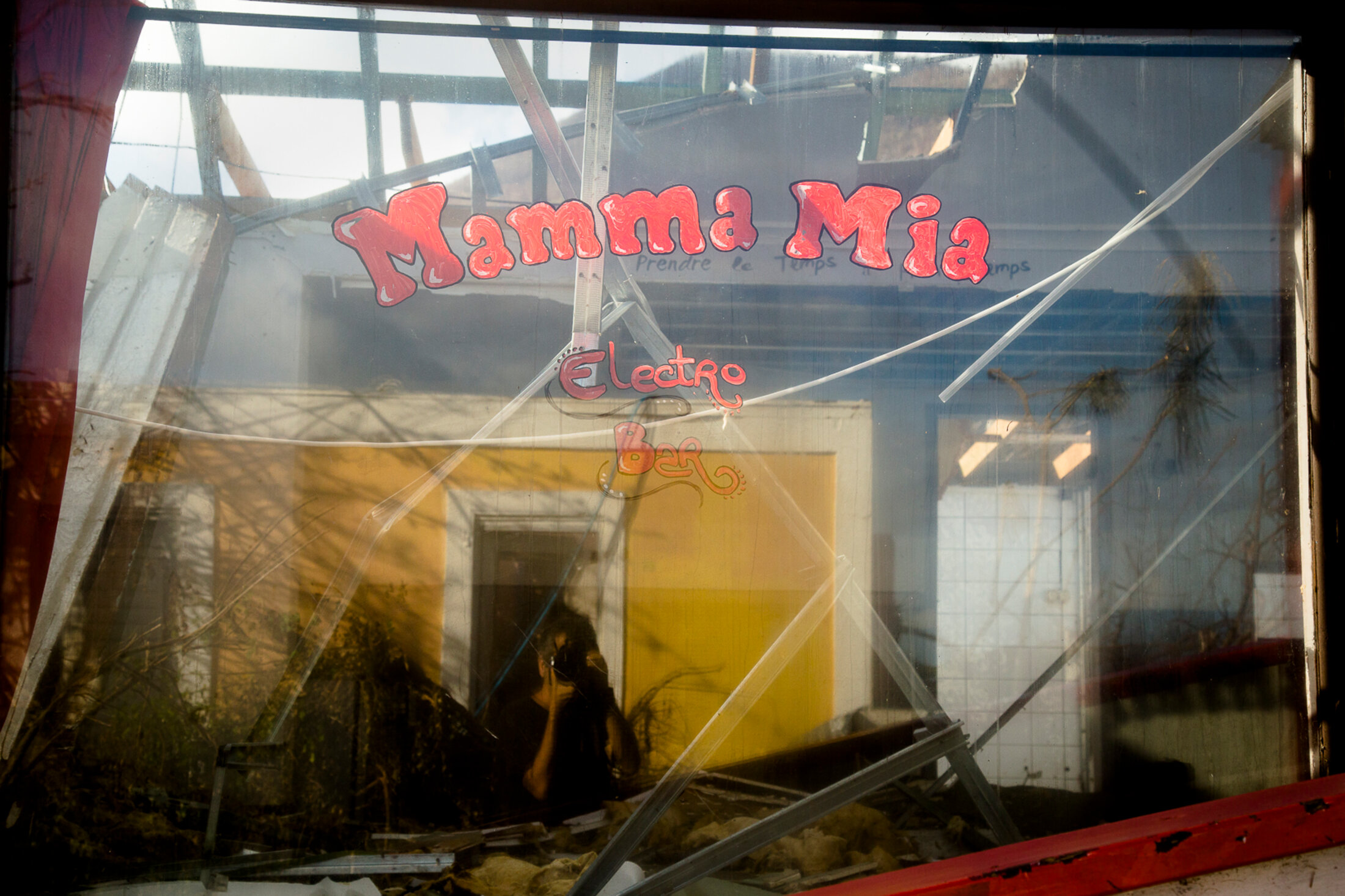 Ces photographies ont été réalisées au fil de mes errances dans un Saint Martin de l'après Irma. J'ai essayé d'y inclure autant que possible et dès le départ l'humain, nous autres les habitants de l'île, en essayant d'éviter le voyeurisme. Il s'est avéré par la suite que la majorité des images publiées dans la presse ou sur les réseaux sociaux insistaient beaucoup sur les dégâts matériels. Elles ne tiennent pas forcément comme un ensemble cohérent si ce n'est par la façon dont je compose et dont je gère la couleur ou la matière. Ce sont mes premières images. Aujourd'hui je poursuis mon travail autour de l'humain et de l'après cyclone différemment.