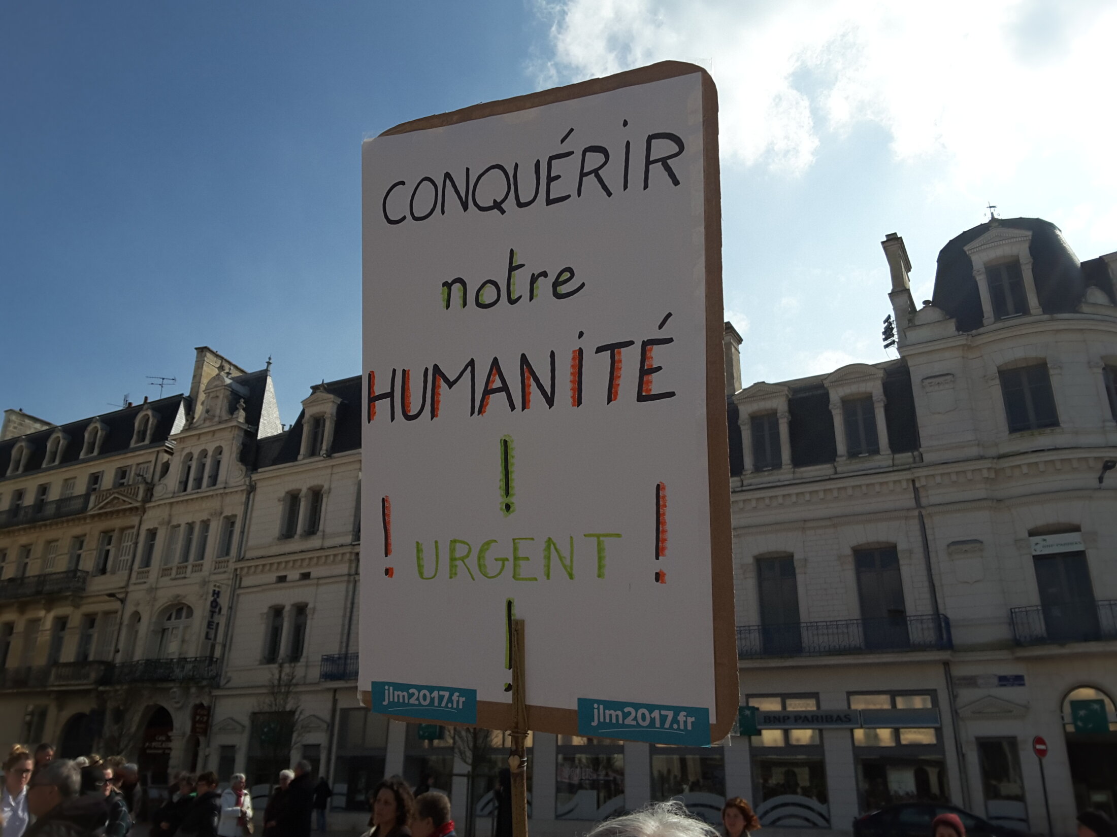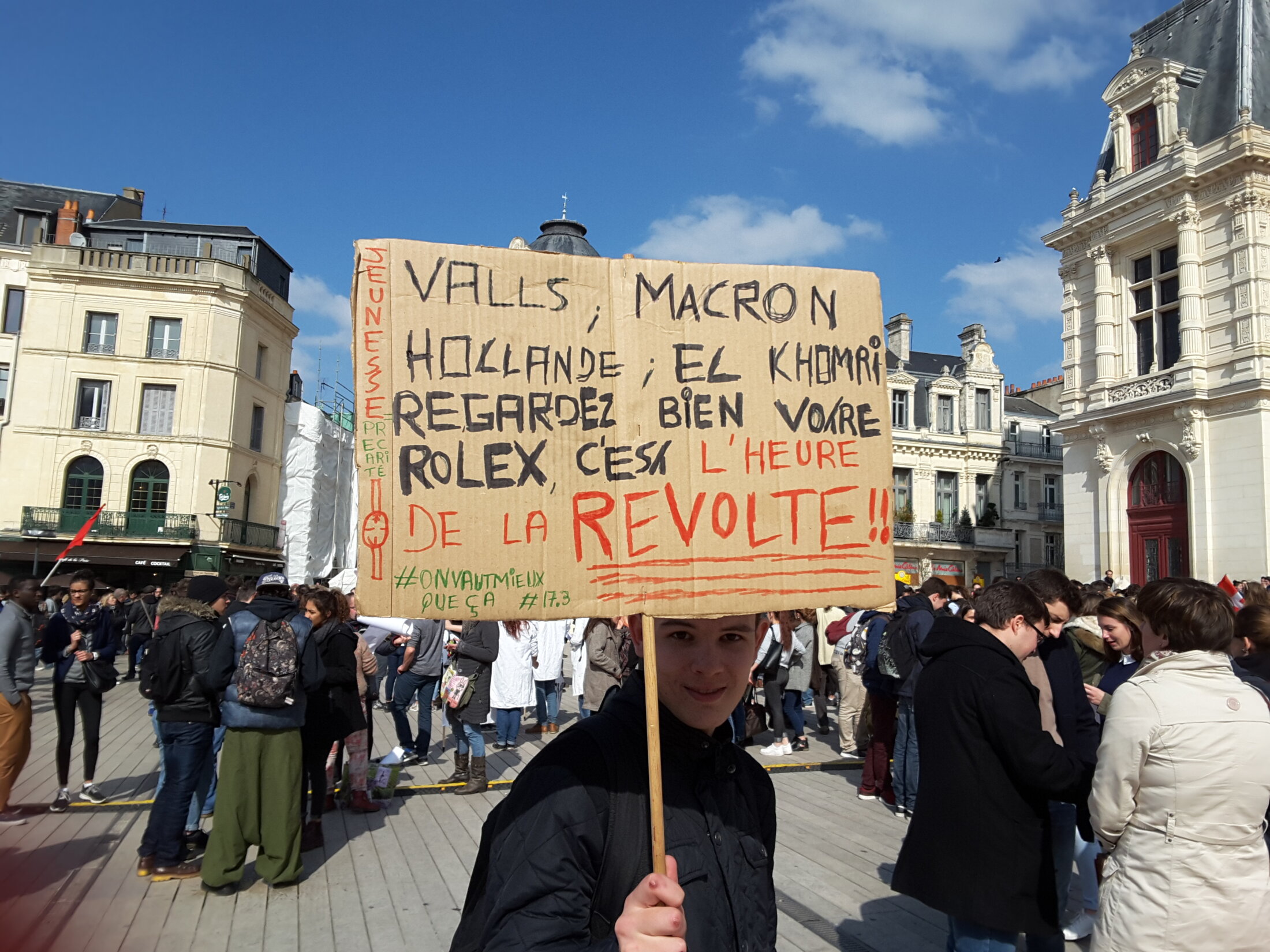 Pancarte pendant le rassemblement devant la mairie de Poitiers le 17 mars 2016 contre le projet de loi travail.
