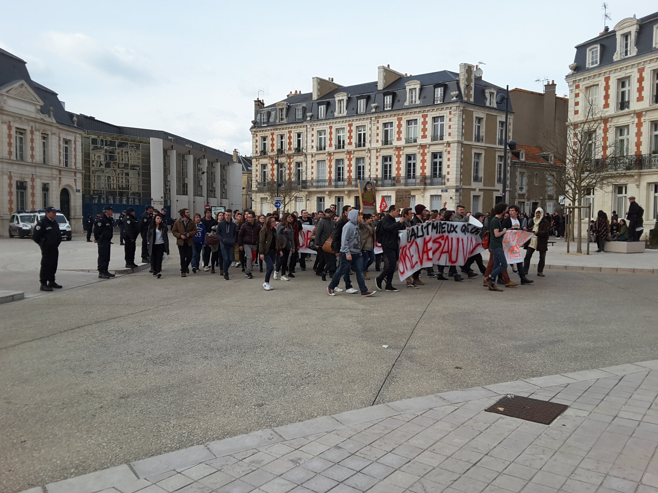 Plus d'un millier de personnes ont manifesté dans les rues de Poitiers le jeudi 17 mars 2016, répondant à l'appel d'organisations et de mouvements lycéens et étudiants décidés à poursuivre le combat contre le projet de loi travail, après le succès des manifestions du 9 mars. Plus tôt dans la journée des lycéens ont bloqué les établissements Louis Armand et Victor Hugo.