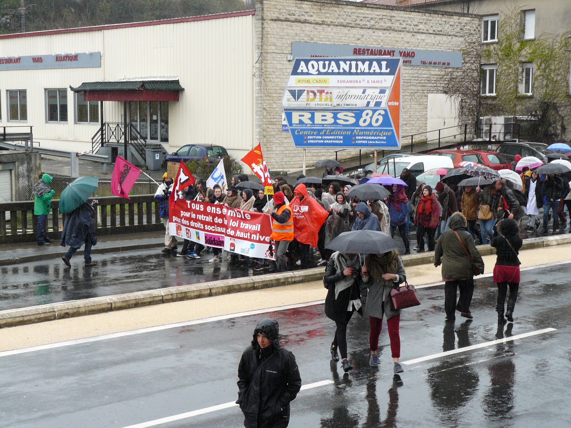 Poitiers, manifestation sous la pluie contre la réforme du code du travail
