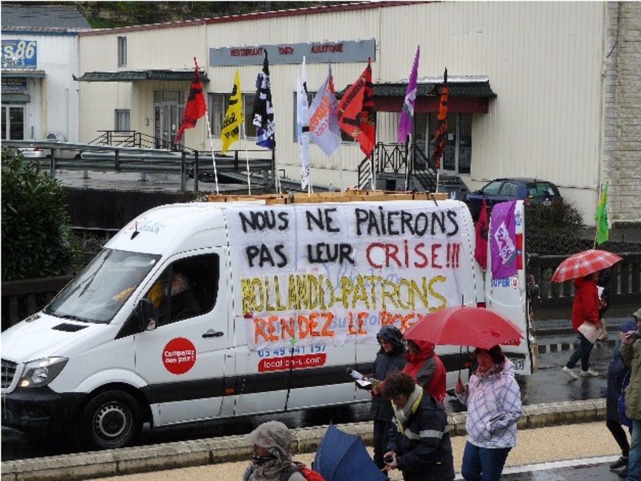 Camion du Syndicat Sud Solidaires boulevard Jeanne d'Arc, à Poitiers, lors de la manifestation contre le projet de loi travail, le 31 mars 2016.