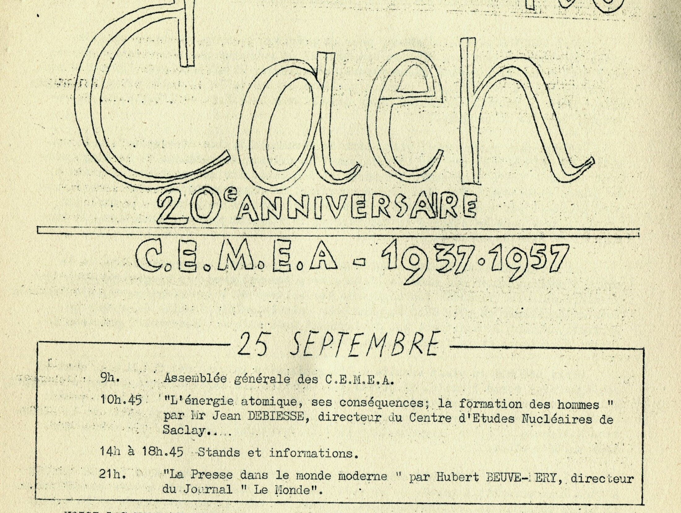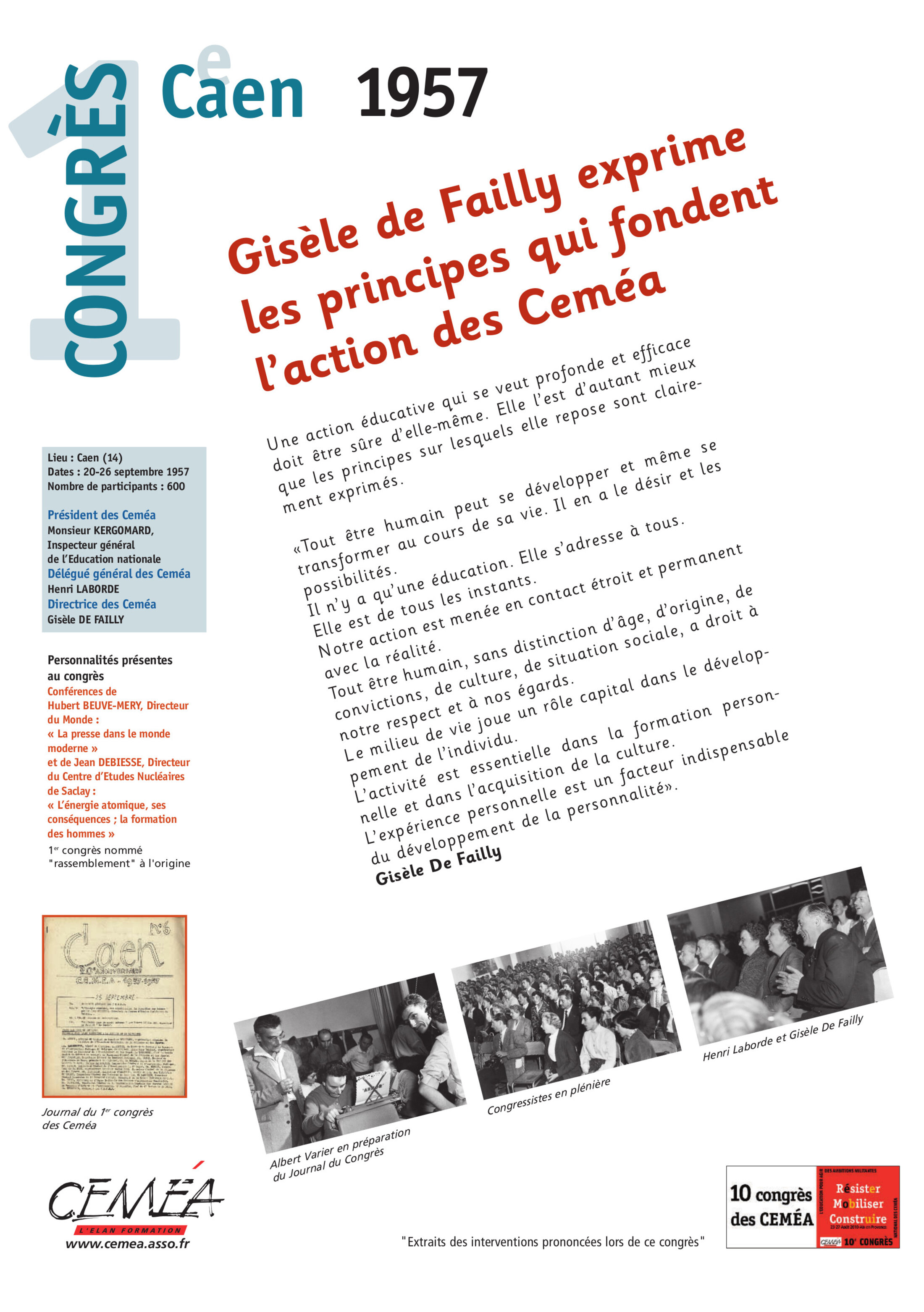 En 1957 a lieu le premier congrès des Ceméa à Caen. Gisèle de Failly y exprime les principes qui fondent l'action des Ceméa.