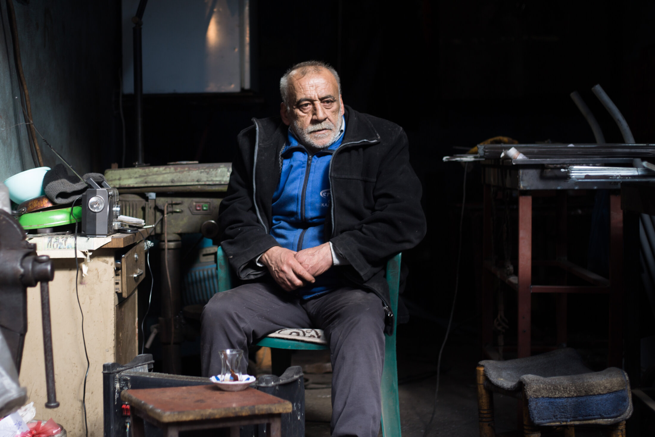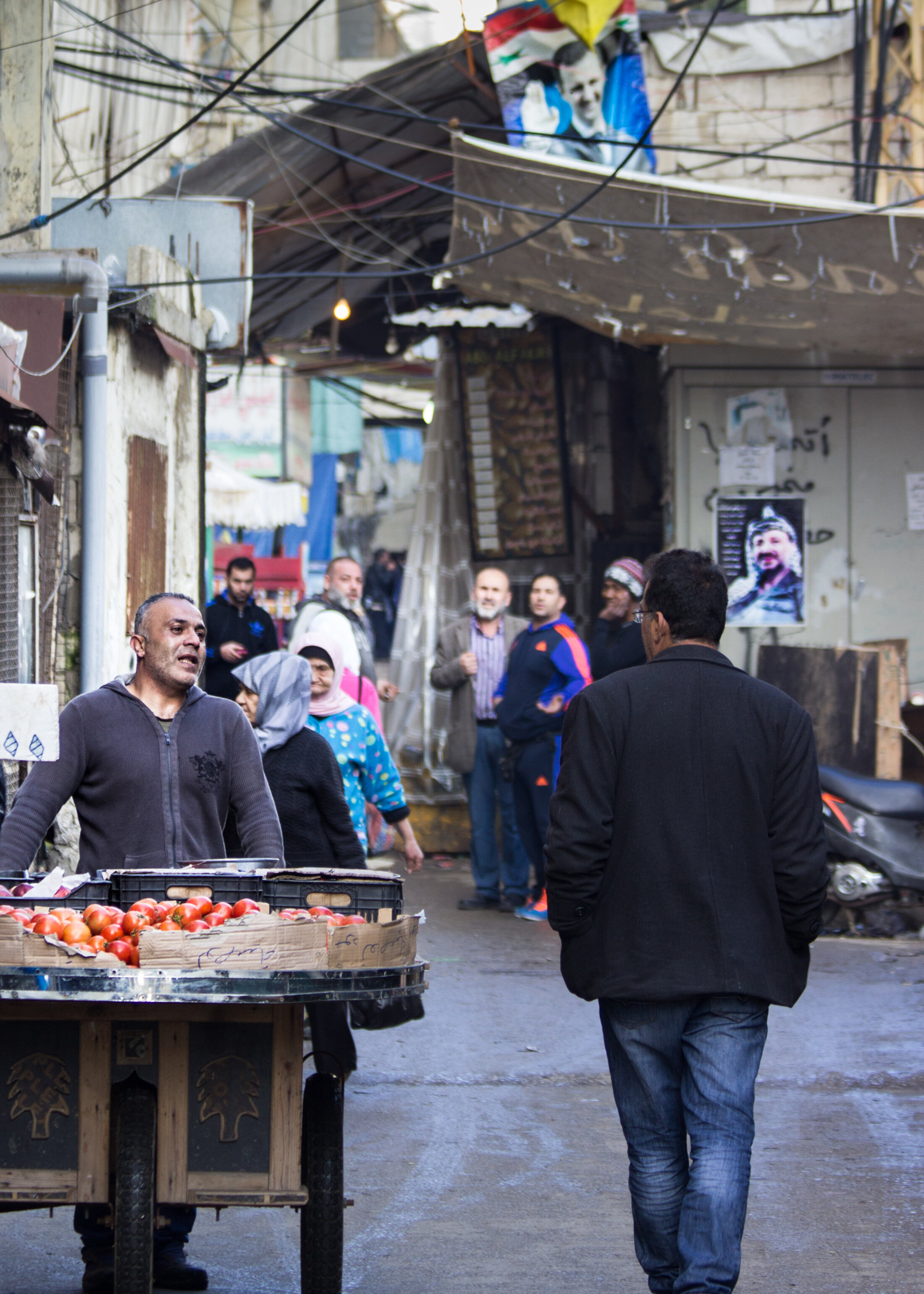 Sur ce cliché, toute la complexité politique des camps libanais, avec en fond le portrait de Yasser Arafat, ainsi que celui de Bachar Al-Assad. La première vague de réfugiés palestiniens arrivée en 1948 a été rejoint par plusieurs autres, la dernière en date étant les nombreux réfugiés syriens ayant fui le conflit qui sévit au Levant. A Sabra et Chatila se croisent des membres du Fatah ainsi que des membres du Hamas. Des syriens ayant fui les atrocités du régime d’Al-Assad fils et des chiites pro-Hezbollah. Se croisent également des palestiniens hantés par le souvenir des corps enchevêtrés du massacre de 1982, et des partisans du mouvement Amal. Mouvement qui, non seulement s’inscrivit dans le plan d’éradication de l’OLP au Liban, mais également qui à partir de 1985 assiégea cruellement le camp et ce jusqu’à 1988. Pour la communauté palestinienne qui y vit, la tâche est très compliquée. 75 professions leur sont interdites dans le pays, ce qui les place dans une situation de double apartheid, géographique, et social. Pour ces palestiniens, exercer un métier interdit, c’est l’assurance d’être expulsé du Liban.