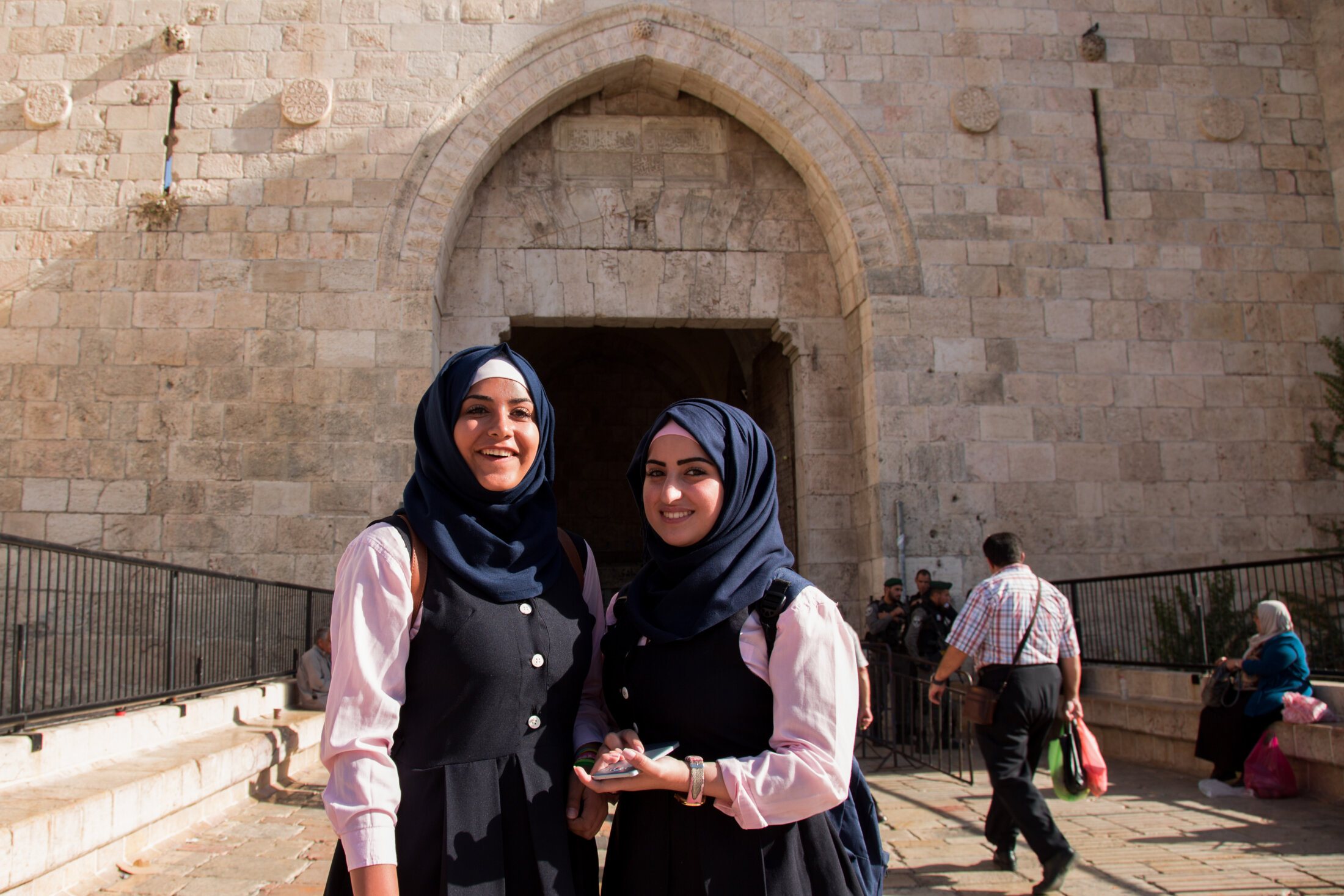 Jeunes étudiantes palestiniennes, devant la porte de Damas.
