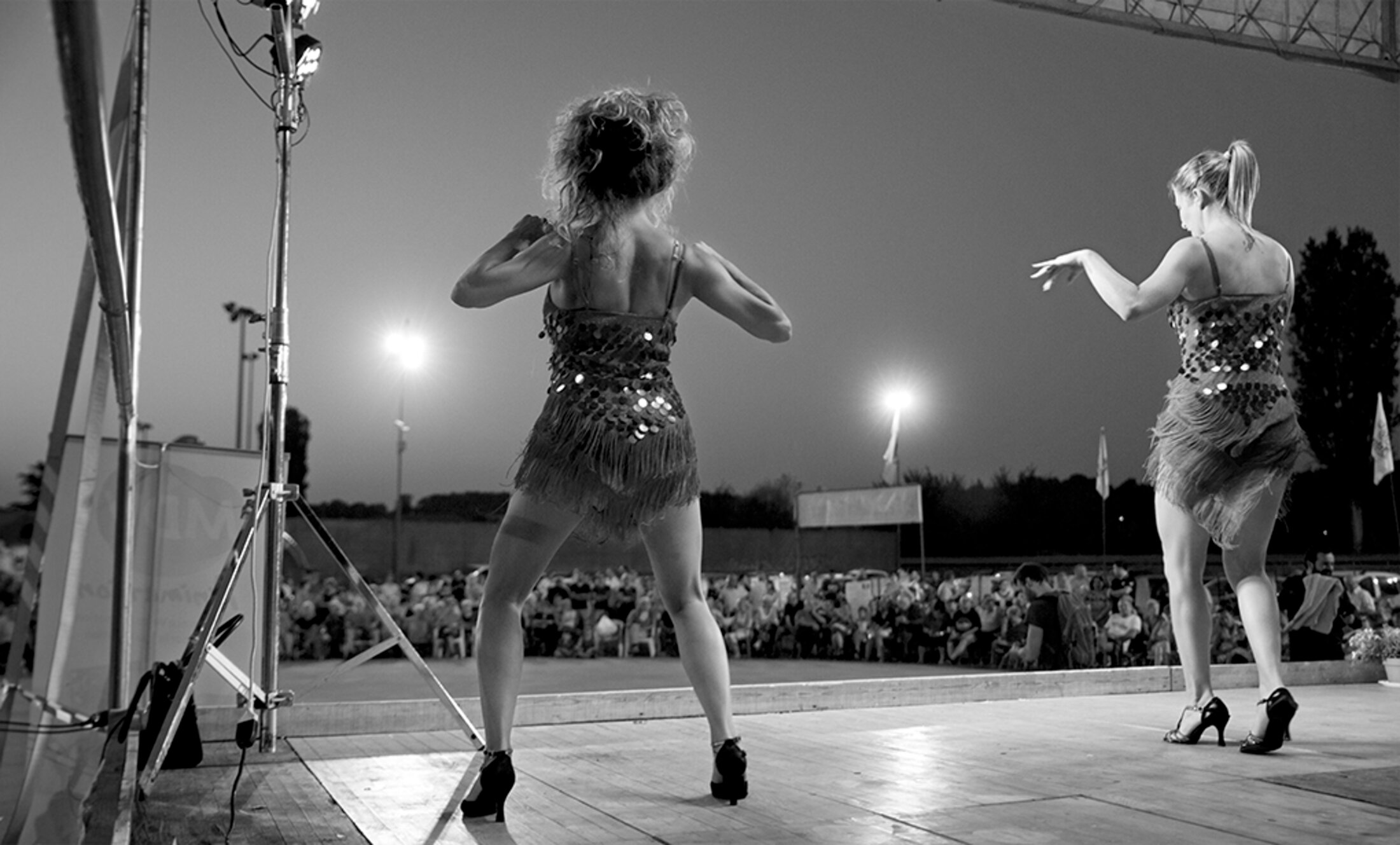 Il y a aussi une grande piste de danse et une scène sur laquelle se produisent trois danseuses blondes à moitié nues (seule présence féminine sur scène de toute la soirée), sur une musique diffusée par des haut-parleurs. Celle-ci n’est pas vraiment locale : salsa, bachata, merengue, reggaeton qu’une foule plus ou moins âgée danse en groupe, l’air ennuyé. L’atmosphère et le public rappellent un peu les fêtes de l’Unità (Quotidien fondé par Antonio Gramsci (1891-1937) en 1924, organe officielle du Parti communiste italien puis du Parti démocrate, fermé en 2017) d’autrefois, les livres et la culture politique en moins.