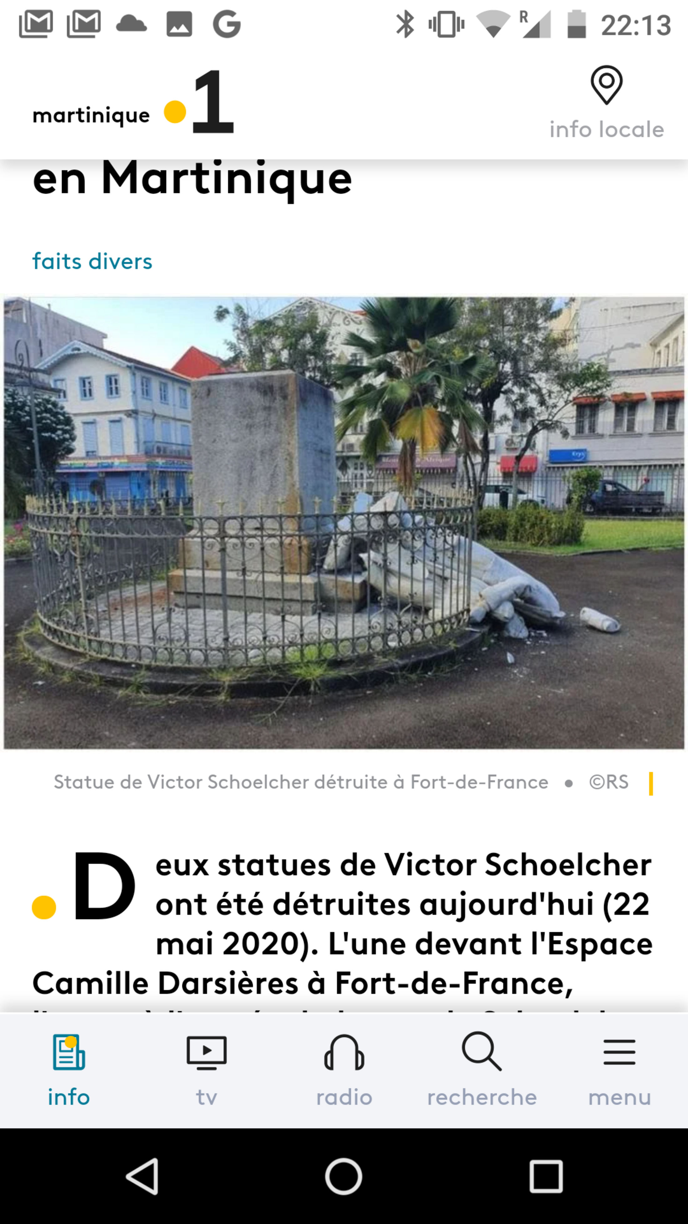 Ce 22 mai; 2 statues de Victor Schoelcher à terre !