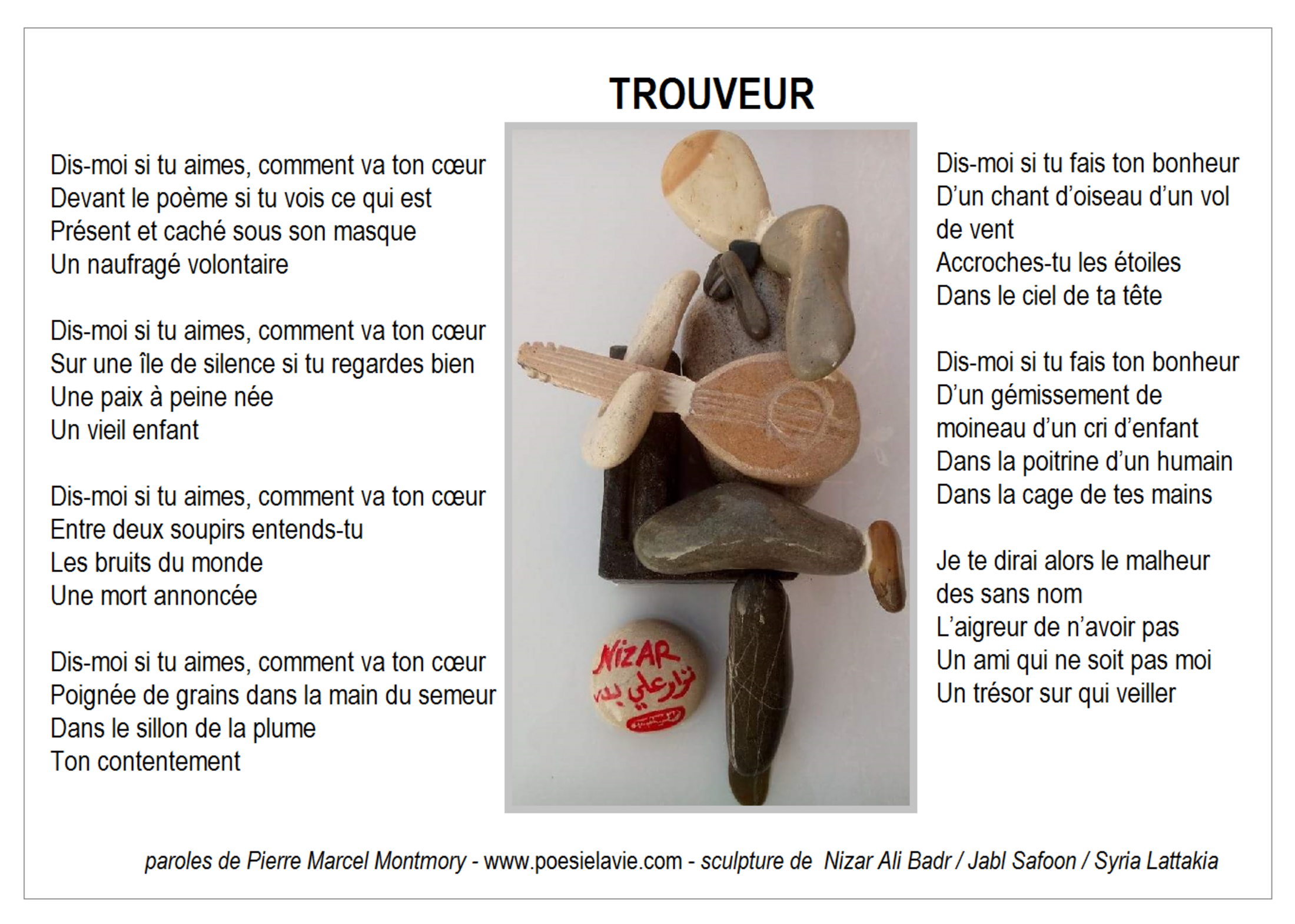 Au travail, les artistes ! La rue meurt de vos silences ! Que les pouvoirs gardent les ruines et que poussent les ronces dévorantes ! Au travail ! On part à pieds avec le vent dans les mains. Pétris de certitude que l'éternité est là, et que sa rumeur sous nos pas s'enfonce dans le sable. Nulle trace que ce verbe qui ne meurt jamais que si l'on lui laisse le pouvoir de se taire.