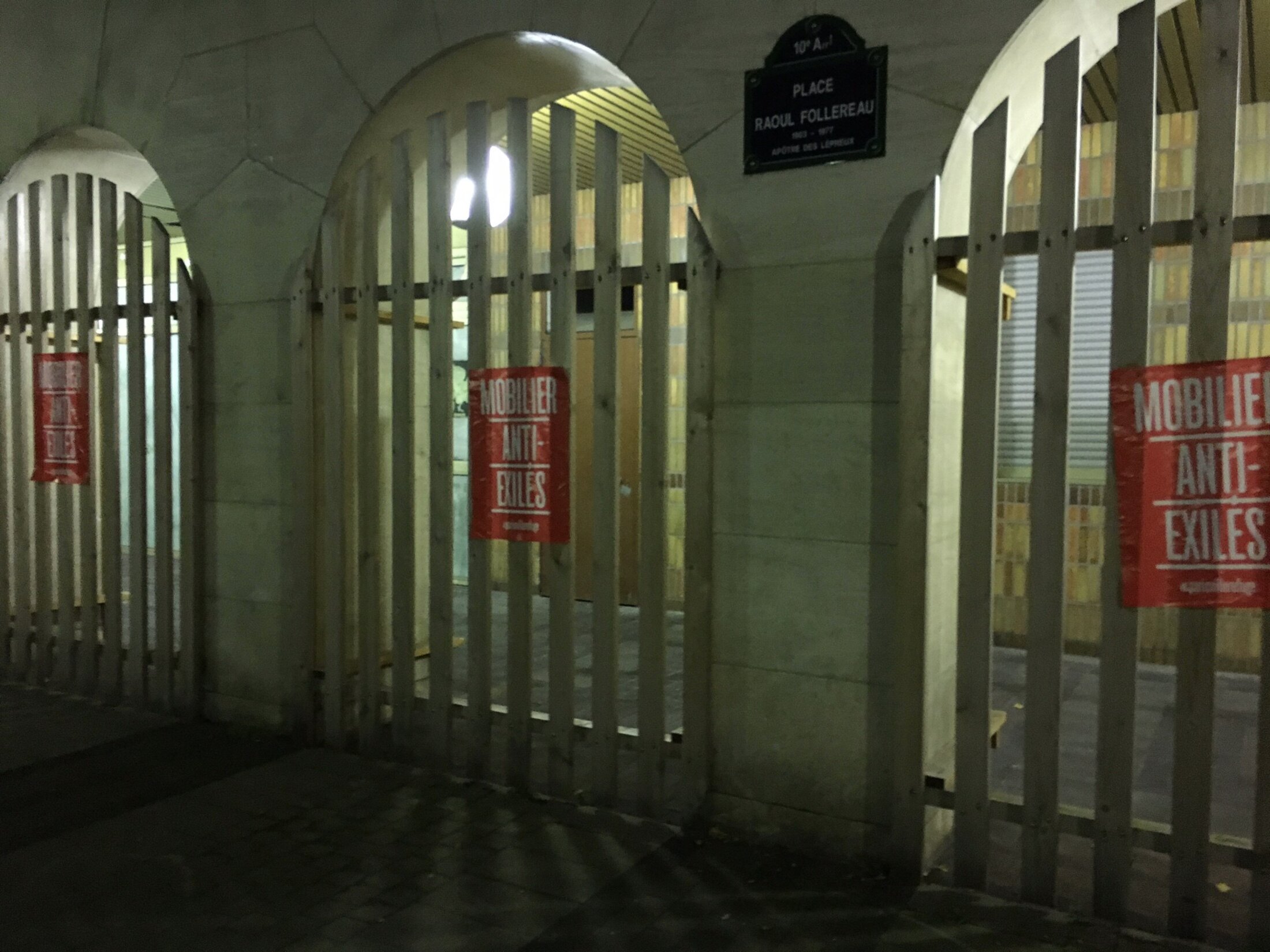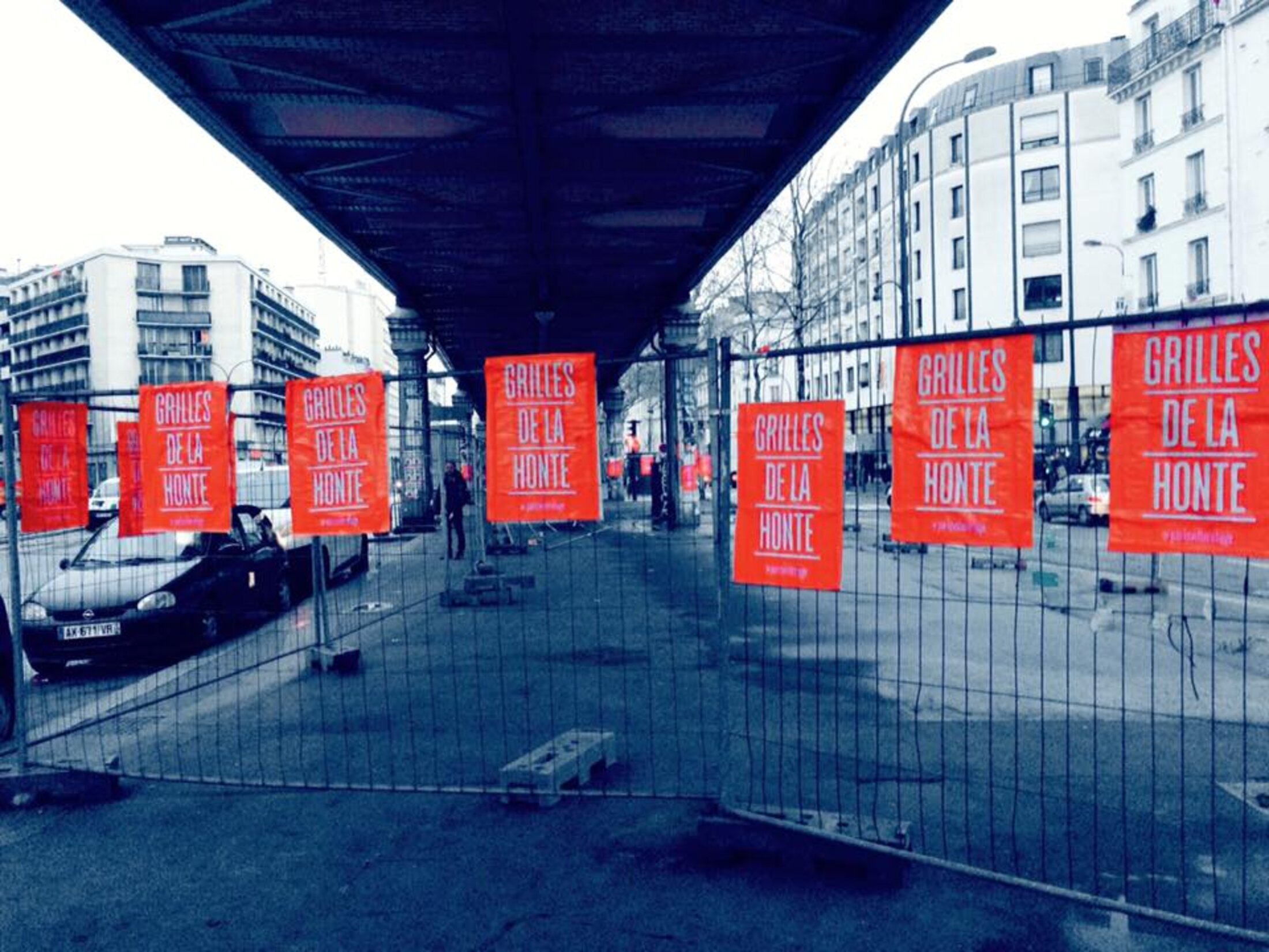 Rendre visible l'invisibilisation des réfugié-e-s dans les rues du Nord-Est de Paris : "grilles de la honte" sous le métro aérien, "mobiliers anti-exilé-e-s" sur le terre-plein de l'Avenue de Flandres