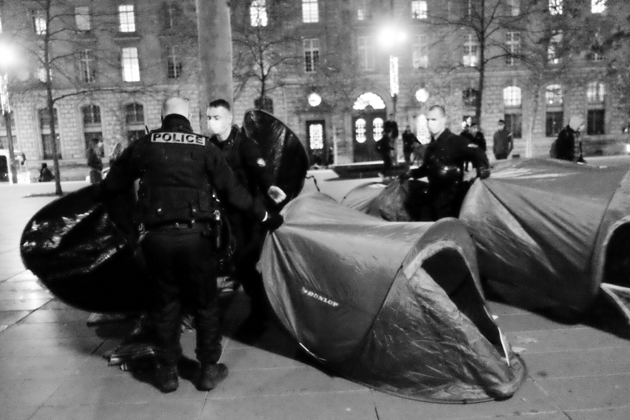 Finalement les exiles se redirigeront vers le nord de la capitale. Le préfet de police l'a ordonné "hors de Paris !" Un retour à la case départ qu'en apparence : ce soir, ceux que vous vous vouliez invisibiliser et laisser crever en catimini sous le périph, se sont repositionnés au centre de la ville. Accoudés aux balcons haussmanniens de vos bonnes consciences, vous ne pourrez plus les ignorer !