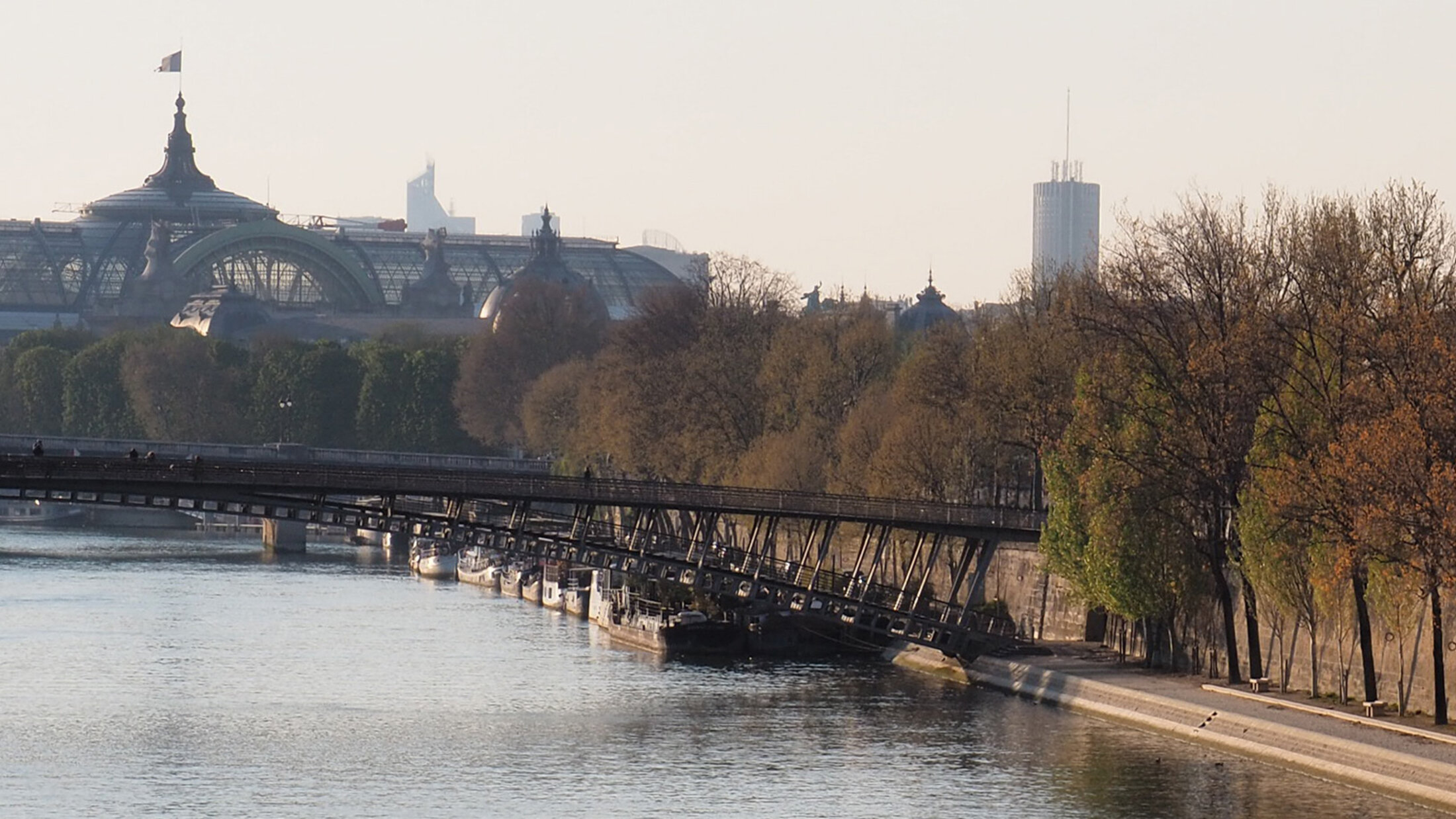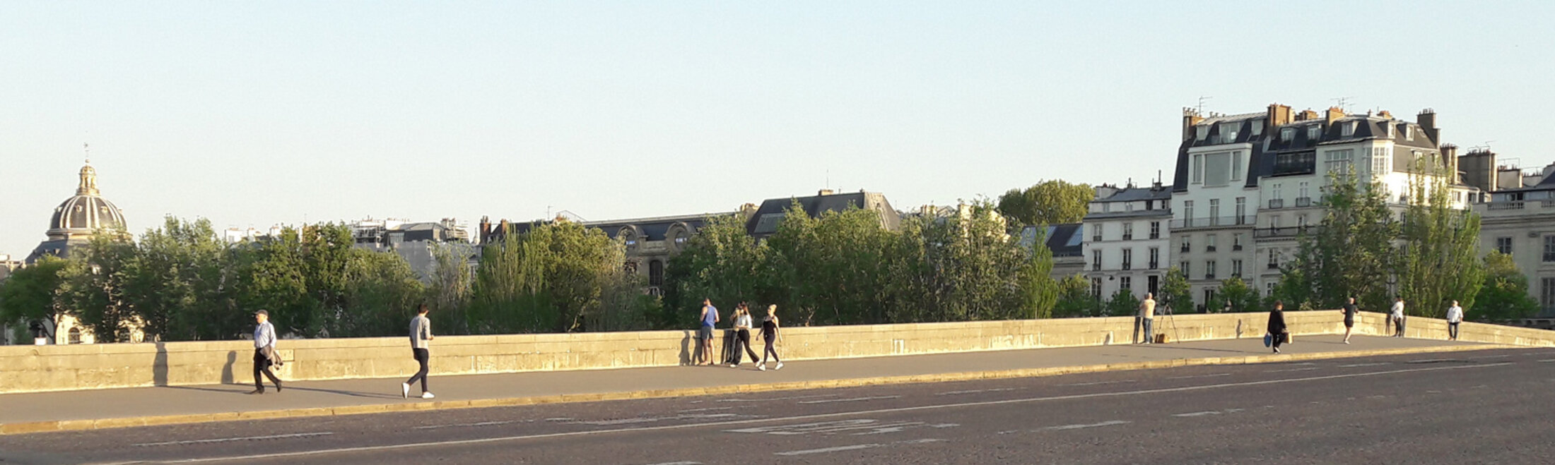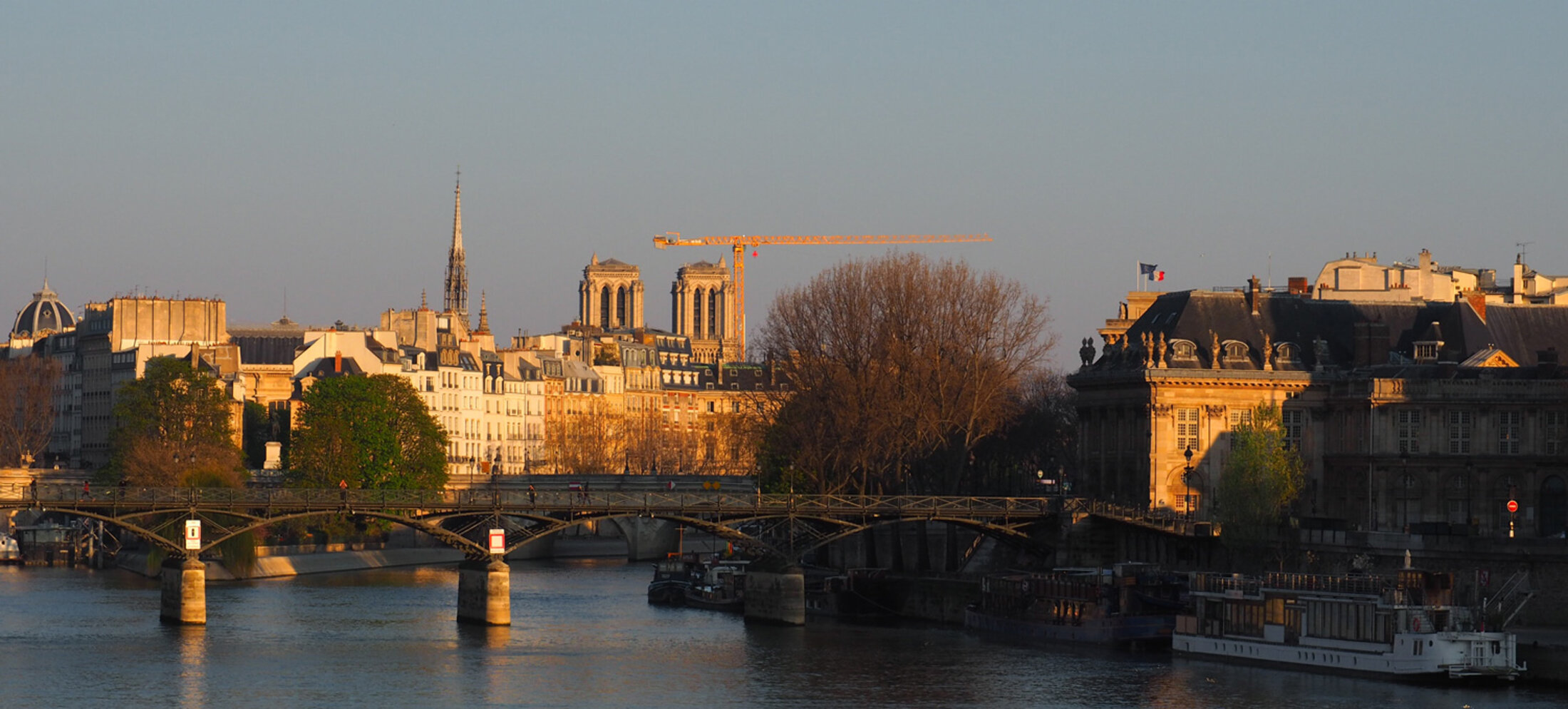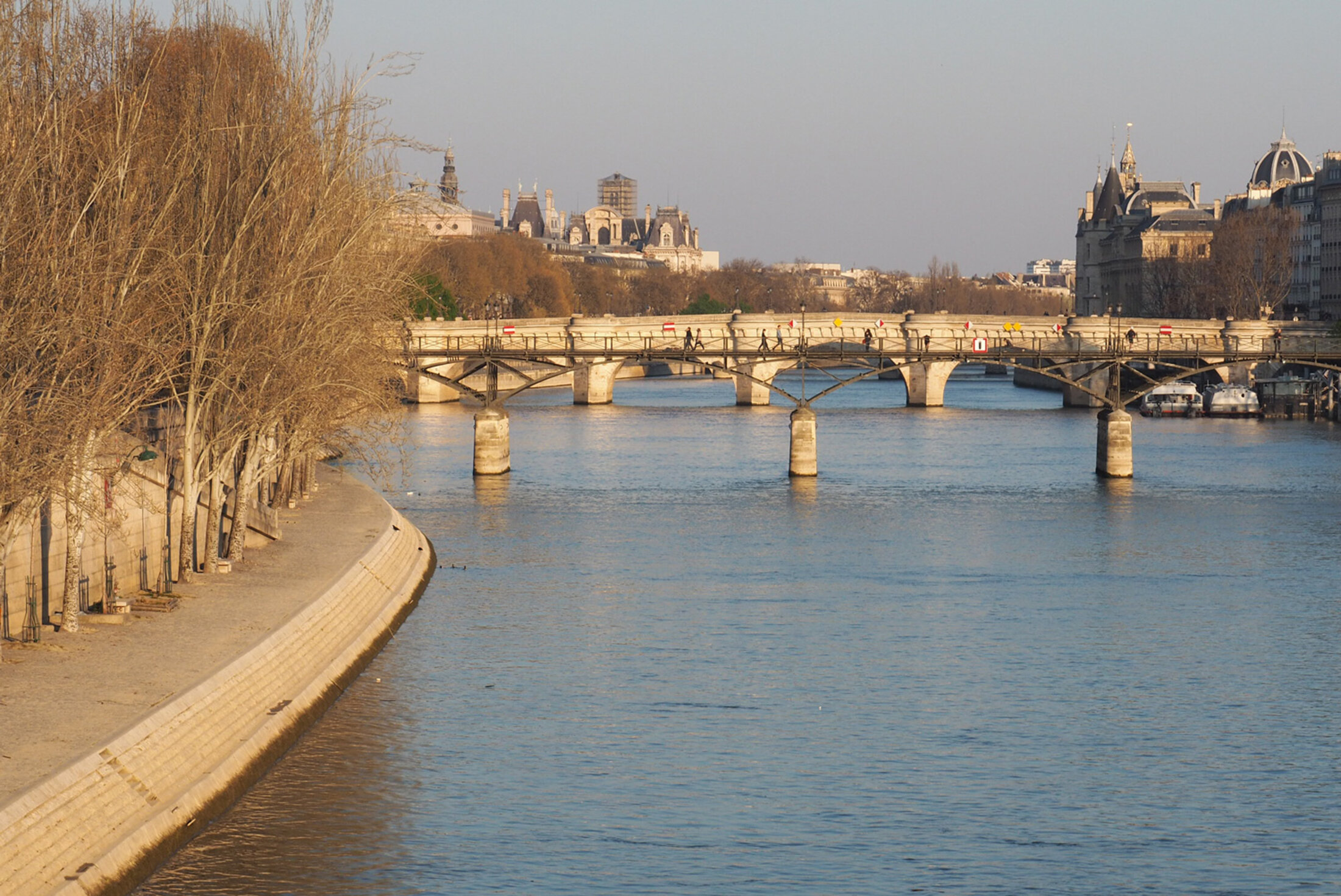 Avril 2020 à Paris, vers 20h, les quais, le Pont des arts sont pratiquement vides.