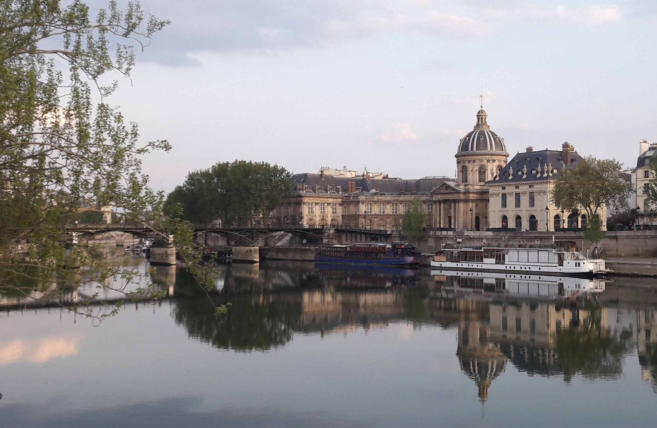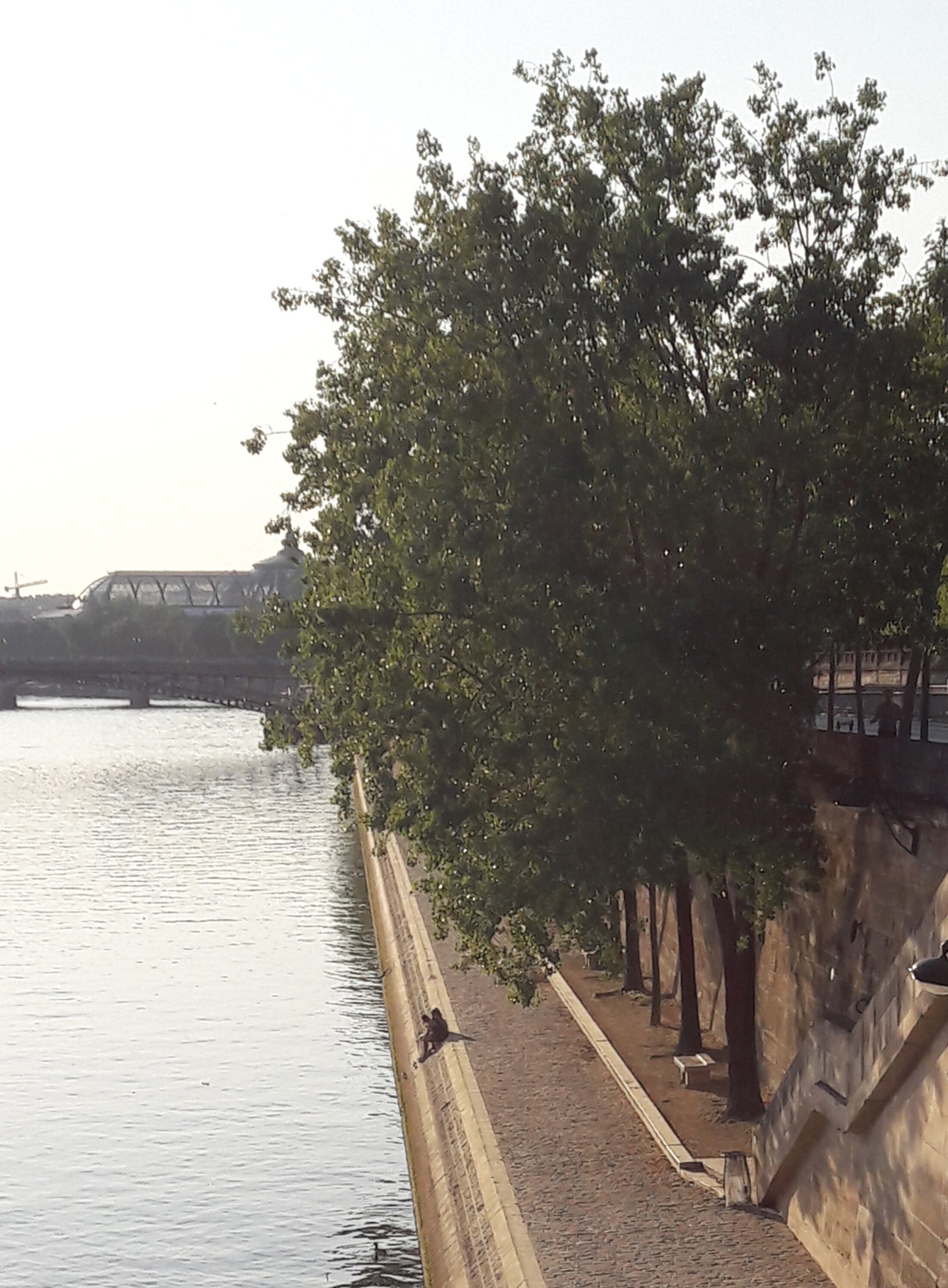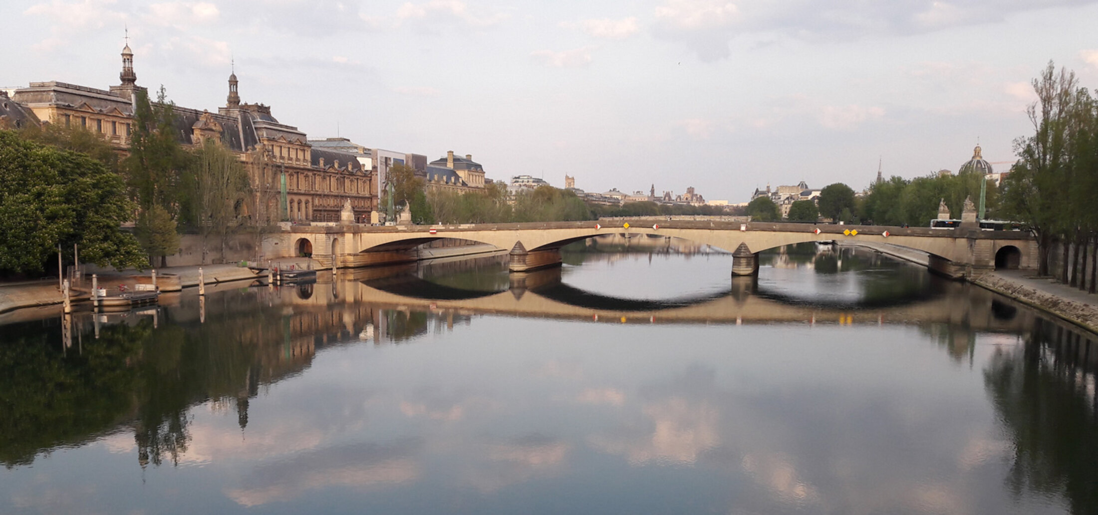 La Seine est vide de péniches ce soir d'avril 2020. Je ne l'ai jamais vue si calme, si lisse.