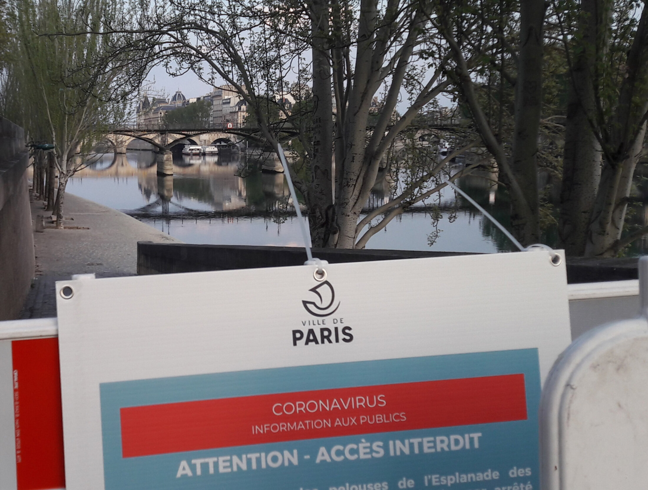 Quais de Seine interdits aux voitures, mais aussi aux promeneurs, à cause d'un si petit virus, qui nous pousse à l'humilité.