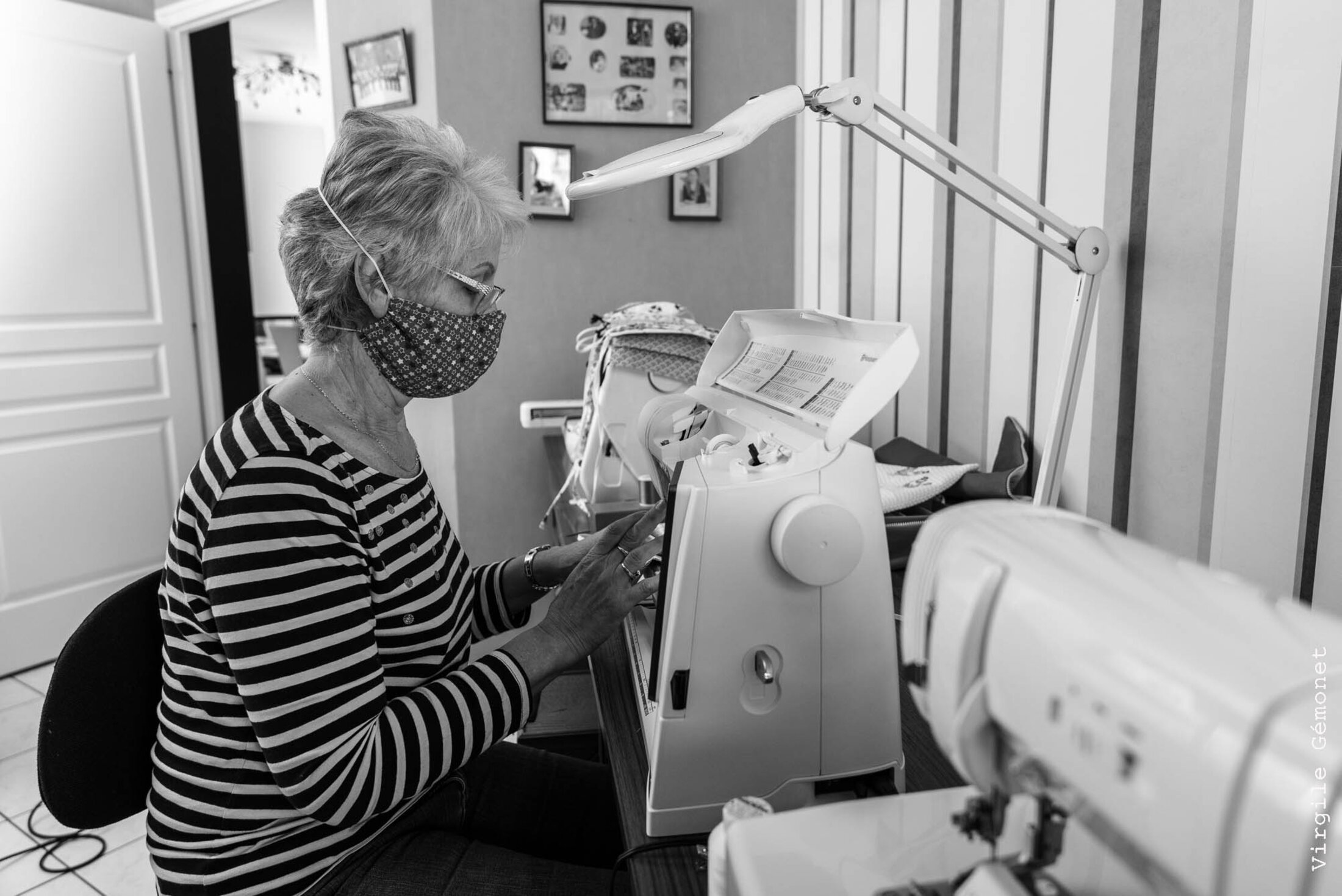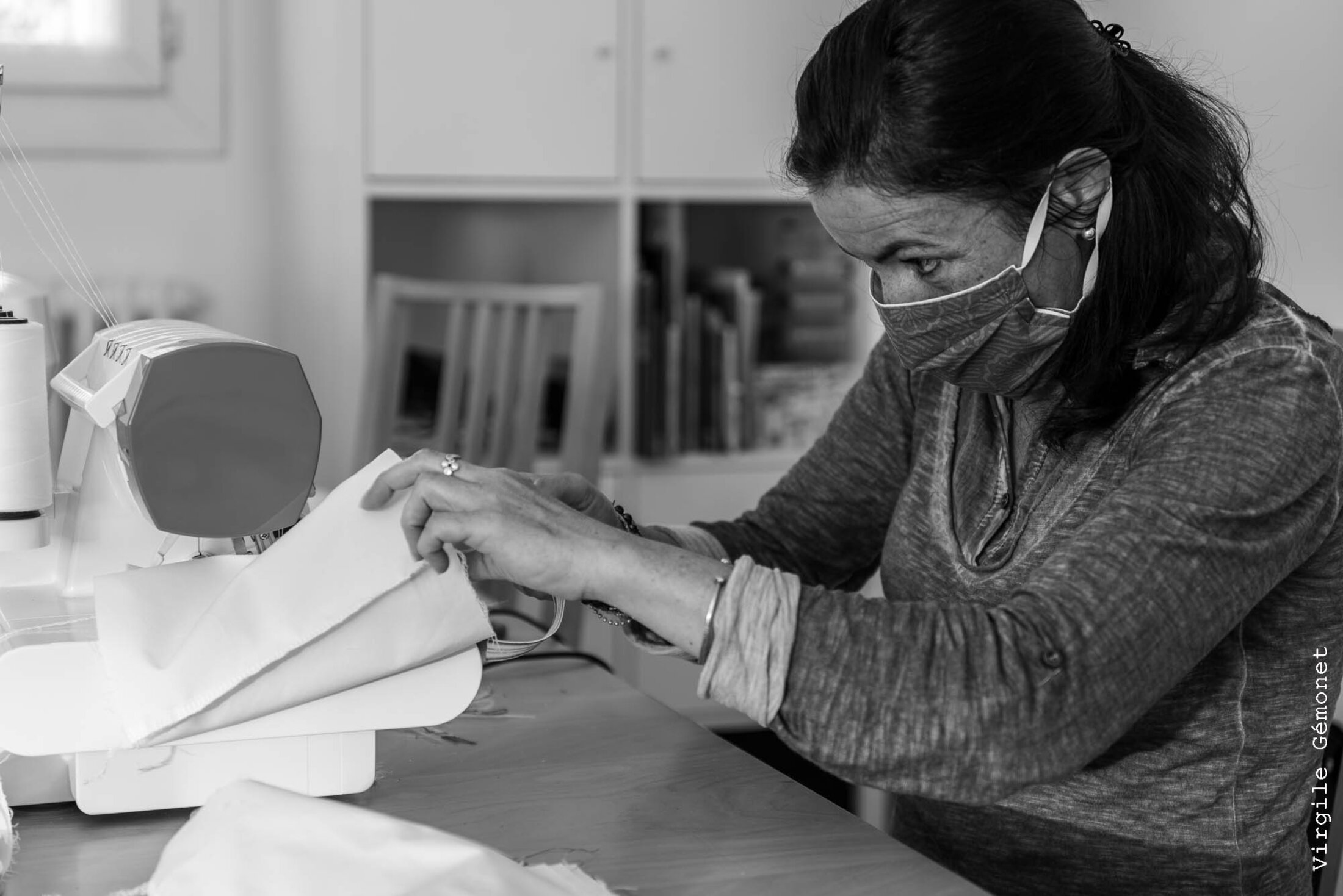 "Au début, j'étais en colère, je ne trouvais pas normal, que l'ont en soi arrives là; devoir faire des masques qui auraient dû être mis à disposition de toutes les personnes dont le travail devait continuer coûte que coûte. Puis, je me suis consolée en me disant que ces masques fabriqués par nos soins étaient indispensables pour les personnes à qui ils étaient destinés..."
