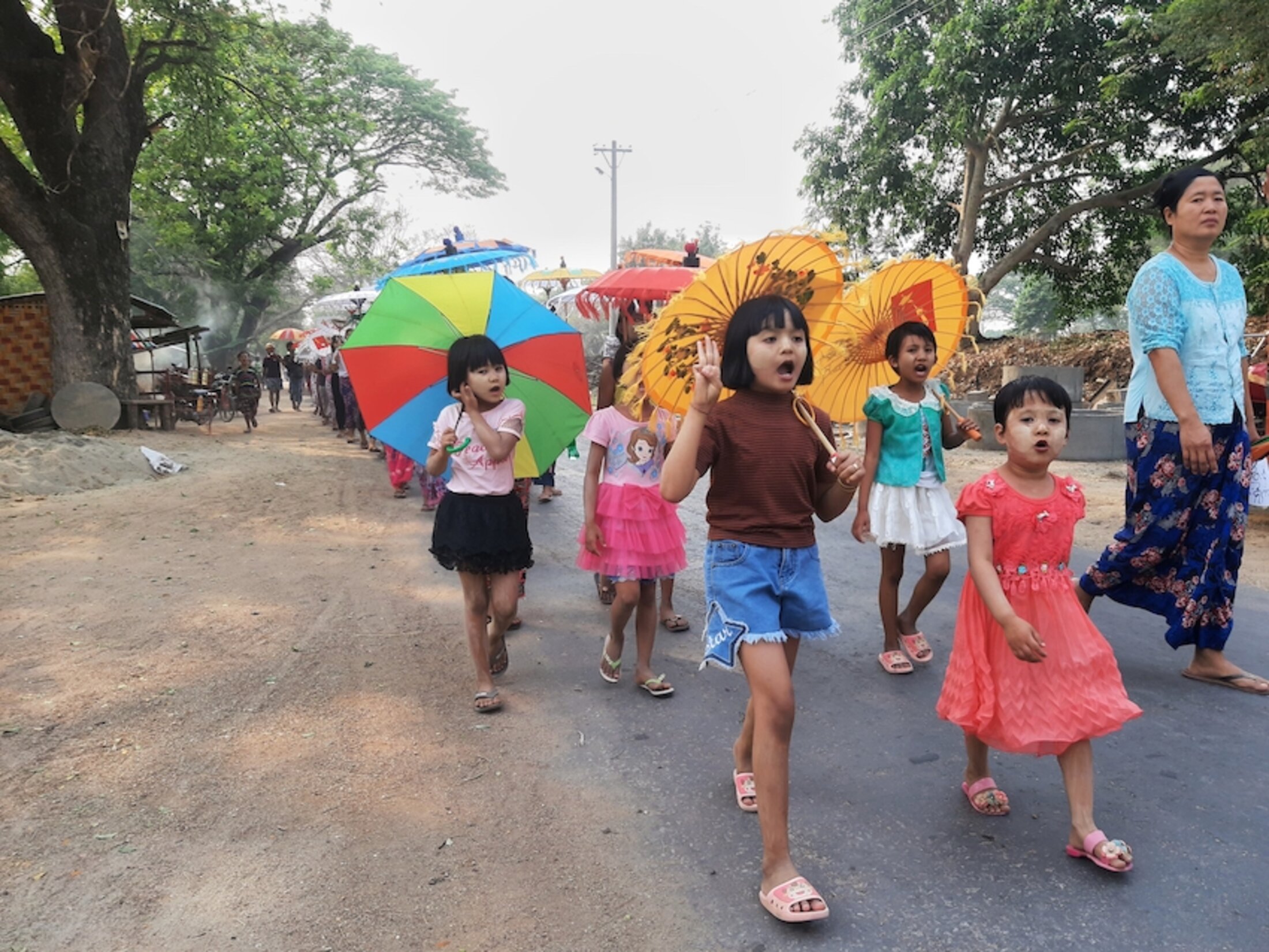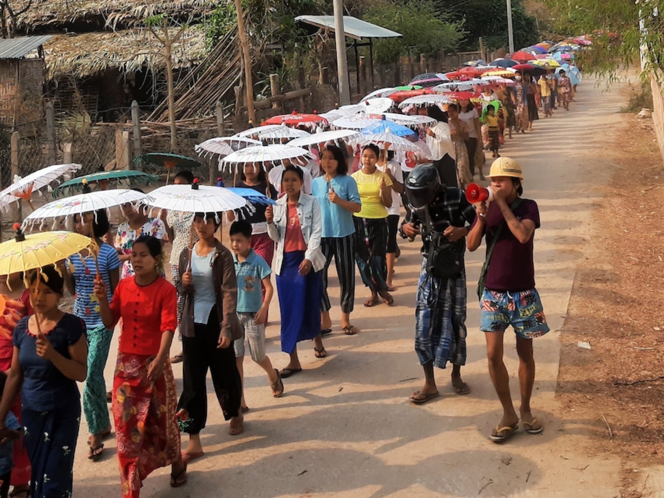 01/04 - Umbrella strike in Monywa, Sagaing region, on another road.