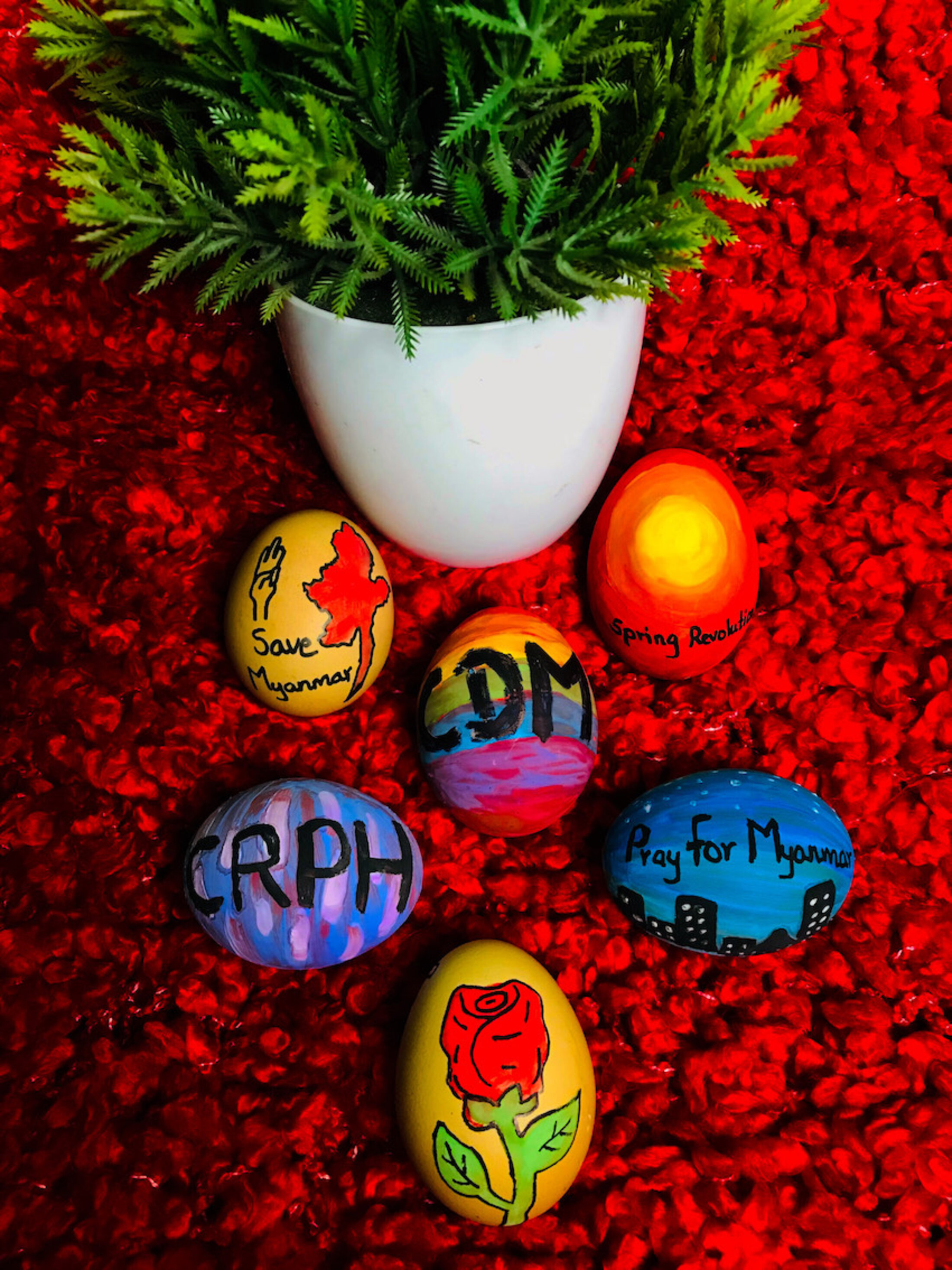 04/04 - Yangon, Thuwanna - Easter Egg Strike to celebrate the creativity of the CDM despite weeks of violence in the main city.