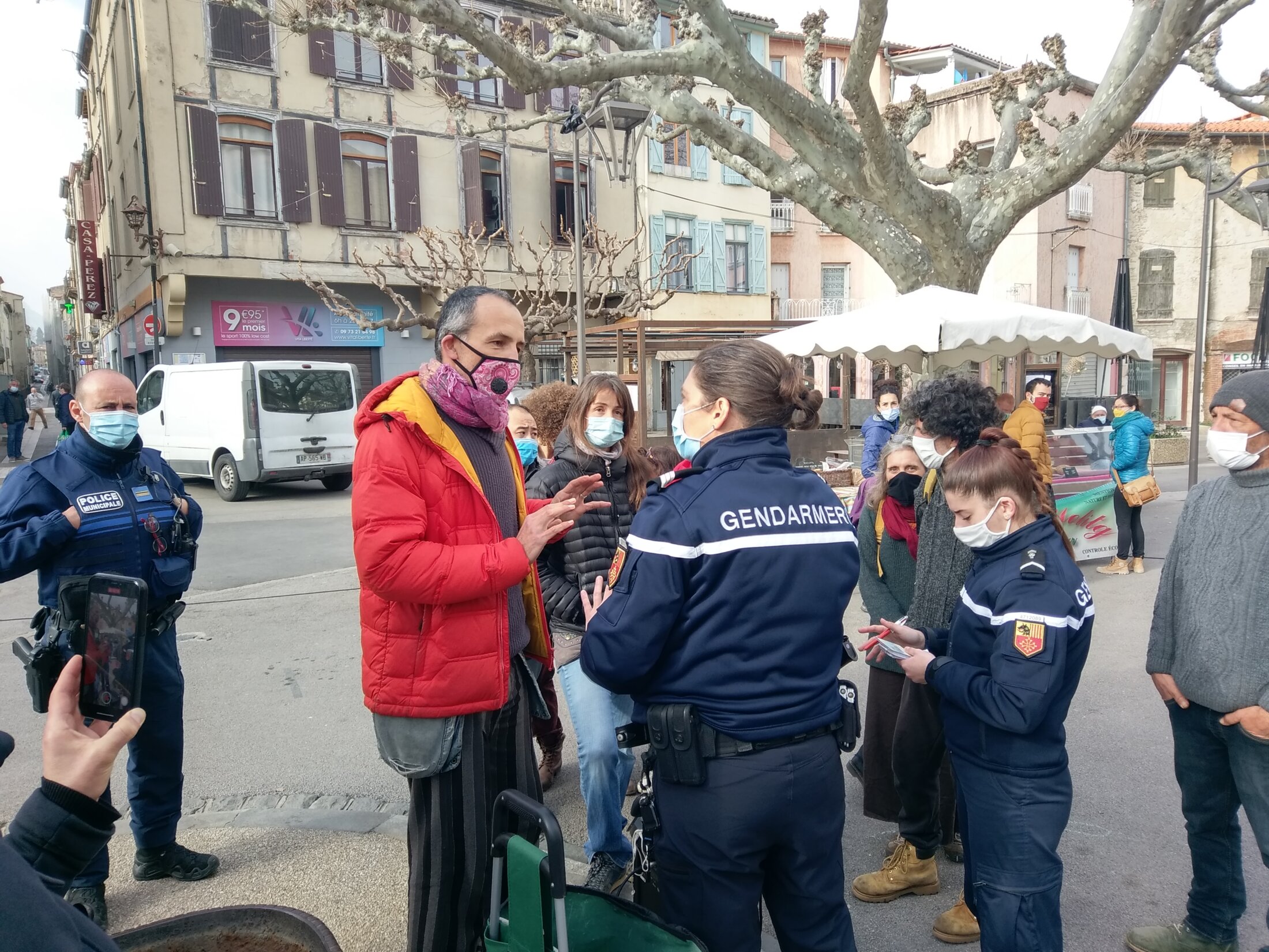 Samedi 20 février 2021, Prades, ville de M le Premier ministre et ex Ministre du Déconfinement raté. Hier vendredi, apres le concert, les gendarmes interdisaient de parler allemand dans la rue, aujourd'hui les gendarmes interdisent de parler tout court!