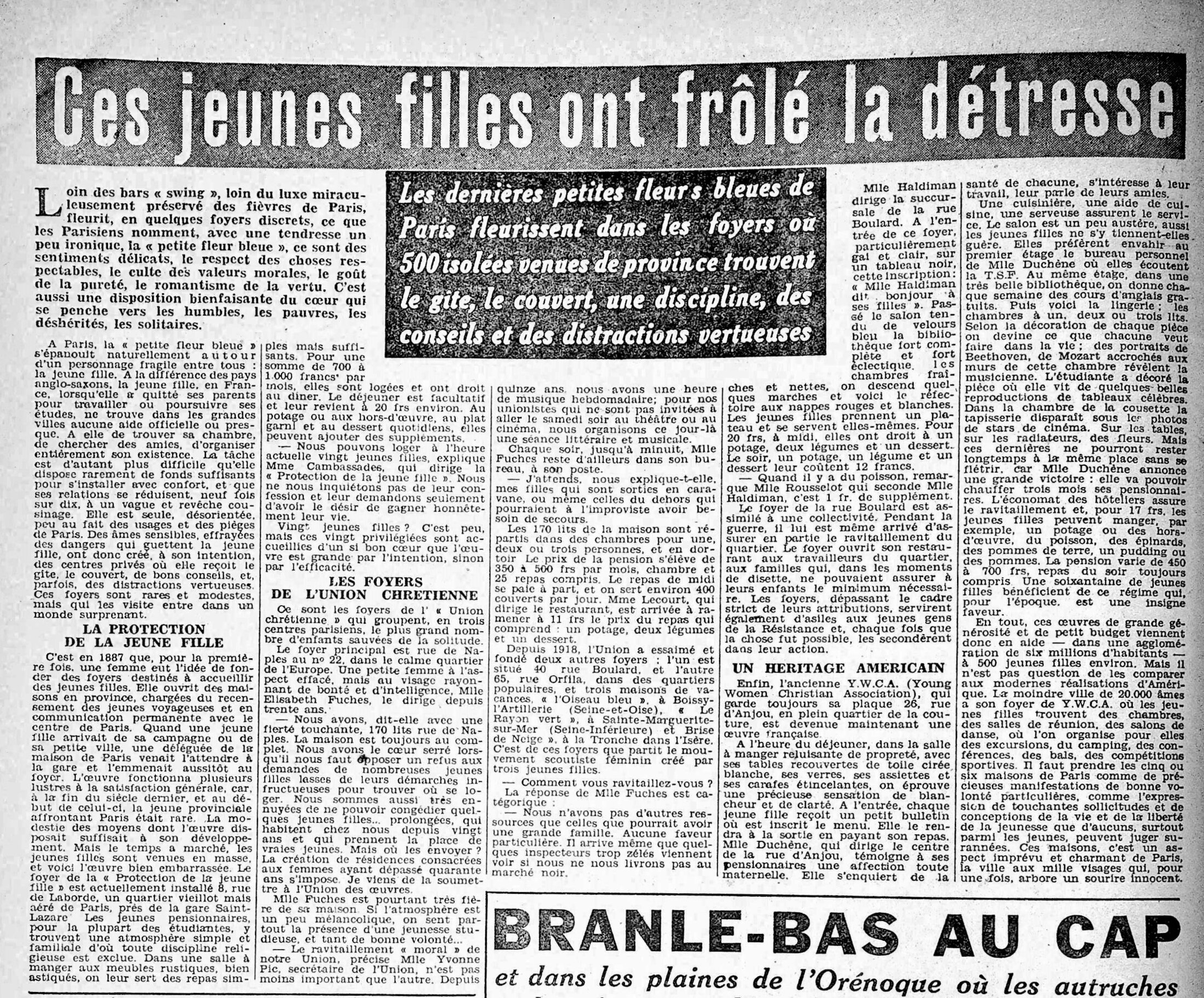 "Jeunes filles en détresse" (INTER du 9 janvier 1946)