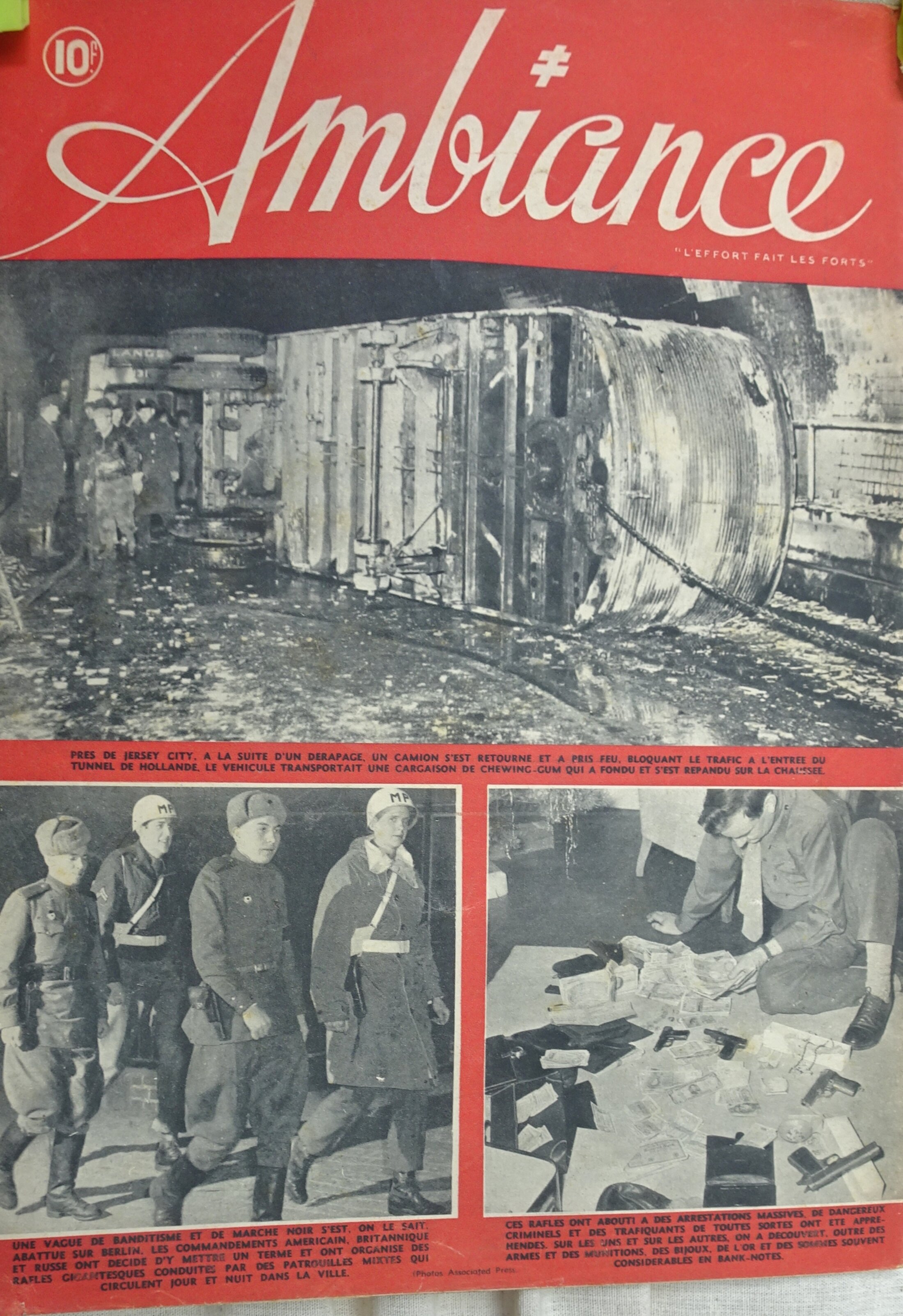 en zone occupée : patrouille de la Military Police/ ce qu’elle découvre : armes et munitions ; bijoux, or, billets de banque …